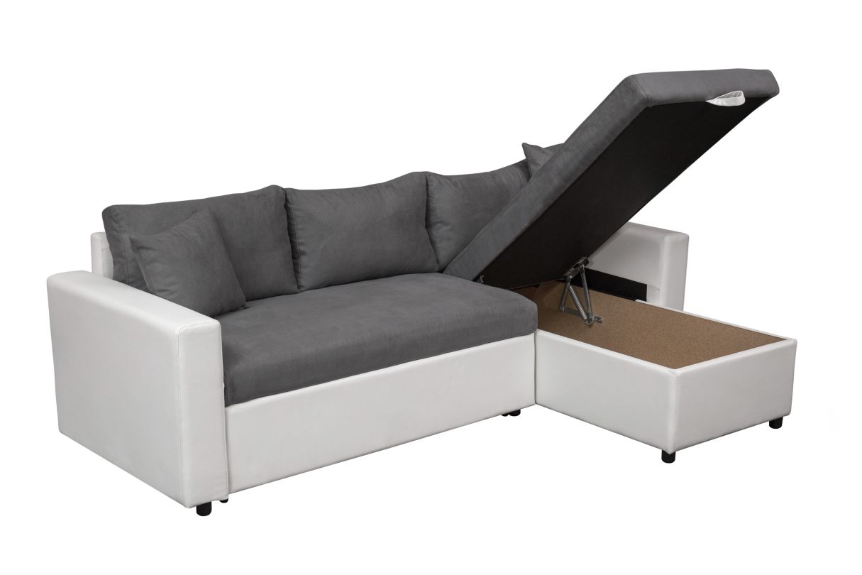 | Libellé | Canapé d'angle 4 places convertible et Réversible MARIA en simili et microfibre - Blanc/Gris |