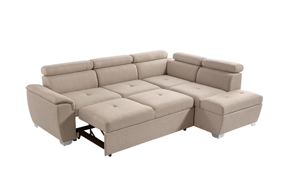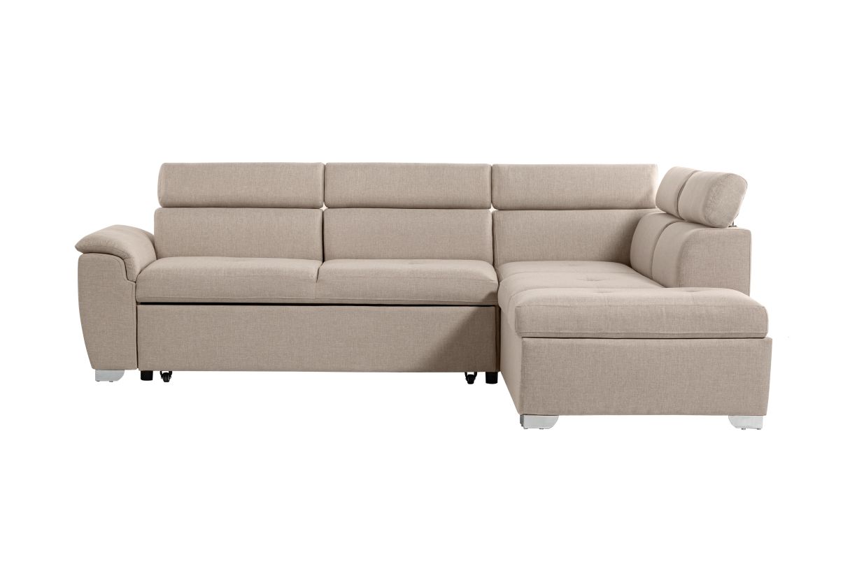 Canapé d'angle convertible PAOLA 4 places avec coffre en tissu - Beige - Angle Droit