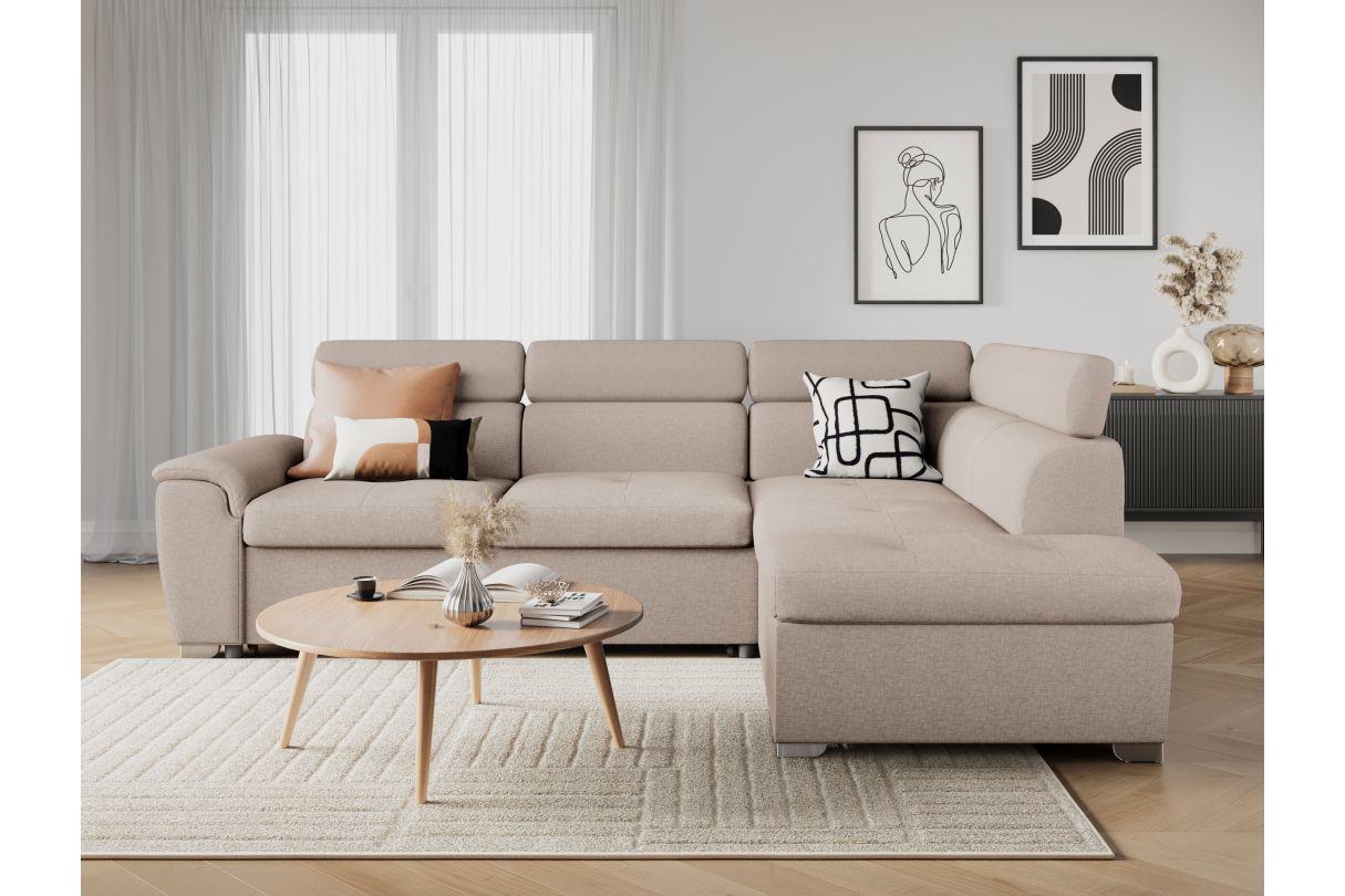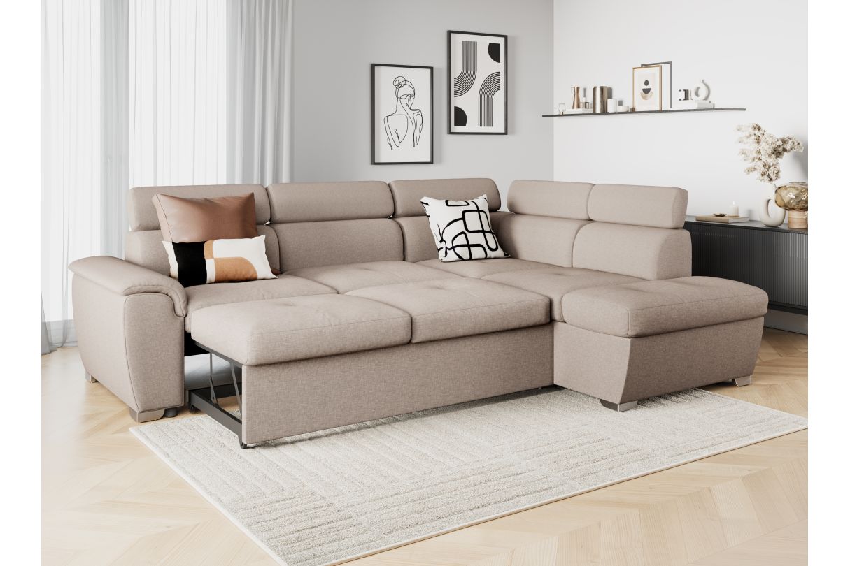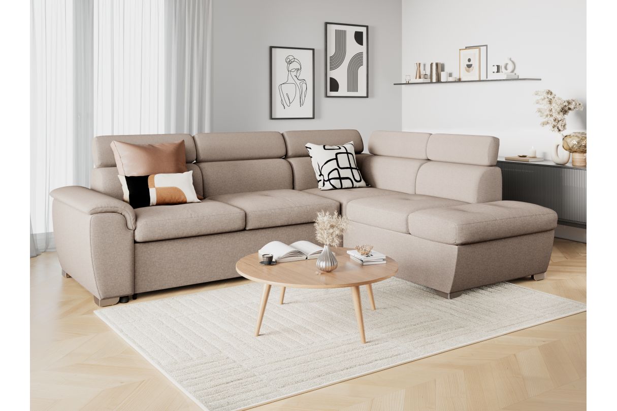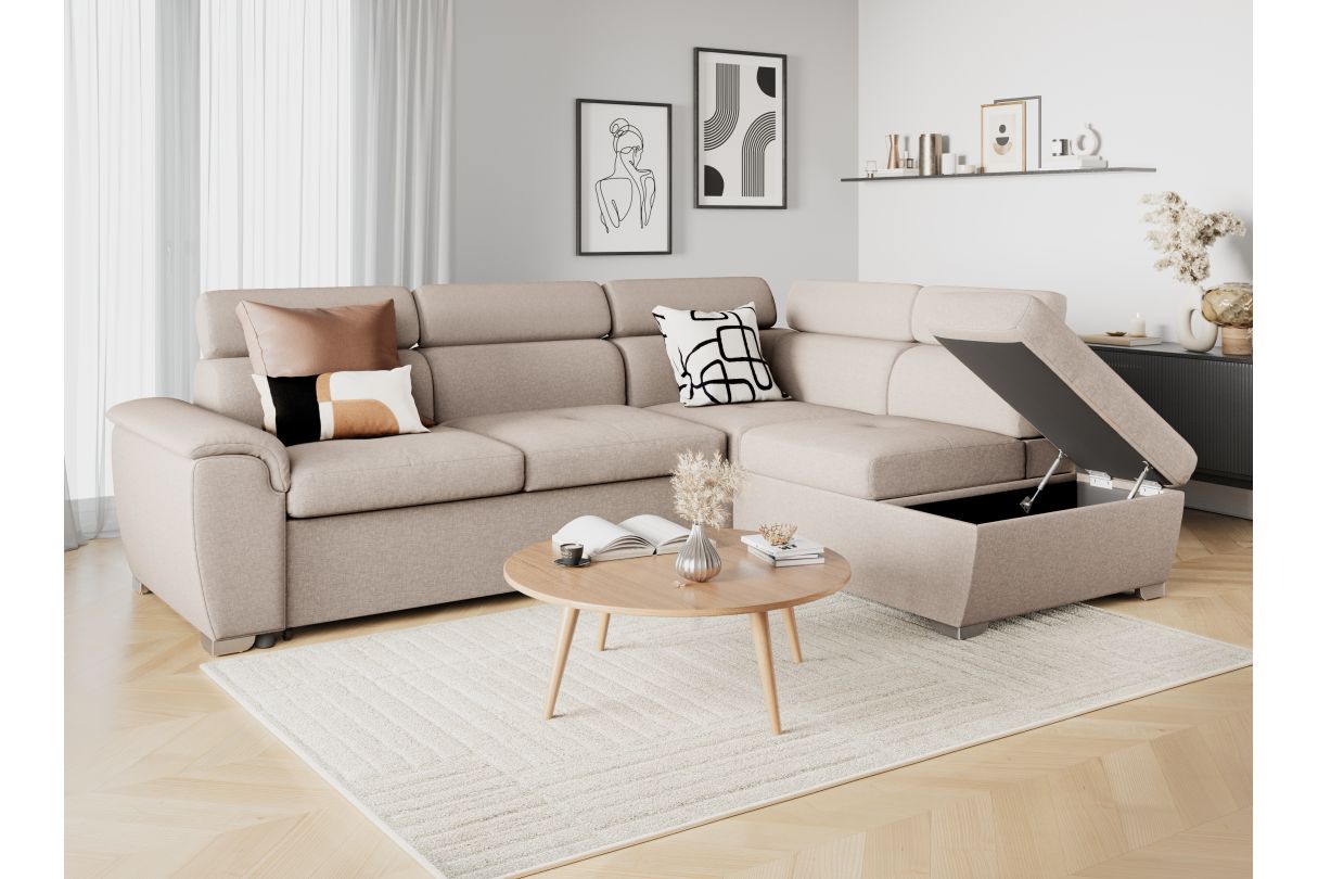 | Libellé | Canapé d'angle convertible PAOLA 4 places avec coffre en tissu - Beige - Angle Droit |