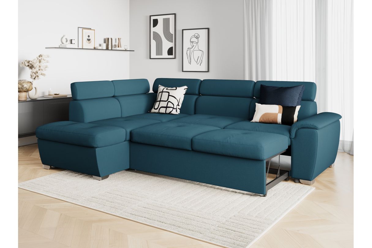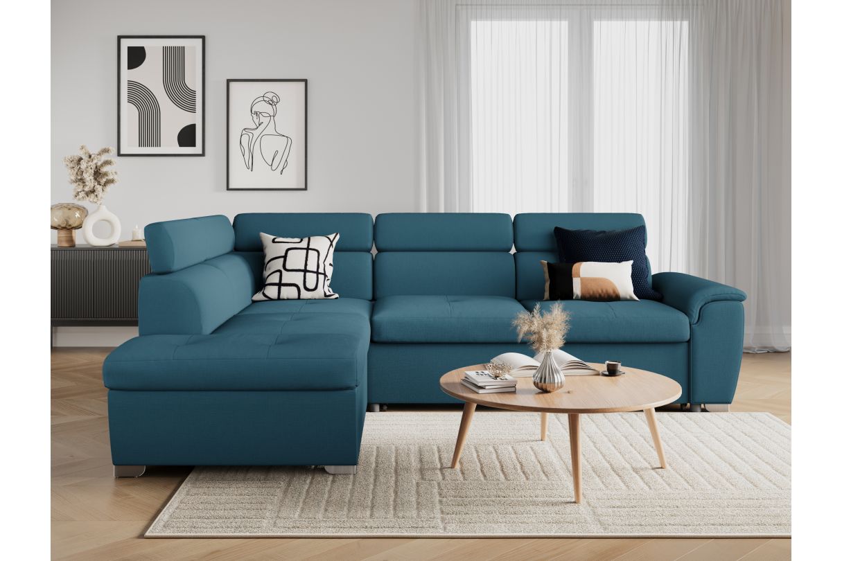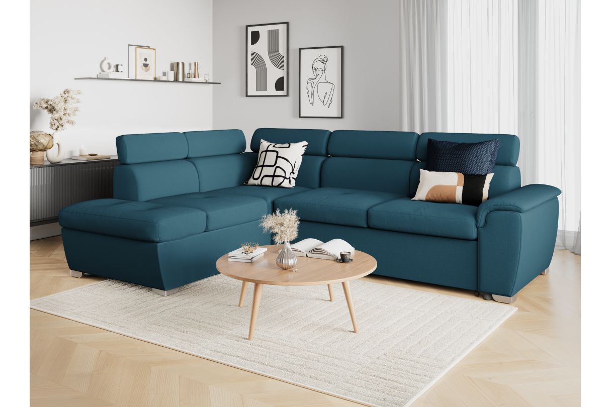 | Libellé | Canapé d'angle convertible PAOLA 4 places avec coffre en tissu - Bleu - Angle Gauche |