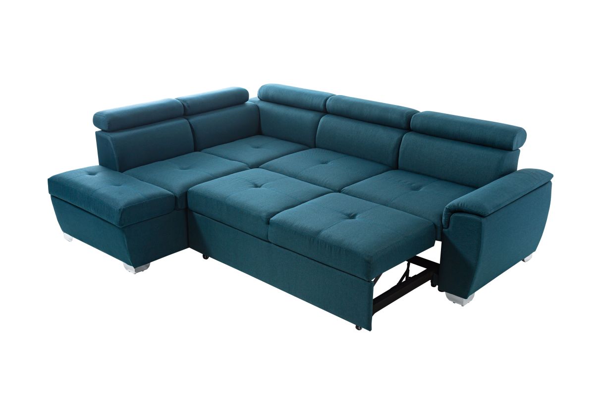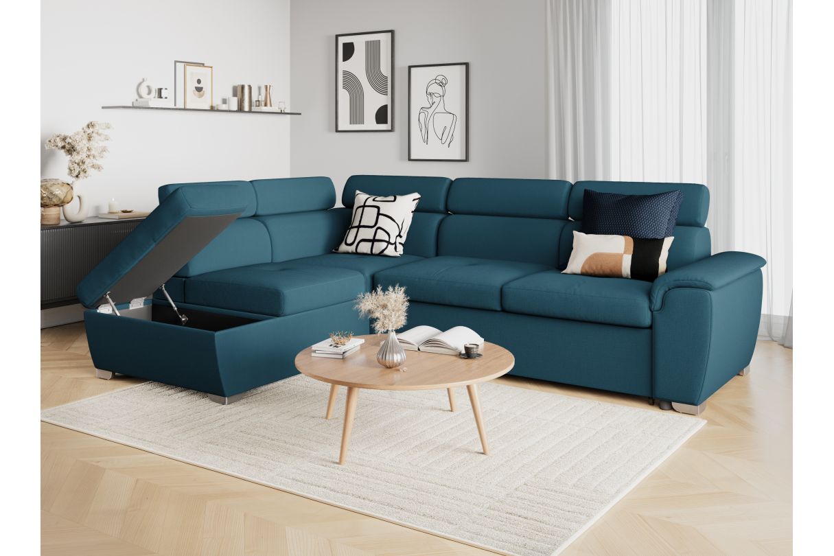 Canapé d'angle convertible PAOLA 4 places avec coffre en tissu - Bleu - Angle Gauche