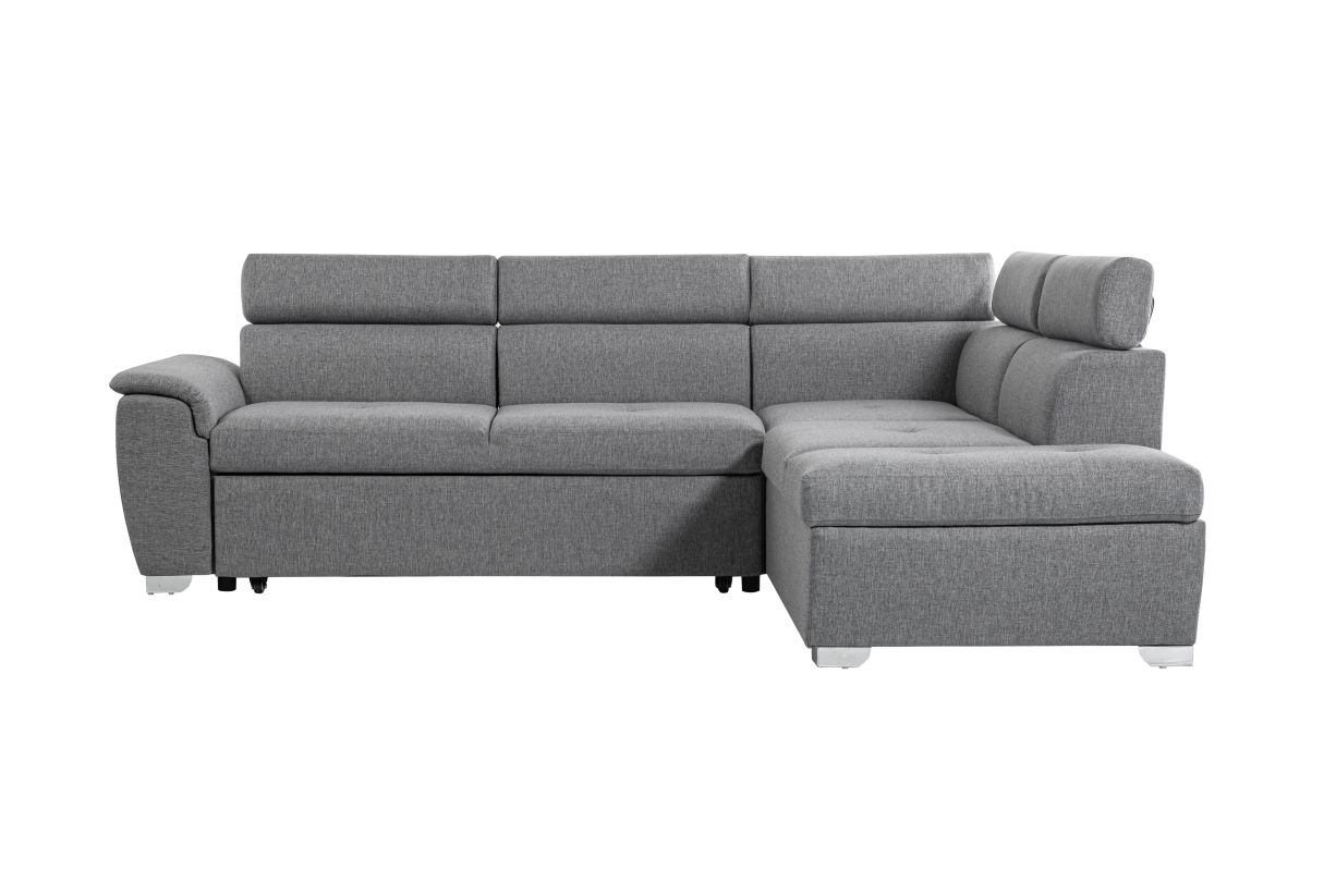 Canapé d'angle convertible PAOLA 4 places avec coffre en tissu - Gris clair - Angle Droit