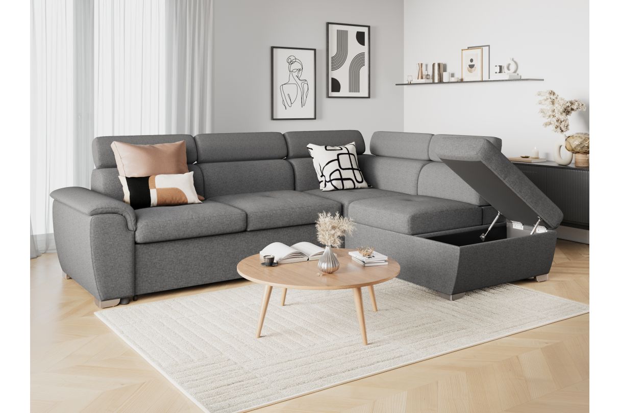 | Libellé | Canapé d'angle convertible PAOLA 4 places avec coffre en tissu - Gris clair - Angle Droit |