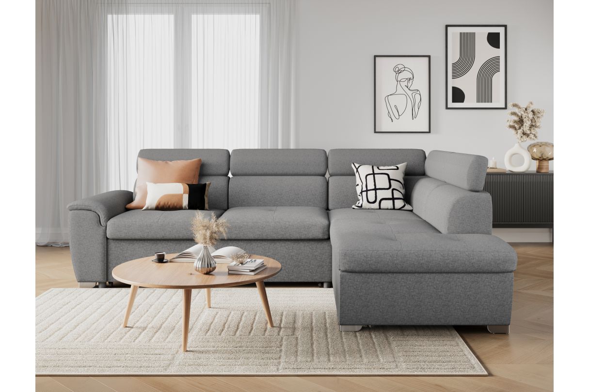 Que vous soyez en train de lire, regarder la télévision ou simplement vous détendre, ajustez les têtières pour soutenir parfaitement votre tête et votre cou. Le revêtement en tissu de qualité offre une sensation douce au toucher et une durabilité exceptionnelle. Disponible dans une palette de couleurs tendance, ce canapé s'intègre harmonieusement à tout style de décoration. Investissez dans le confort et la polyvalence avec ce canapé d'angle convertible en lit, un choix élégant qui redéfinira l'expérience de détente dans votre espace de vie.