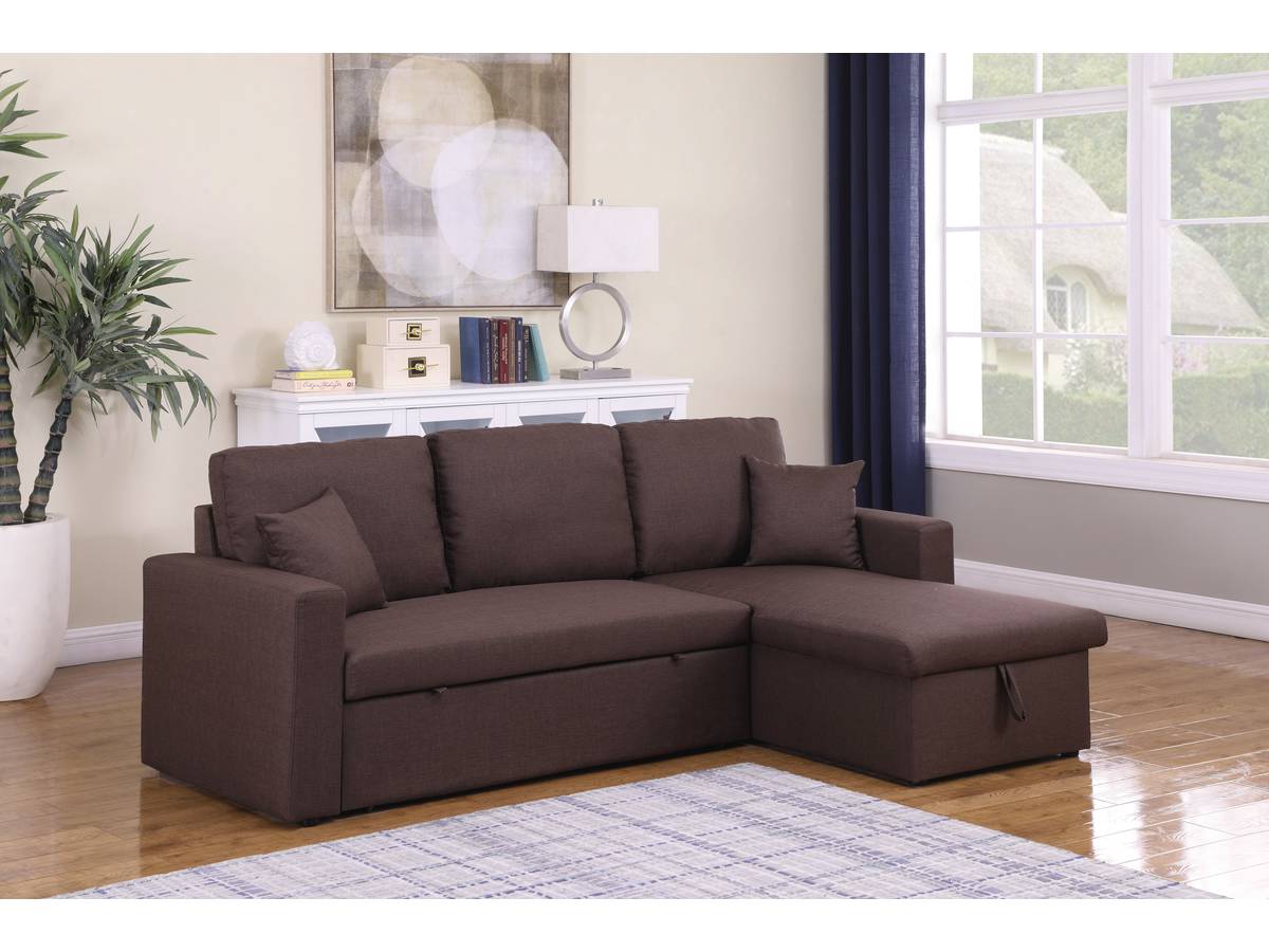 Canapé d'angle convertible/ réversible avec coffre "Alain" - 3 places - Marron