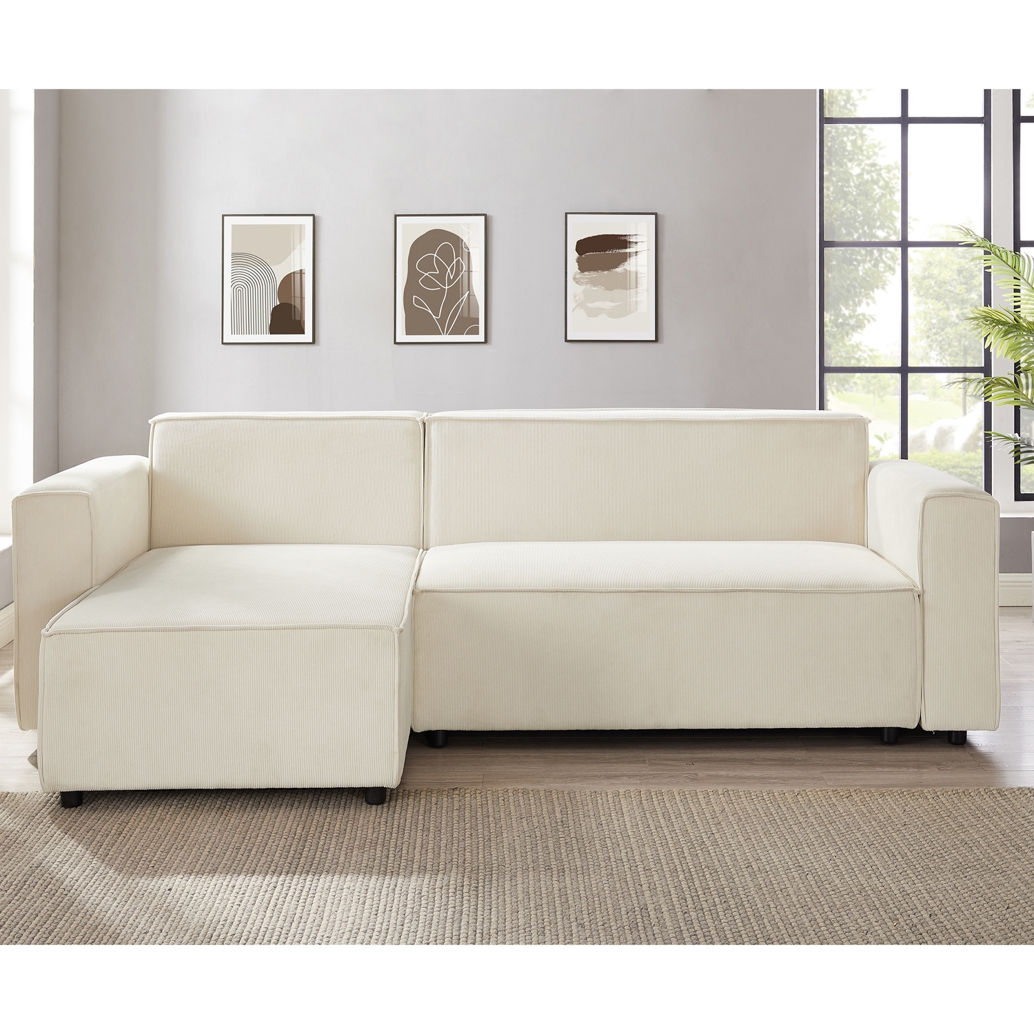 Canapé d'angle convertible réversible Lorenzo en velours côtelé Beige