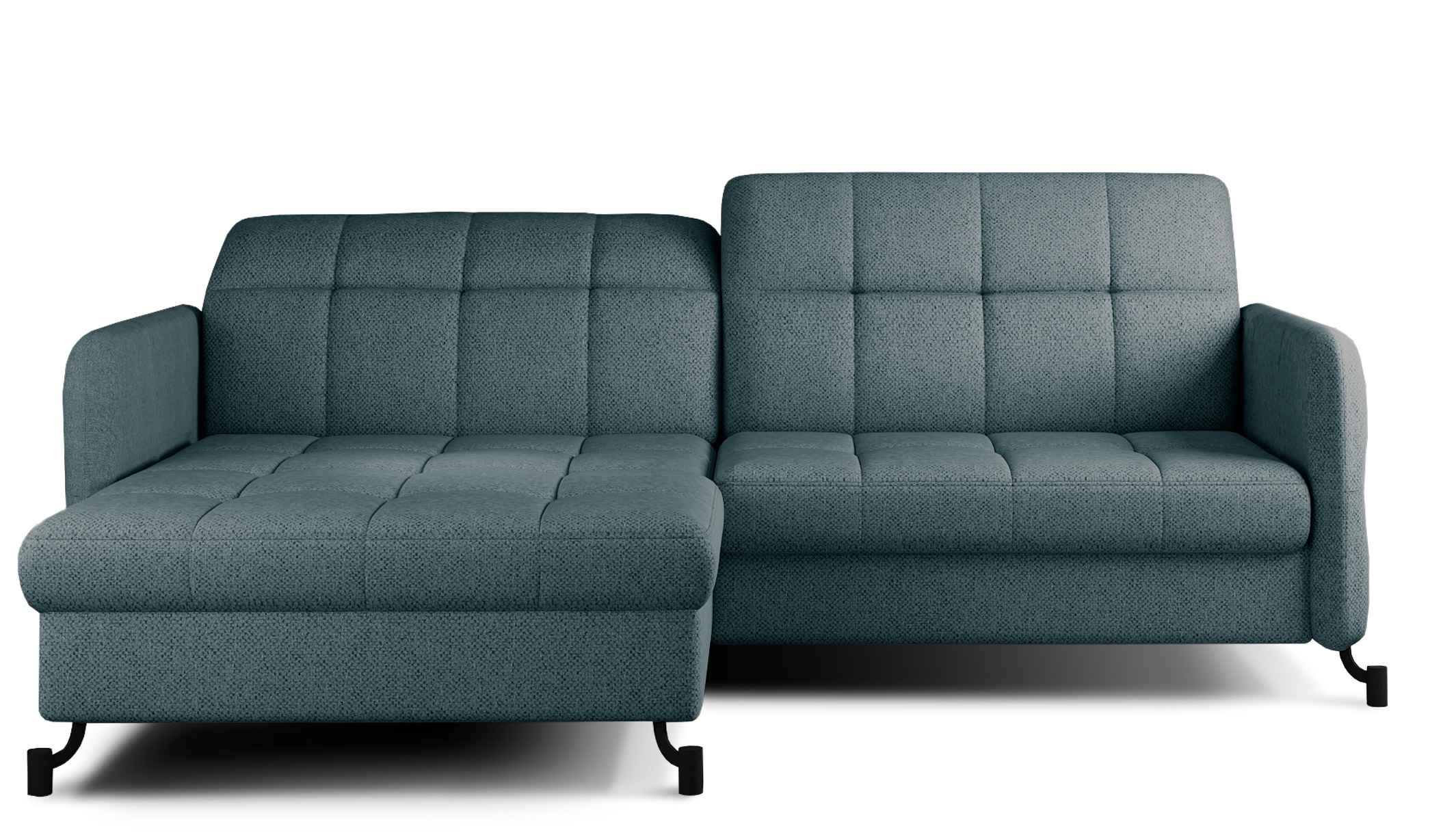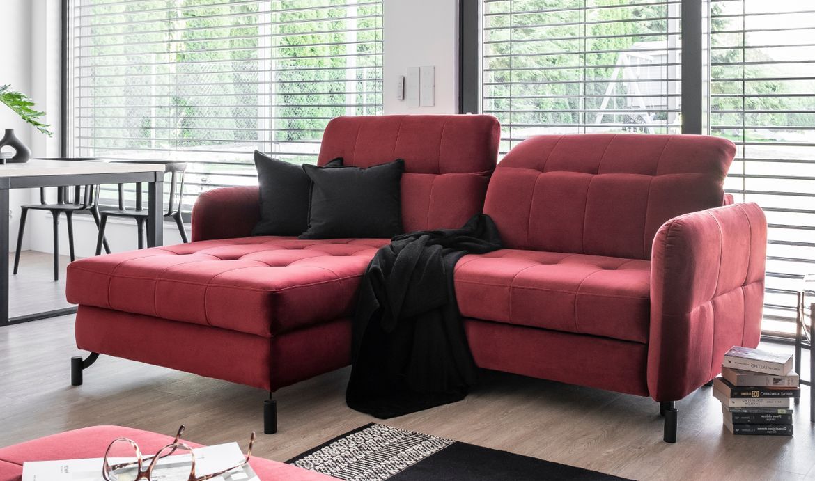 Canapé d’angle convertible MOREL en tissu haut de gamme – design contemporain et confort absolu Avec son allure moderne et ses lignes soignées, le canapé d’angle MOREL s’intègre avec élégance dans tous les intérieurs. Conçu pour offrir à la fois esthétique et fonctionnalité, il séduit par ses formes généreuses, sa structure robuste et ses finitions méticuleuses. Que ce soit pour recevoir, se détendre ou passer une bonne nuit, le MOREL répond à tous les besoins du quotidien. En journée, il offre un large espace d’assise pour 3 personnes, tandis que le soir venu, il se transforme en un lit confortable grâce à son mécanisme "dolphin" simple et rapide à manipuler. La surface de couchage de 200 x 110 cm assure un repos optimal. Il dispose également d’un grand coffre de rangement intégré dans la méridienne, idéal pour stocker vos couettes et oreillers. Confort premium grâce à l’association de mousse HR et de ressorts ondulés dans l’assise, et à des dossiers généreusement rembourrés en mousse T25, pour un maintien souple et durable. Revêtement : tissu italien haute qualité 100% polyester Garnissage poids : 330 g/m² Résistance élevée à l’abrasion Tissu imperméable, inflammable et anti-taches Traitement hydrofuge Coussins amovibles et déhoussables Lavage en machine à froid (30°) ou à la main Dimensions : Largeur : 225 cm Profondeur : 95 cm Hauteur réglable : 80/105 cm Hauteur d’assise : 45 cm Profondeur d’assise : 62 cm Méridienne : L 110 x P 160 x H 45 cm Surface de couchage : 200 x 110 cm Hauteur des pieds : 13 cm Caractéristiques supplémentaires : Structure : bois de pin massif Piètement : acier noir au design original Orientation : angle gauche ou droit au choix Têtières réglables : oui Accoudoirs : carrés Utilisation : domestique Poids total : 107 kg Assemblage requis : partiel (2 personnes) Nombre de colis : 2 Capacité de charge : 350 kg Garantie : 5 ans Fabrication : Europe Disponible dans une large sélection de coloris pour s’adapter à votre décoration. Option(s) sélectionnée(s) : - Couleur : Vert clair - Angle : angle gauche