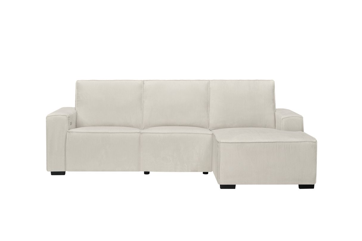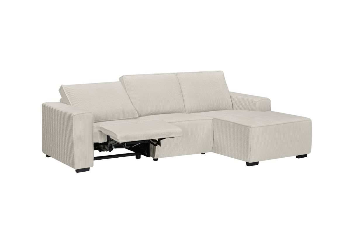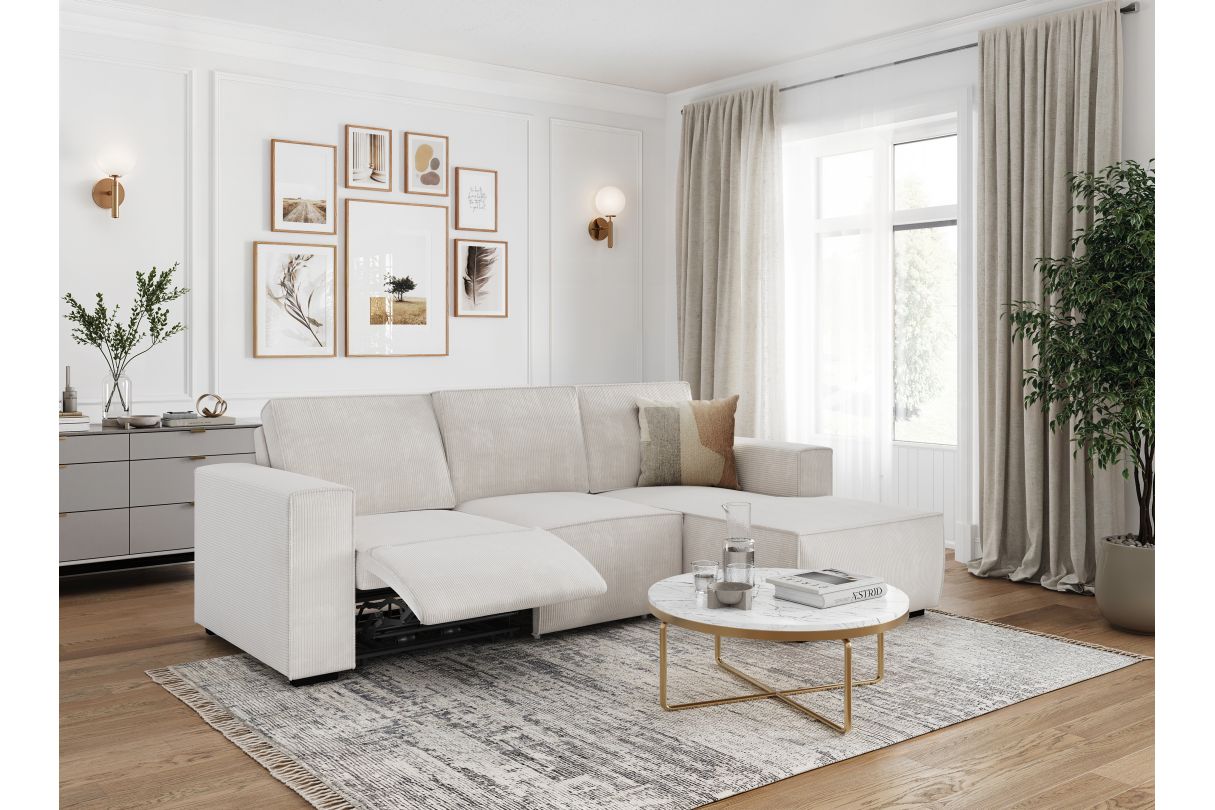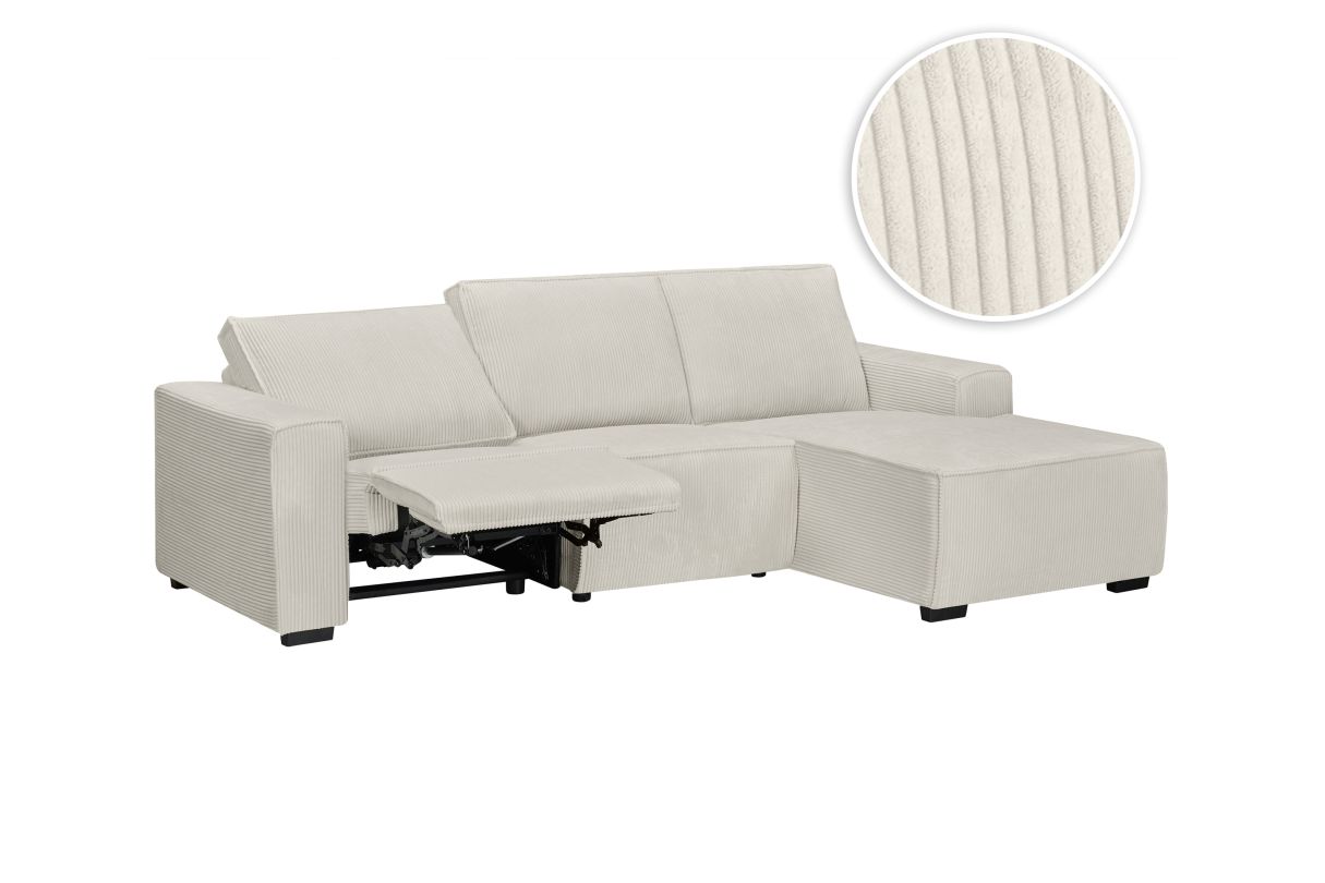 Canapé d'angle de relaxation électrique CHARLINE en velours côtelé - Angle droit - Beige