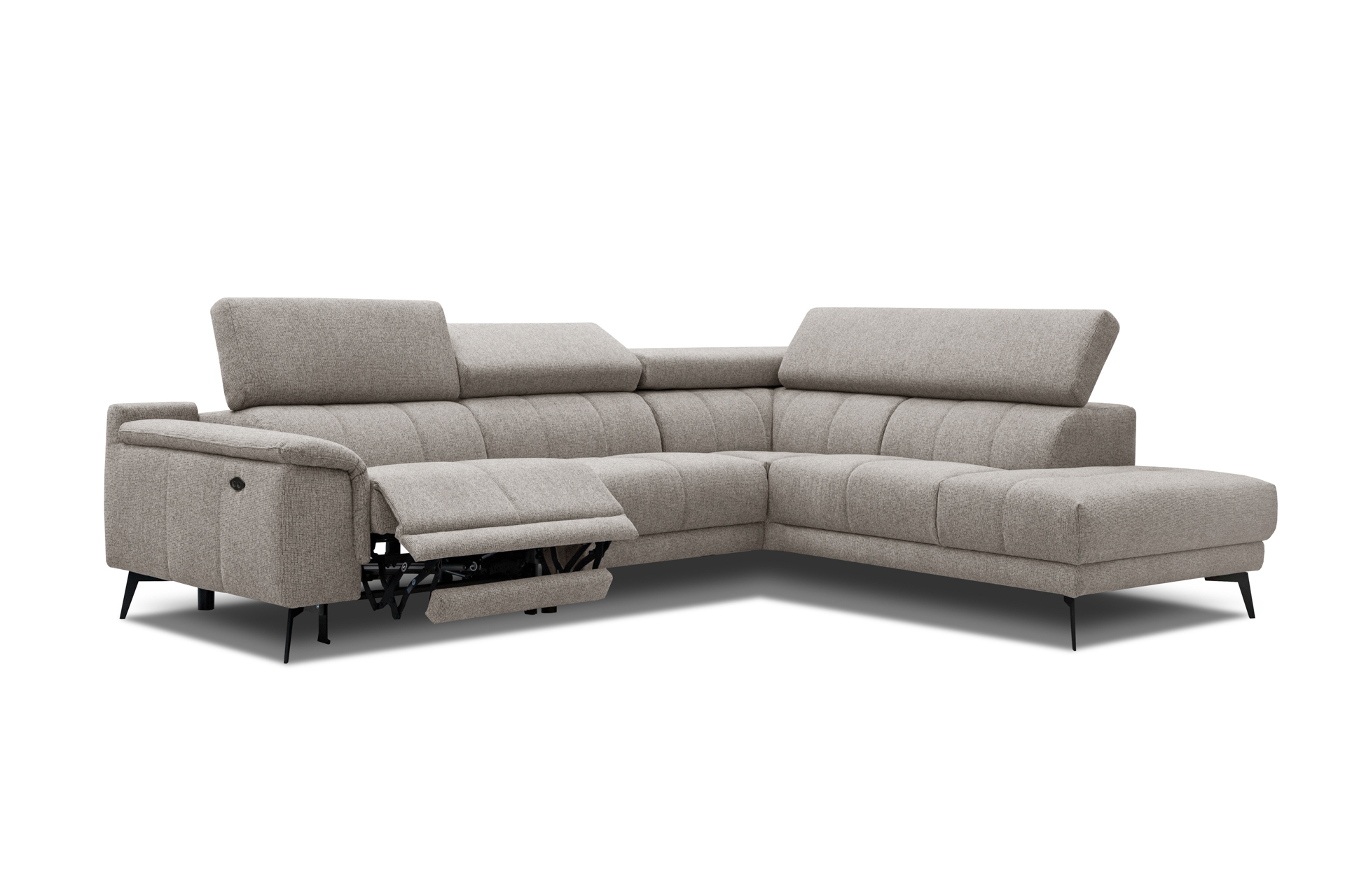 Canapé d'angle droit, 5 places avec un relax électrique, Tissu Taupe - Fiero