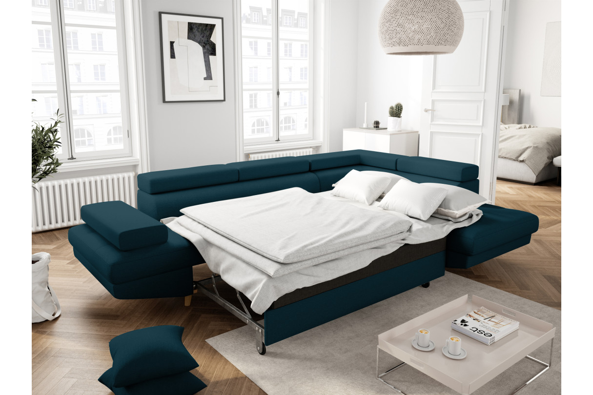 | Libellé | Canapé d'angle droit convertible RIO Scandinave avec coffre en tissu - Bleu, Pieds bois |