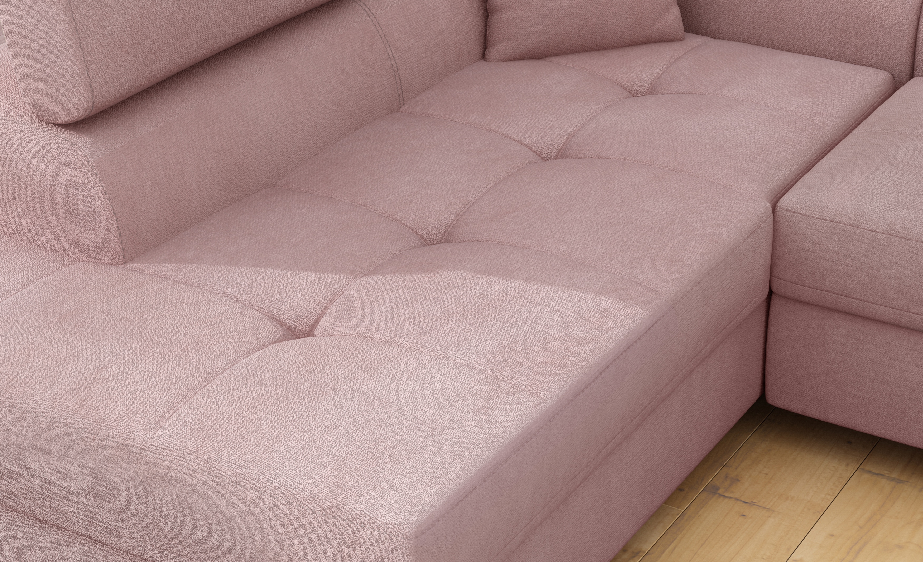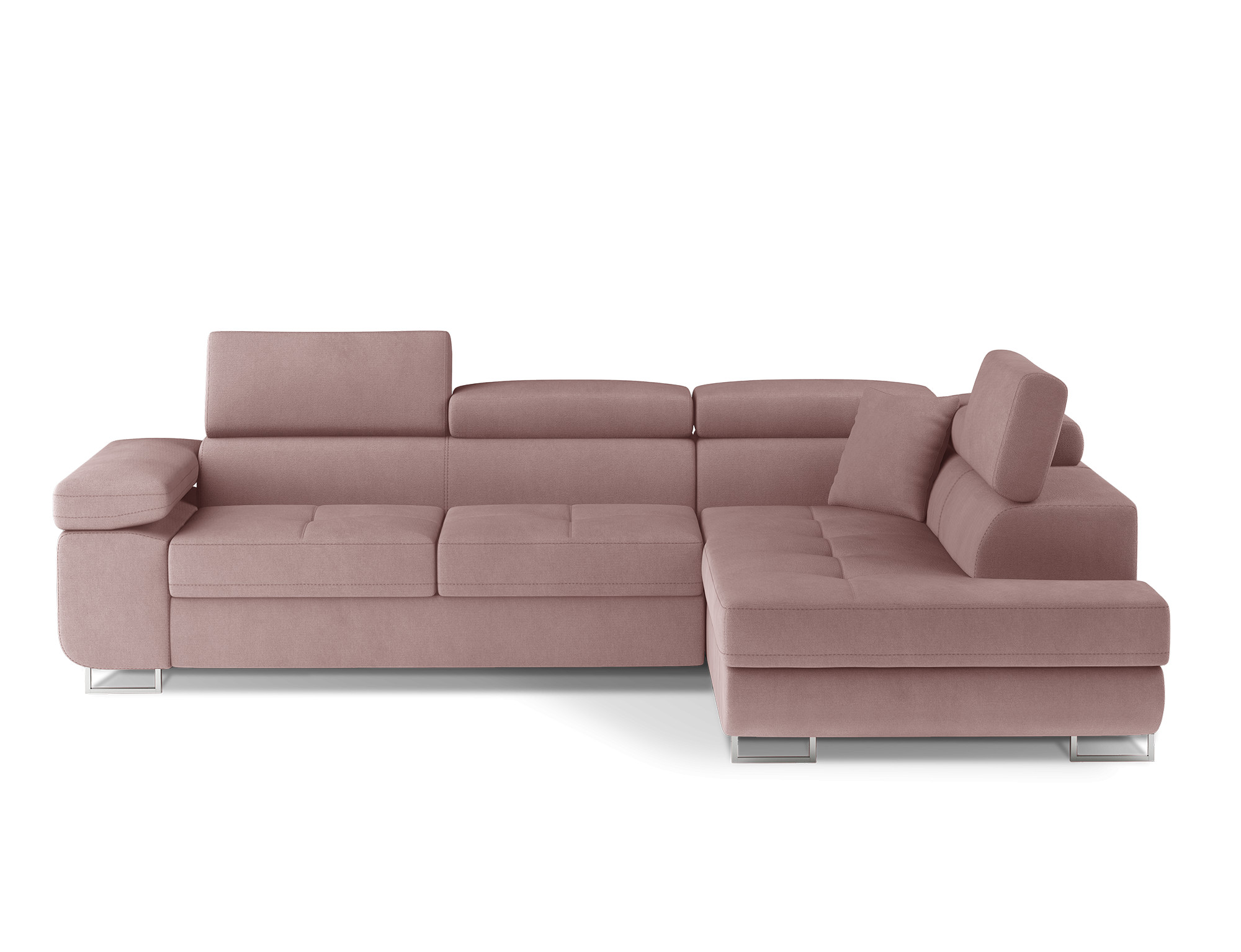 Canapé d'angle droit convertible tissu rose clair Marka 275cm