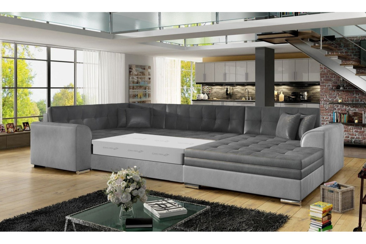 Grand format convivial : 338 x 189 x 78 cm ? sa forme en U offre une assise généreuse pour partager des moments à plusieurs.