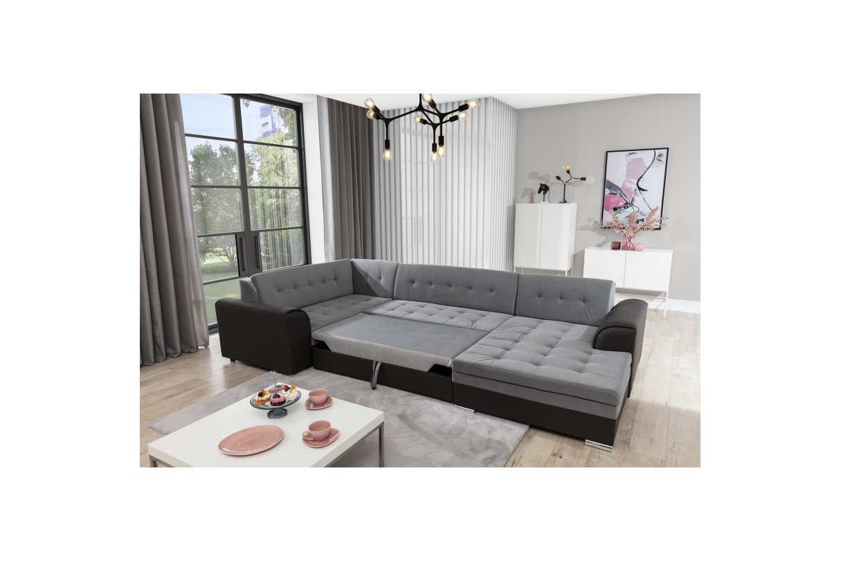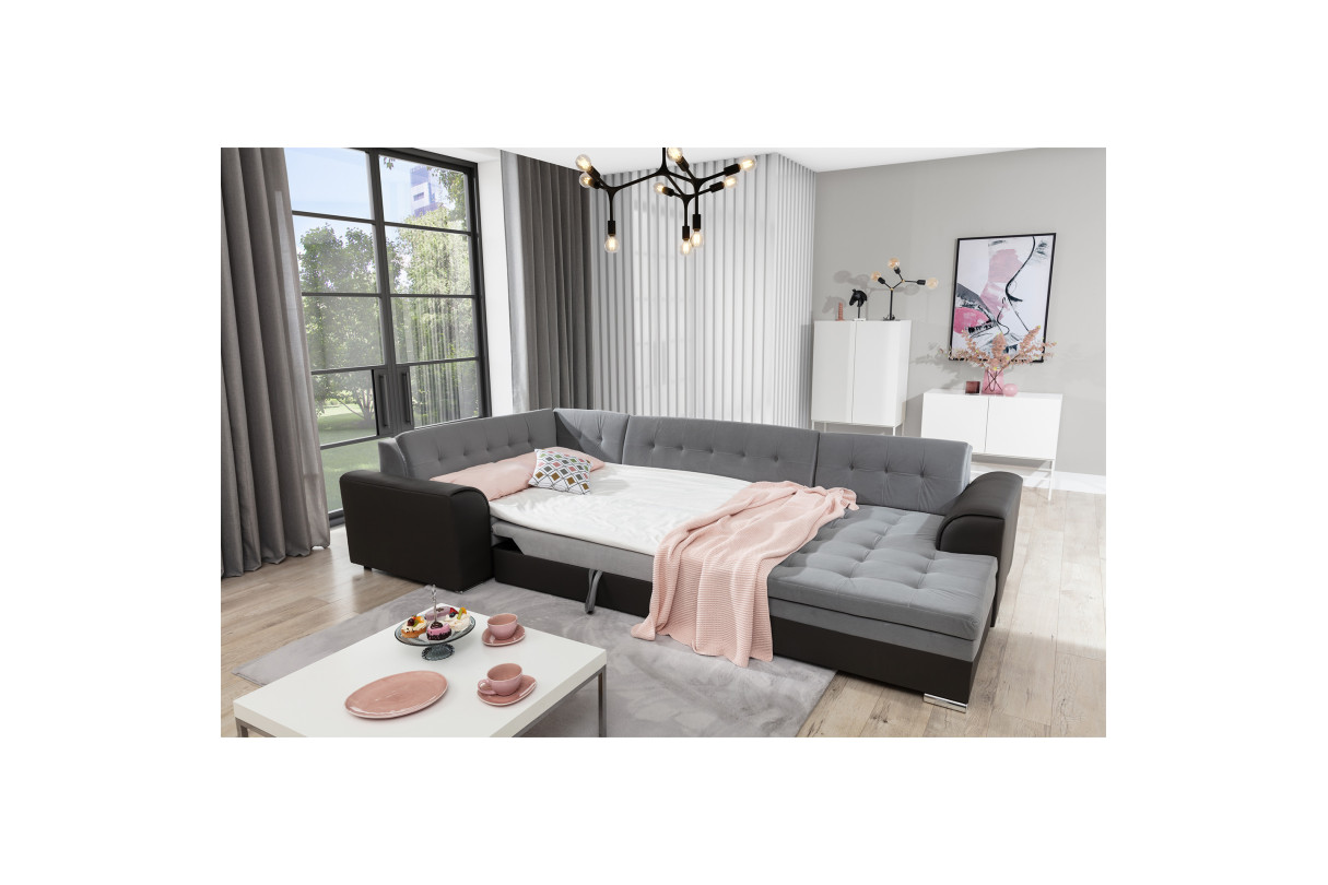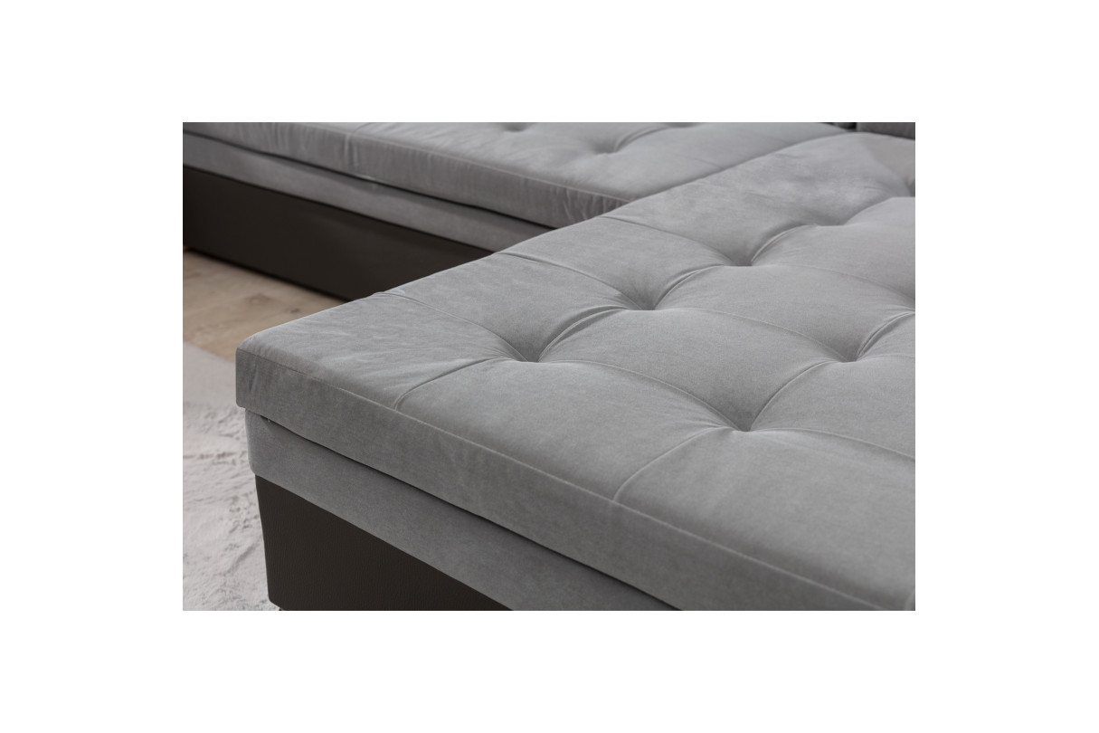 Libellé Canapé d'angle droit panoramique 5 places DALIA U convertible tissu bi color - Gris clair