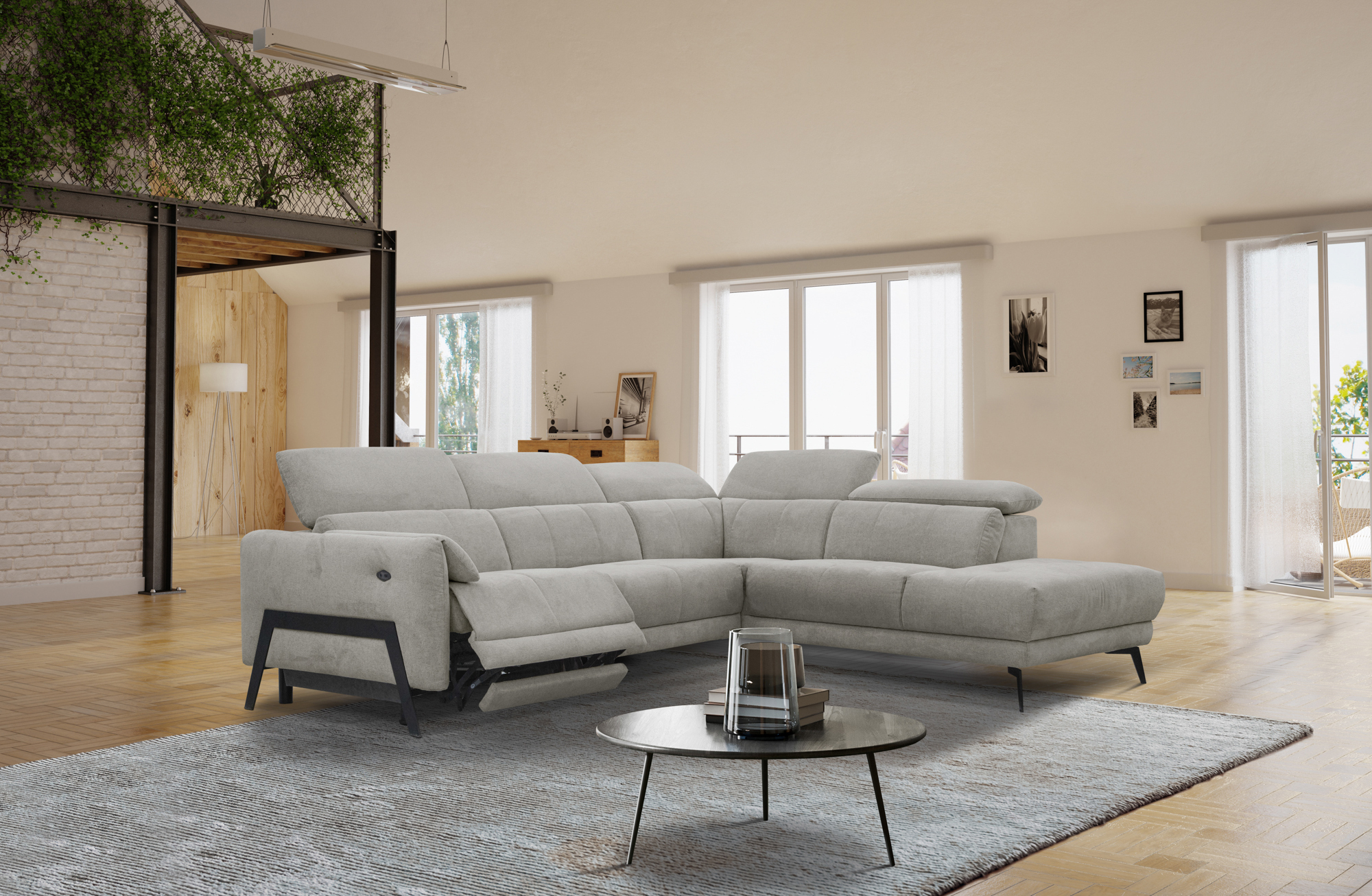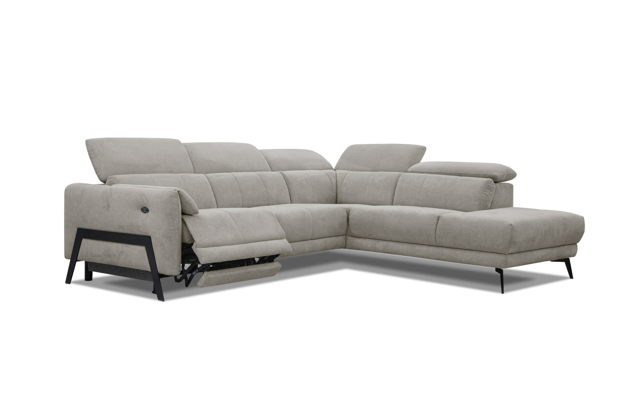 Canapé d'angle droit Scala 5 places relax électrique, tissu marron