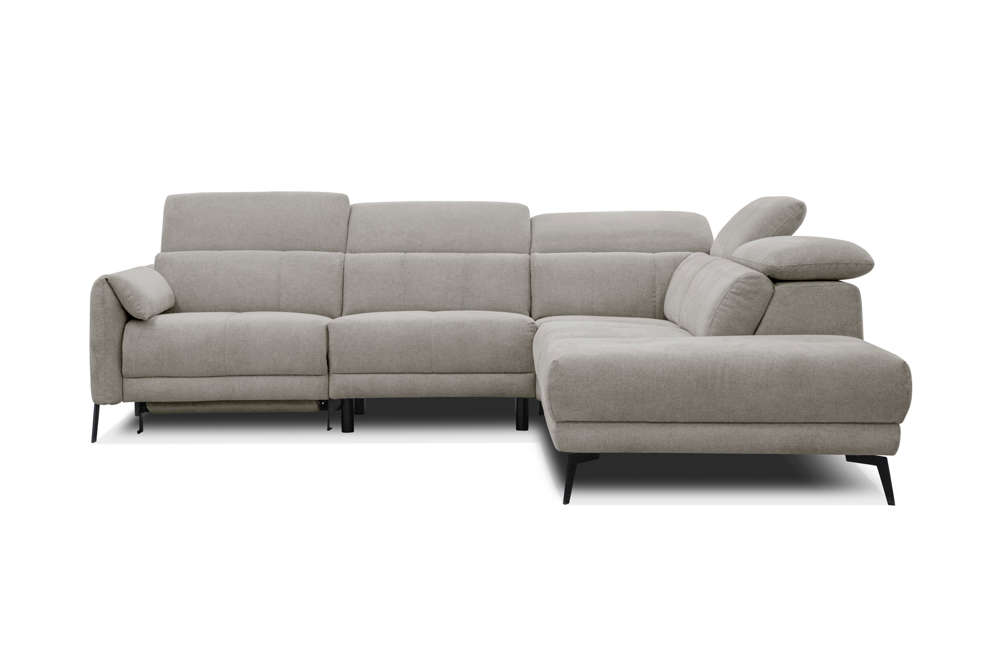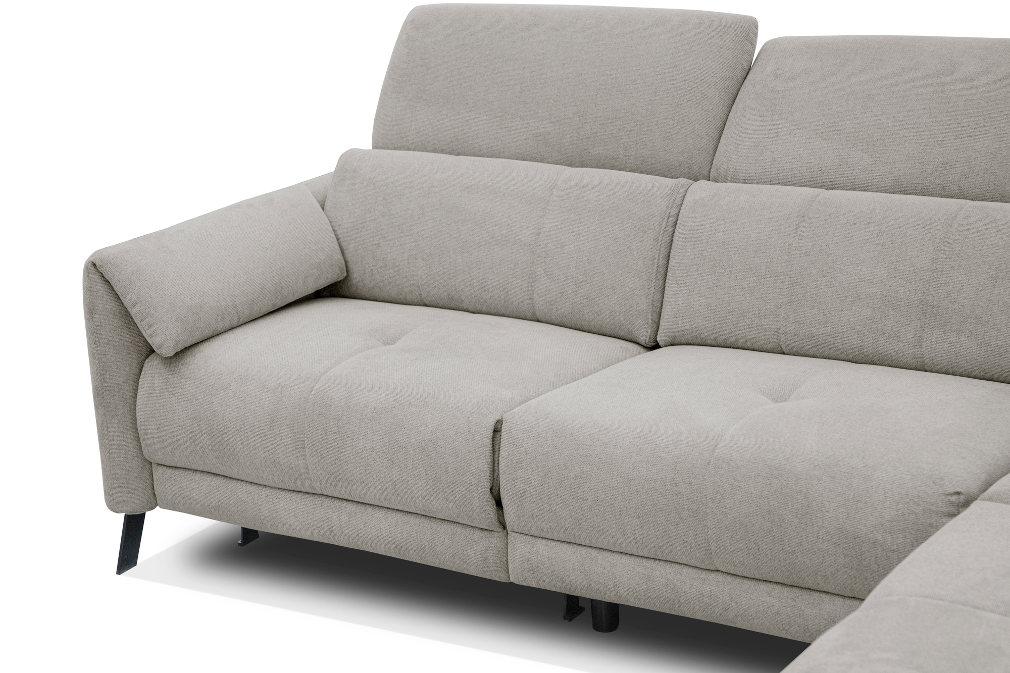Le canapé d'angle Scala est une combinaison de modernité, fonctionnalité, confort et bon goût. Le confort du meuble ravira tous ceux qui l'utilisent. Il peut accueillir confortablement 5 personnes. Le canapé proposé a une fonction de relaxation à commande électrique, grâce à laquelle l'immersion dans votre livre préféré ou passer du temps à vous détendre devant la télévision devient encore plus confortable. Toute l'expérience de détente est complétée par des appuis-tête mobiles qui peuvent être réglés à n'importe quel angle afin d'ajuster parfaitement la position d'assise à vos préférences ou à vos besoins actuels. Le canapé d'angle Scala donne l'impression de flotter au-dessus du sol, grâce aux élégants et subtils pieds en métal laqué noir visibles au premier plan. La douceur du corps du meuble est soulignée par le pied décoratif monté sur l'accoudoir. La stabilité de l'ensemble du meuble est assurée par des pieds spéciaux supplémentaires montés sous l'assise. La durabilité du meuble est garantie par les matériaux utilisés, comme les ressorts dans l'assise ou le tissu de haute qualité, très agréable au toucher. La commodité et le confort d'assise sont assurés par plusieurs couches de mousse de polyuréthane flexible à haute densité. Le travail manuel de nos passionnés et spécialistes des meubles tapissés est responsable de la qualité et de la fabrication soignée de chaque produit. Le canapé d'angle Scala se compose de trois éléments que vous pouvez assembler en littéralement 10 minutes. Colis: 3 colis 1. 95 cm (L) x 111 cm (P) x 67 cm (H) 2. 82 cm (L) x 111 cm (P) x 67 cm (H) 3. 111 cm (L) x 237 cm (P) x 67 cm (H)