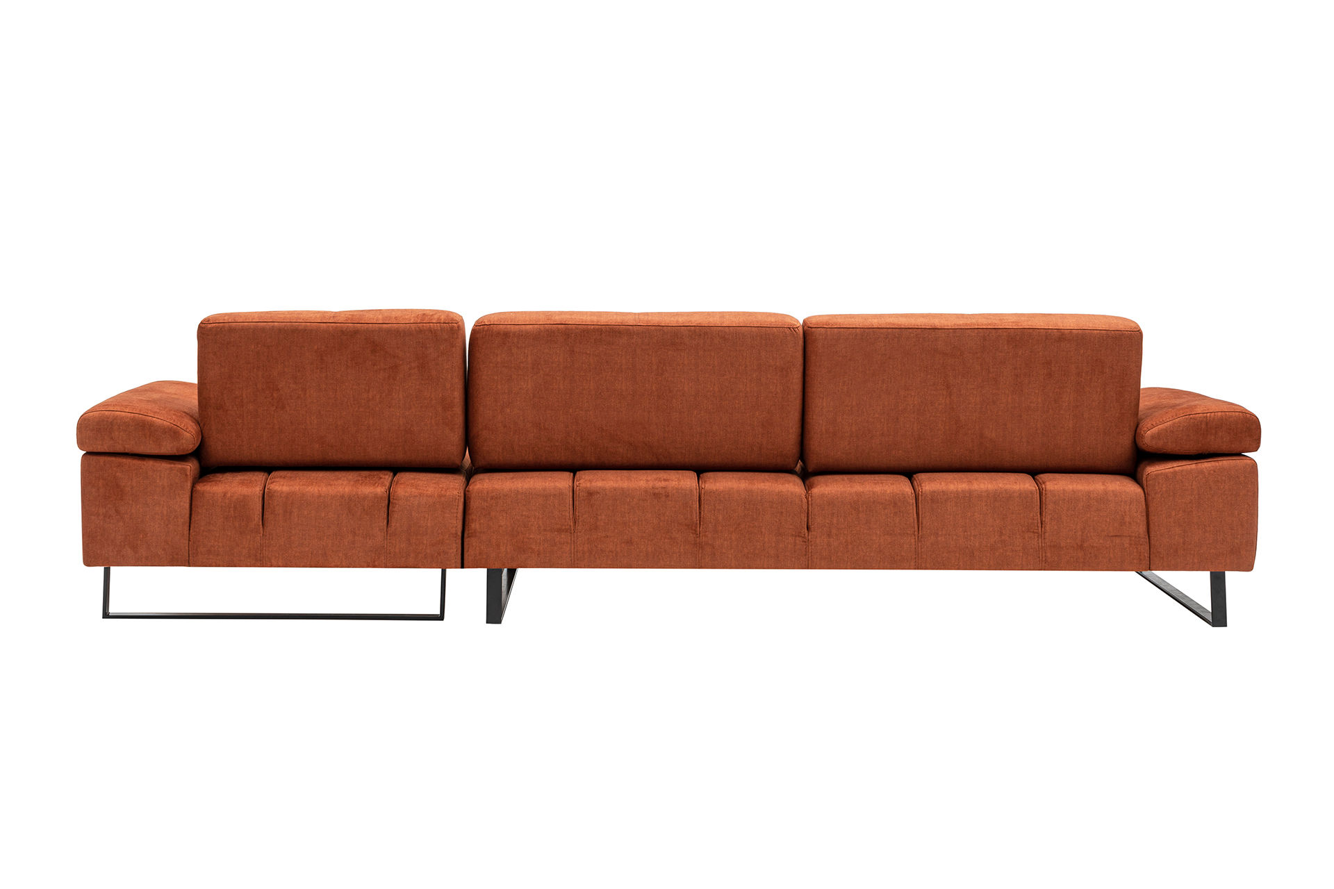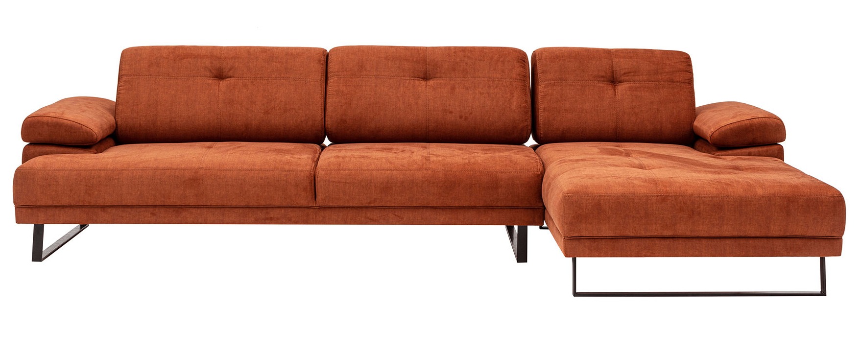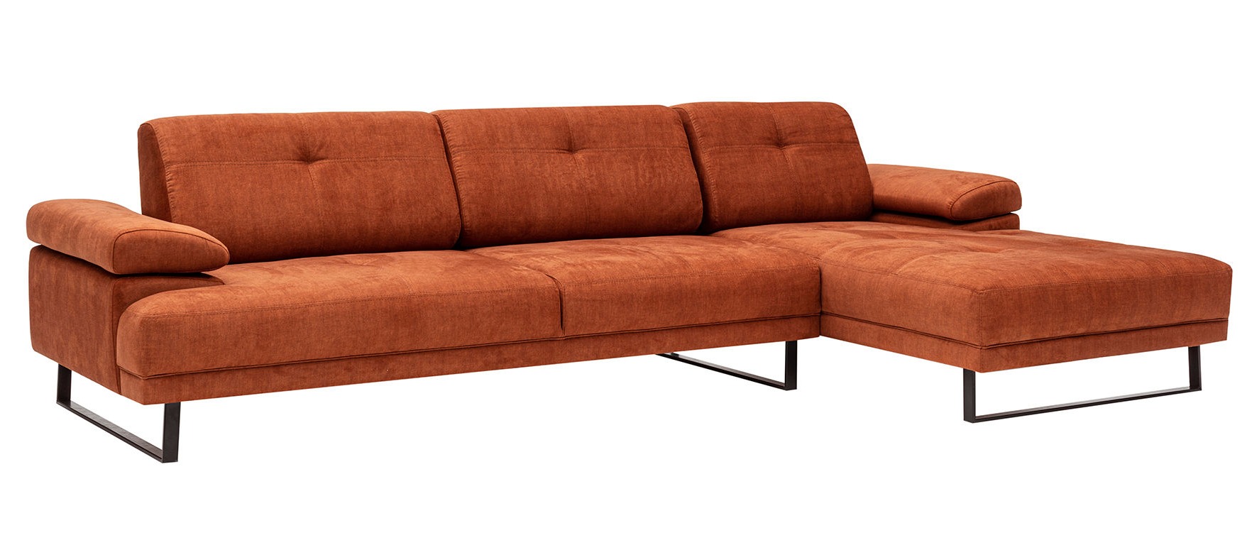Canapé d'angle droit tissu orange et métal noir Kustone 314cm