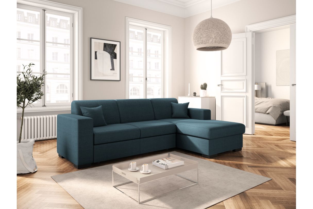 | Libellé | Canapé d'angle FUJI XL convertible avec coffre en tissu - Angle Droit, Bleu pétrole |