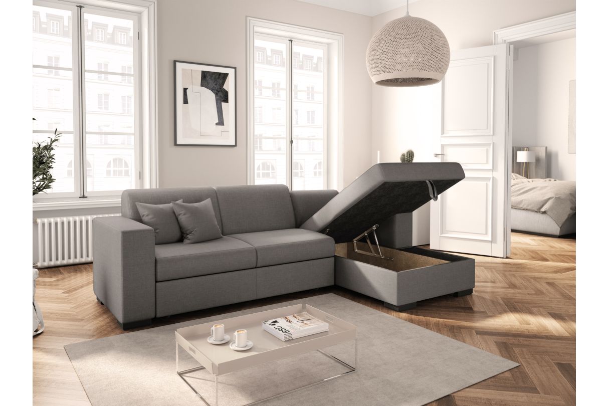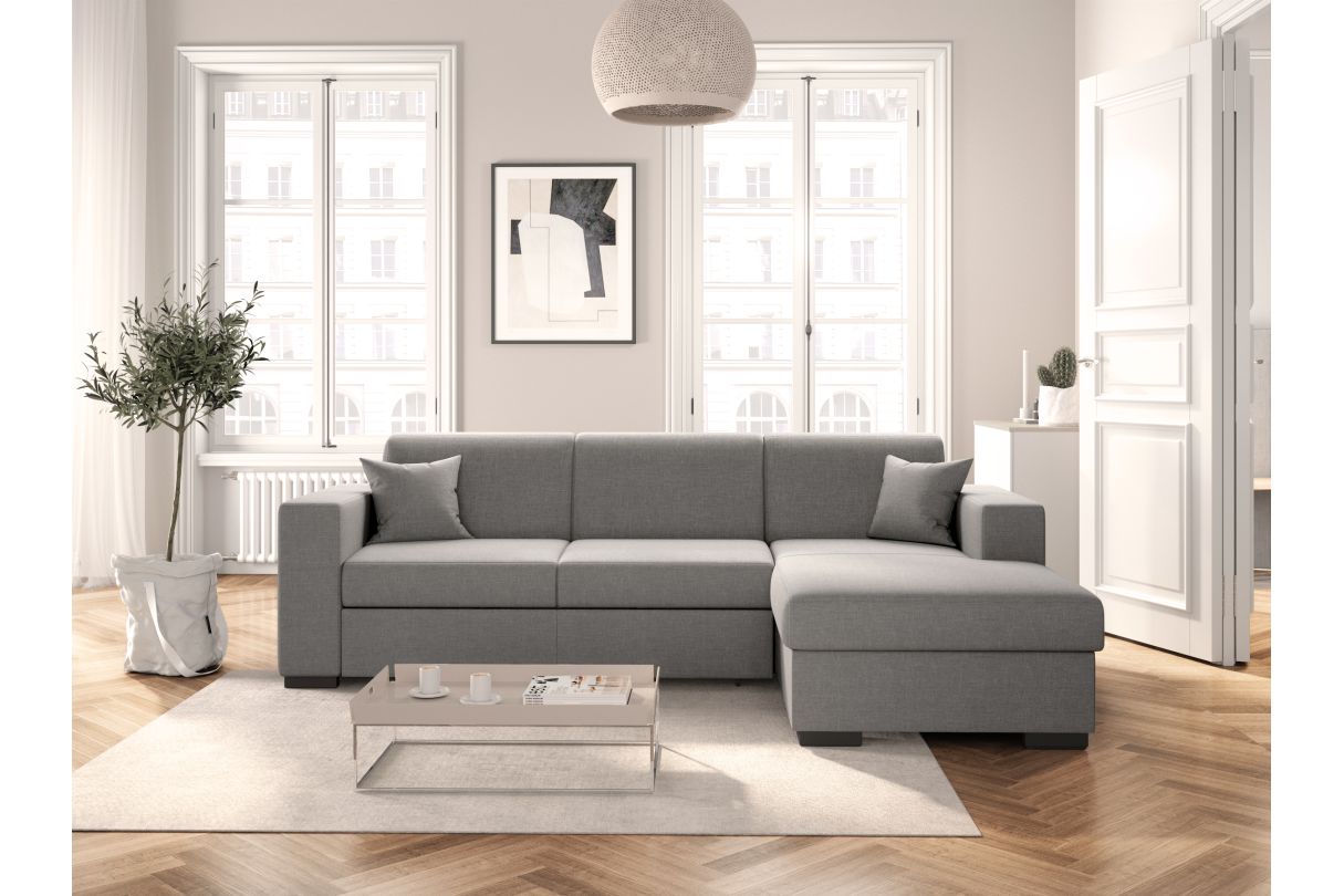 | Libellé | Canapé d'angle FUJI XL convertible avec coffre en tissu - Angle Droit, Gris clair |