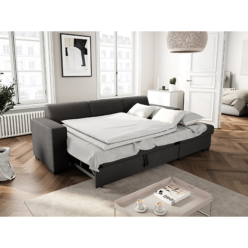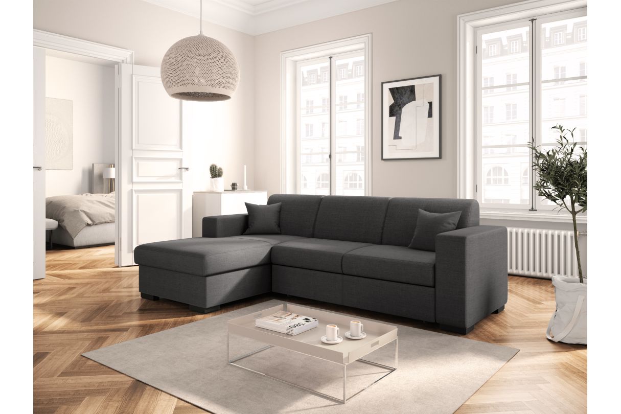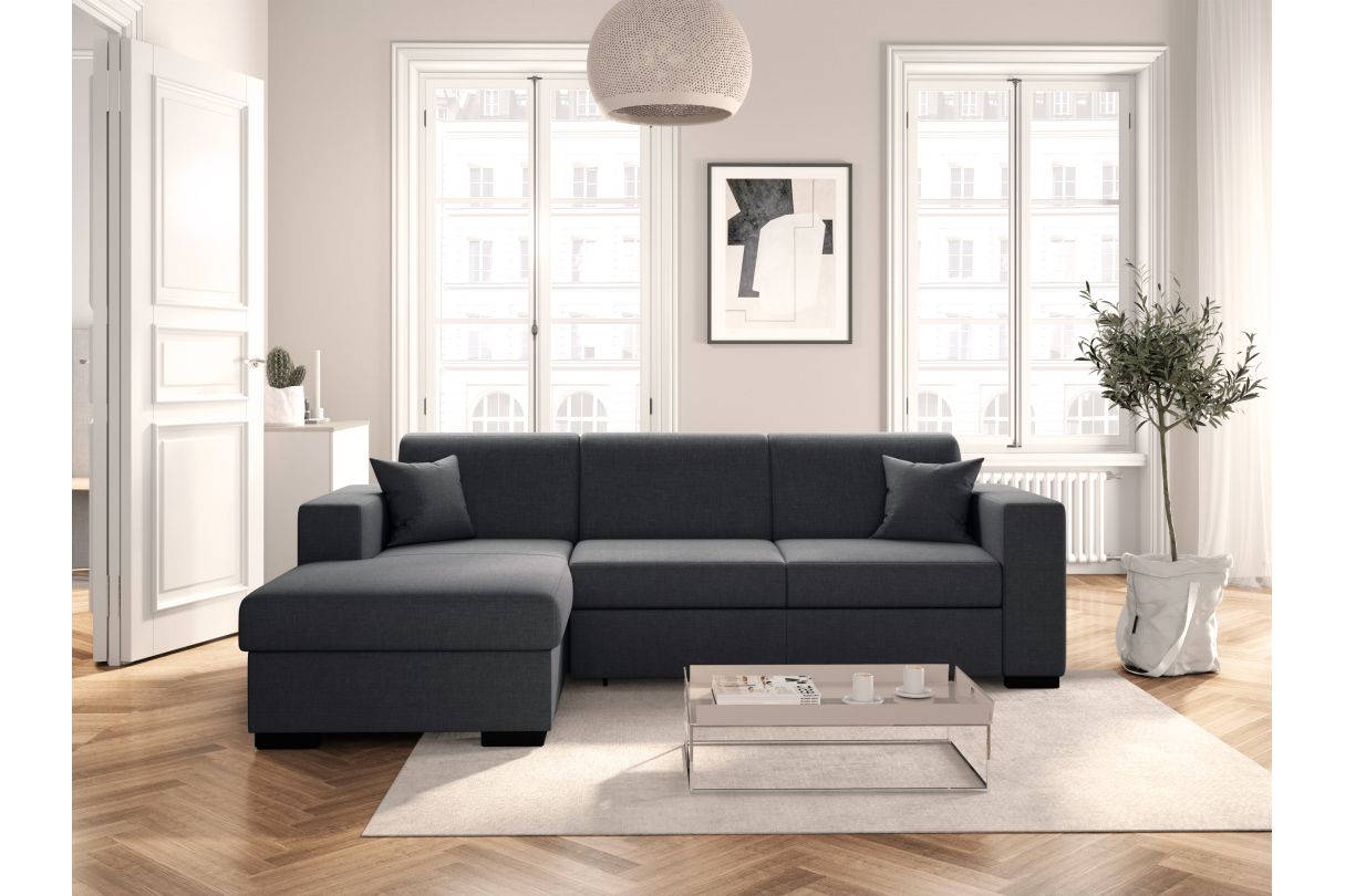 | Libellé | Canapé d'angle FUJI XL convertible avec coffre en tissu - Angle Gauche, Gris foncé |