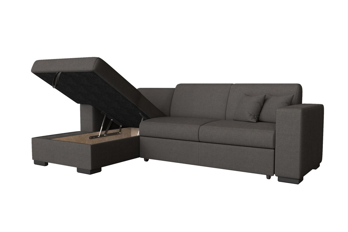 Canapé d'angle FUJI XL convertible avec coffre en tissu - Angle Gauche, Gris foncé