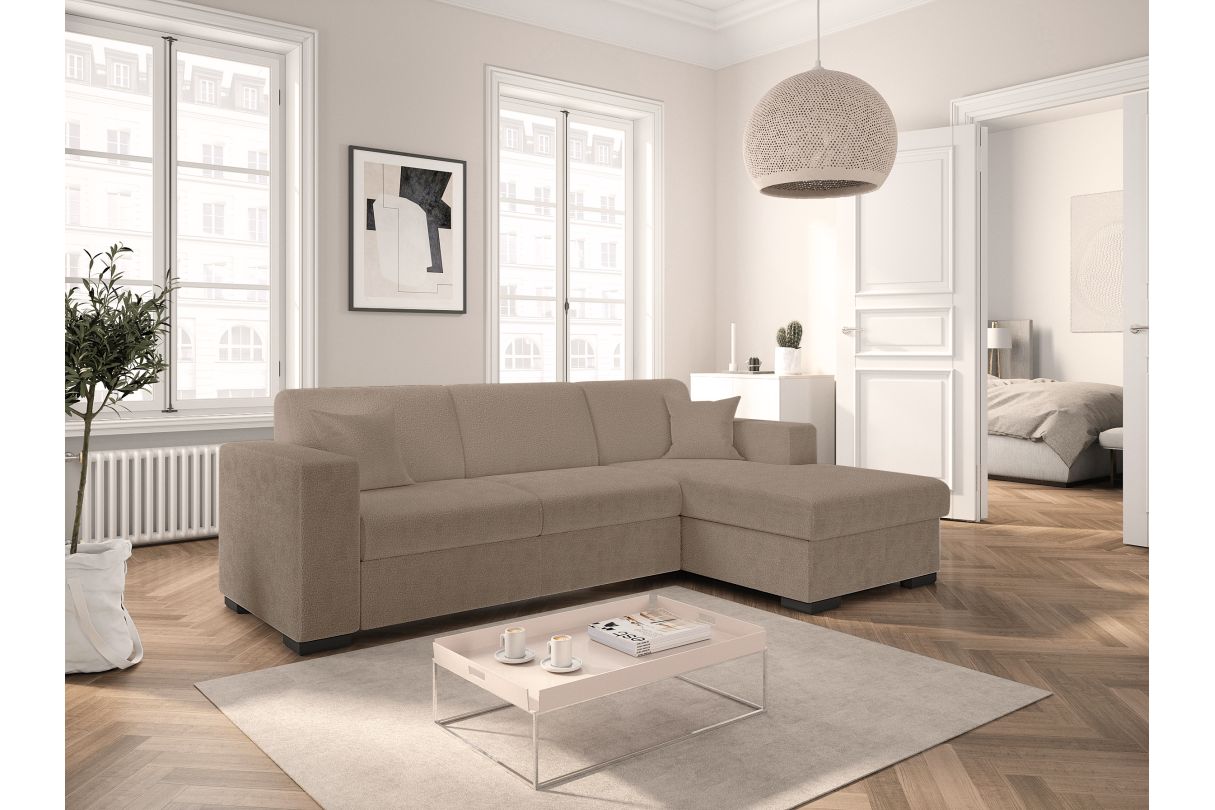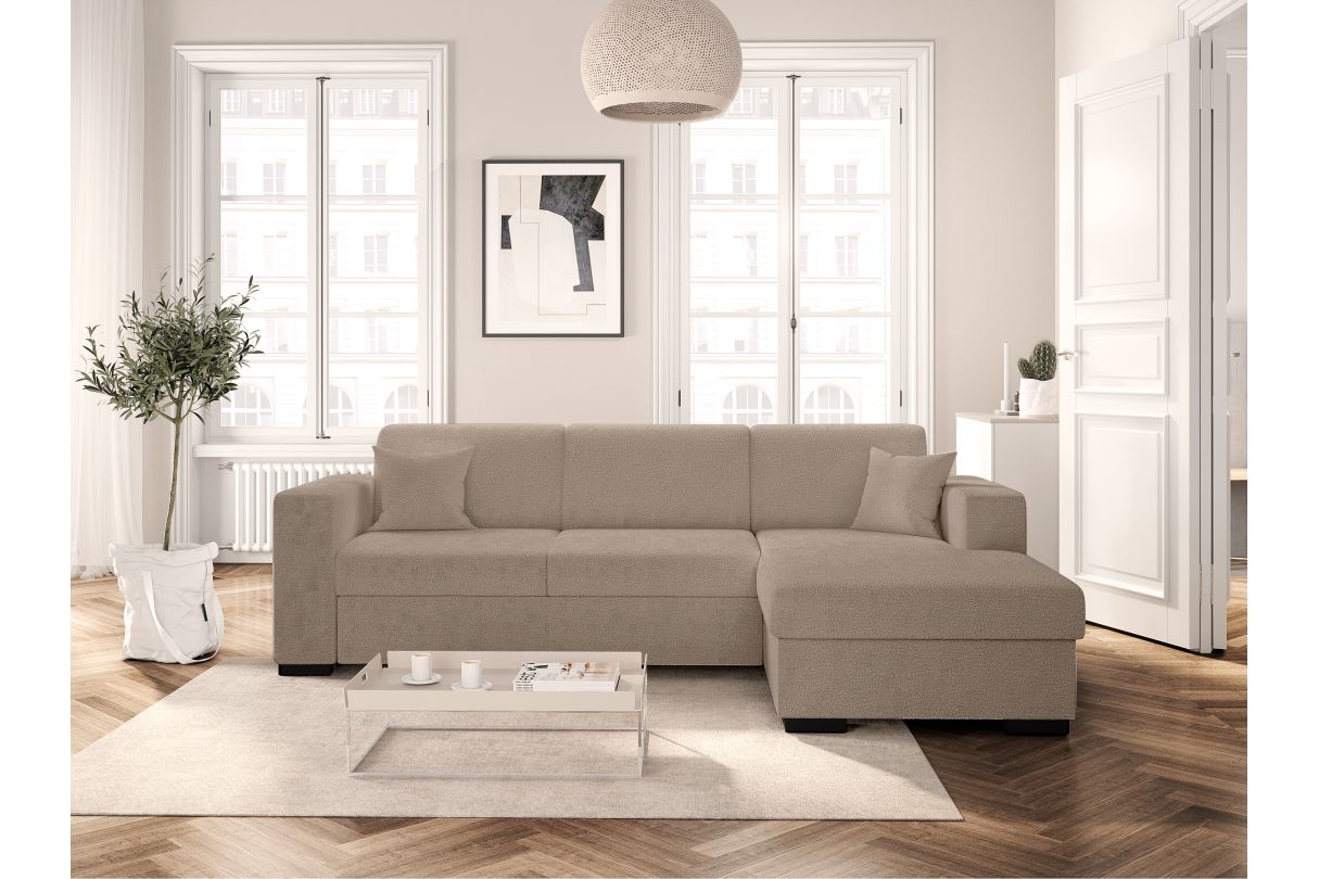 | Libellé | Canapé d'angle FUJI XL convertible avec coffre en tissu bouclette - Angle droit - Taupe |