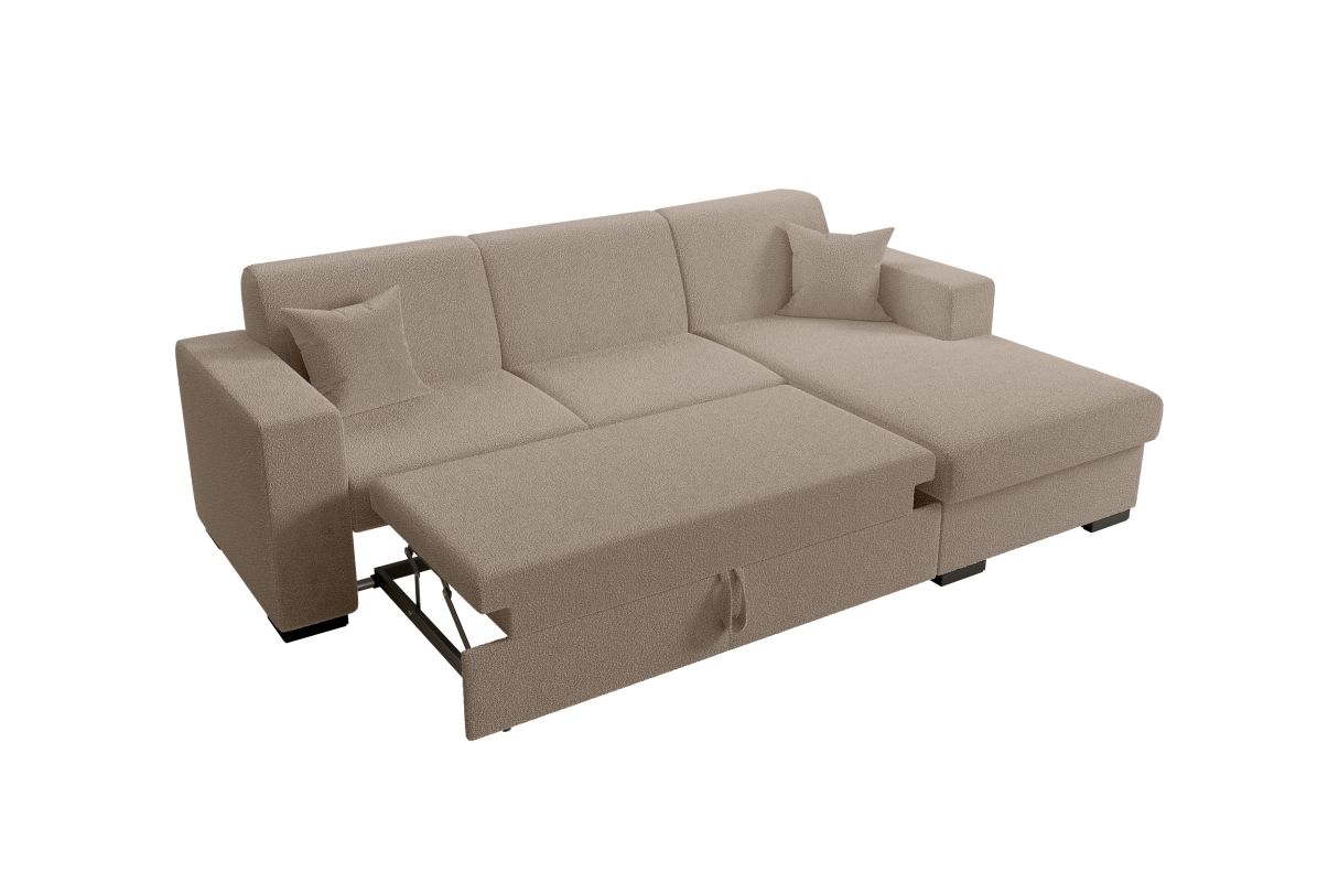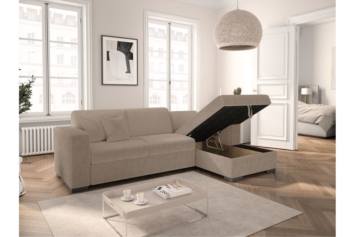 Canapé d'angle FUJI XL convertible avec coffre en tissu bouclette - Angle droit - Taupe