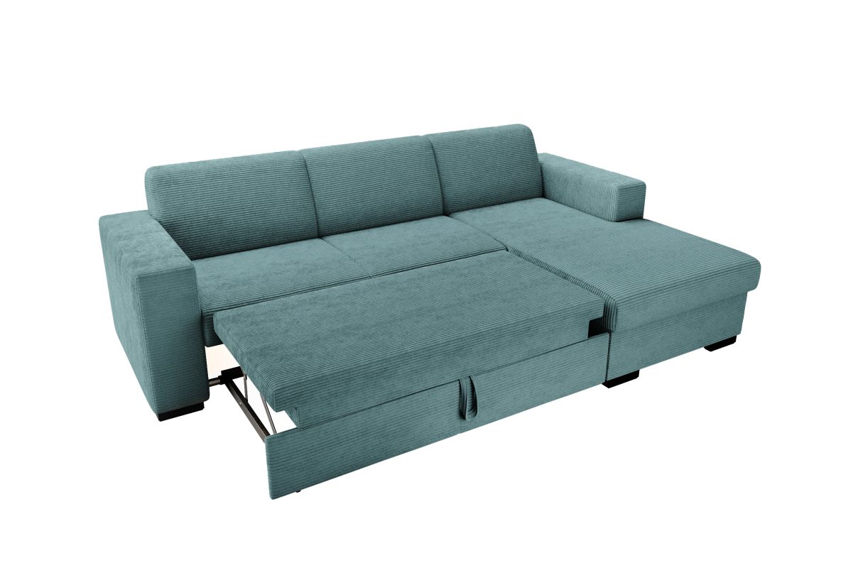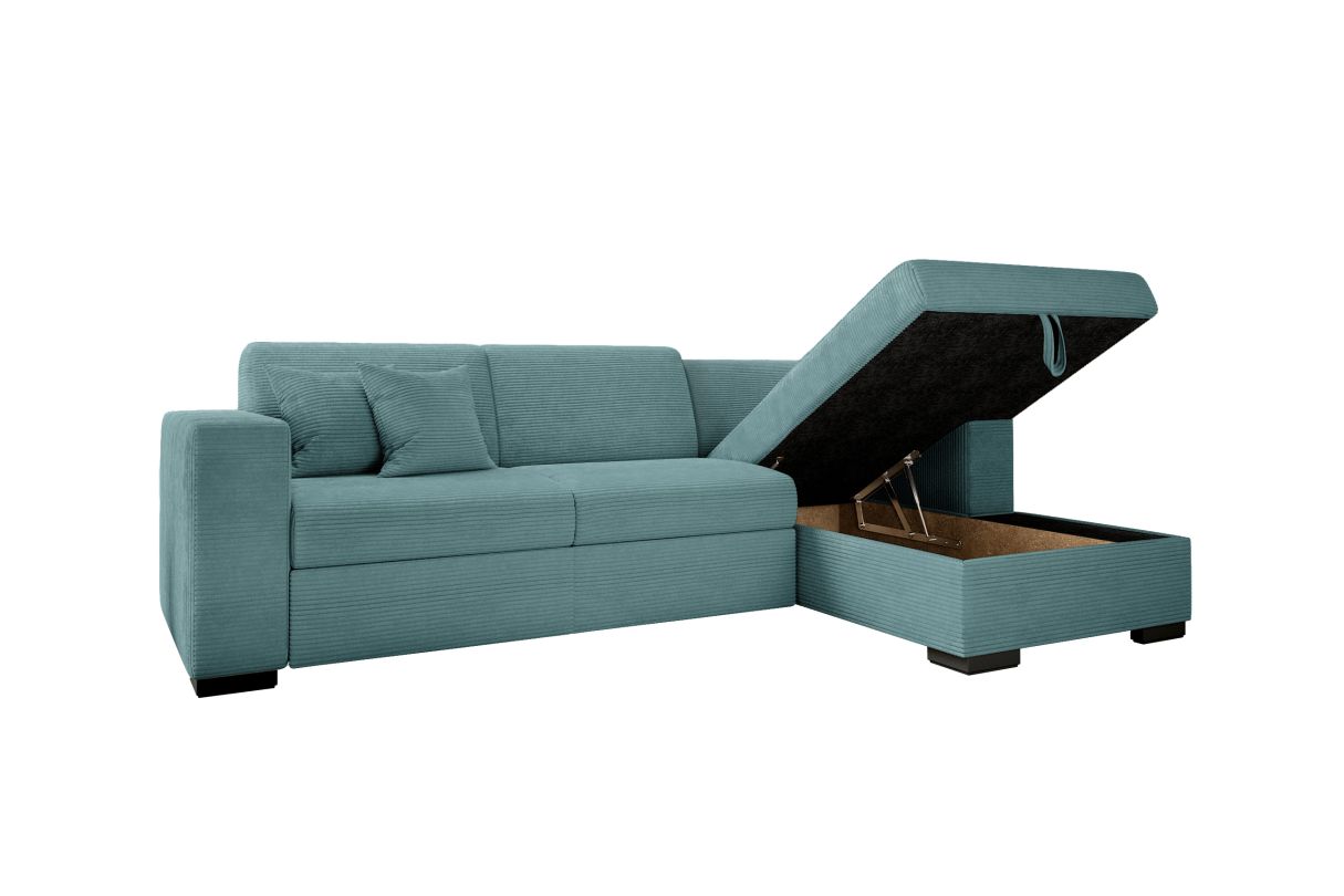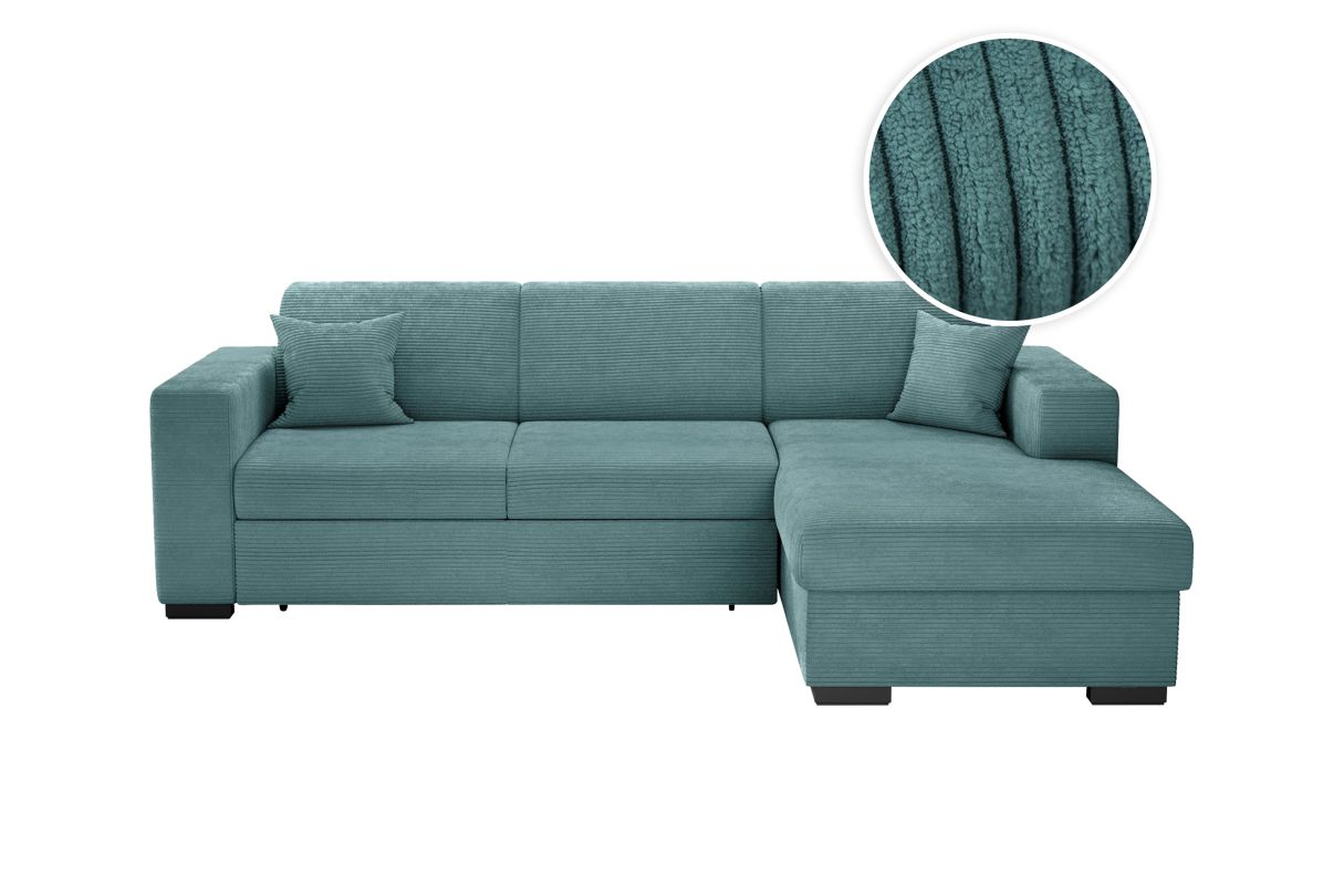 Libellé Canapé d'angle FUJI XL convertible avec coffre en velours côtelé - Angle droit - Bleu clair