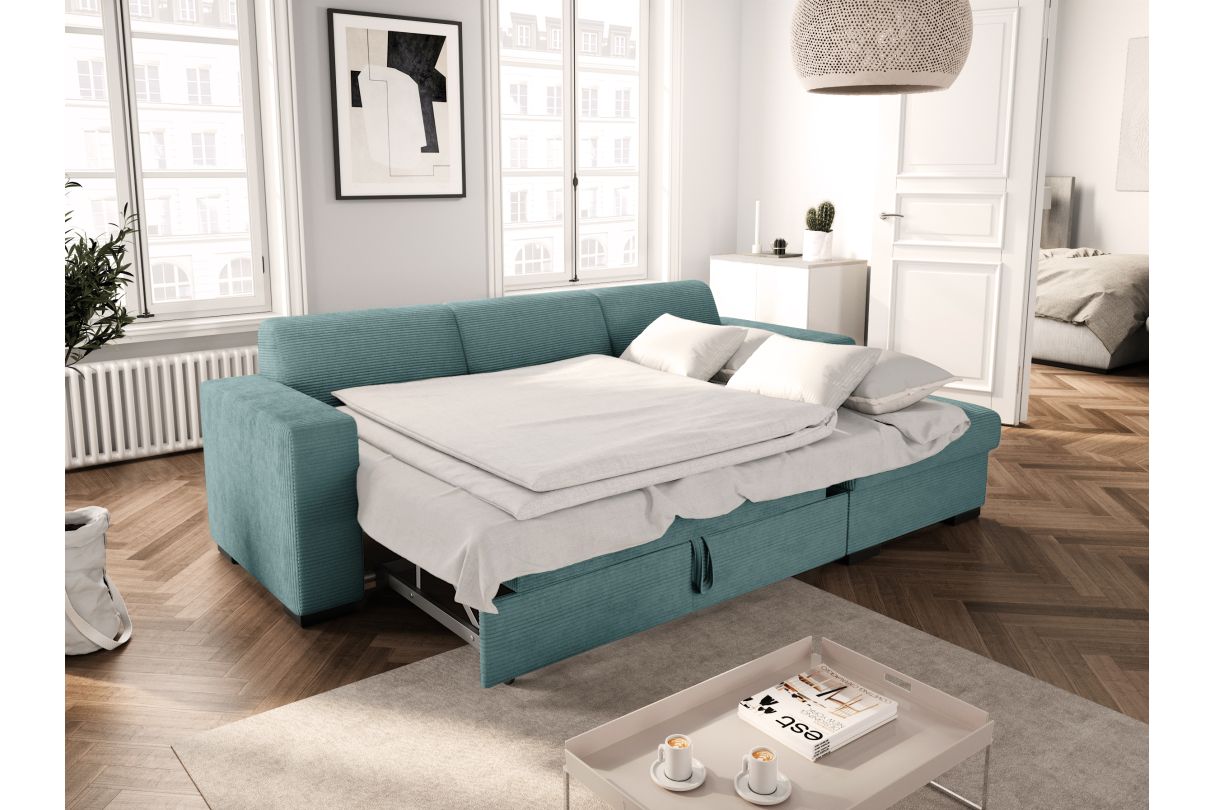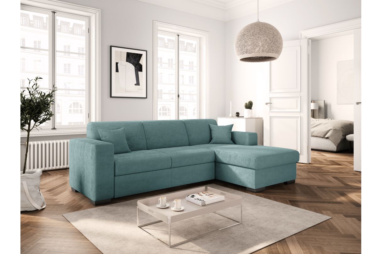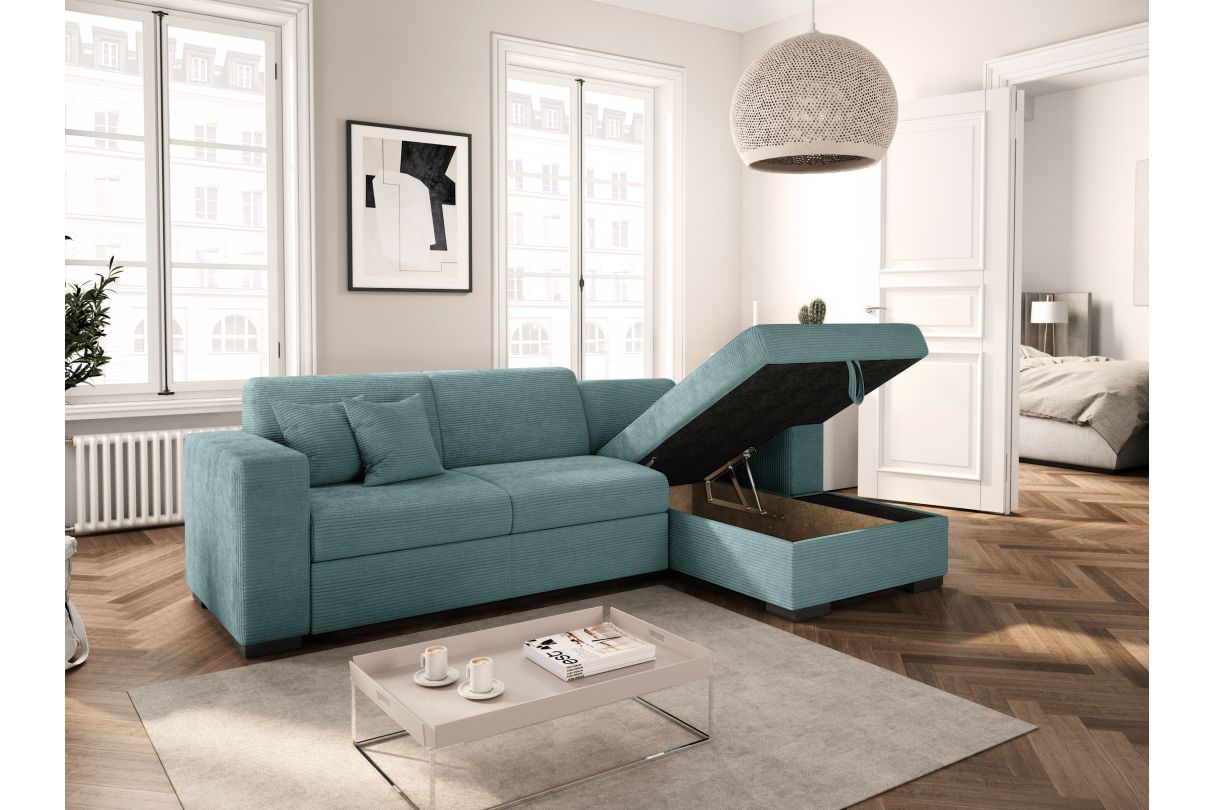 Canapé d'angle FUJI XL convertible avec coffre en velours côtelé - Angle droit - Bleu clair