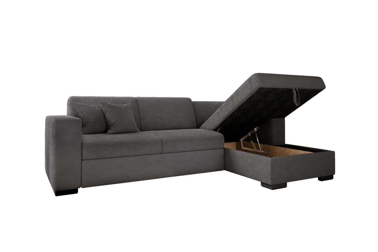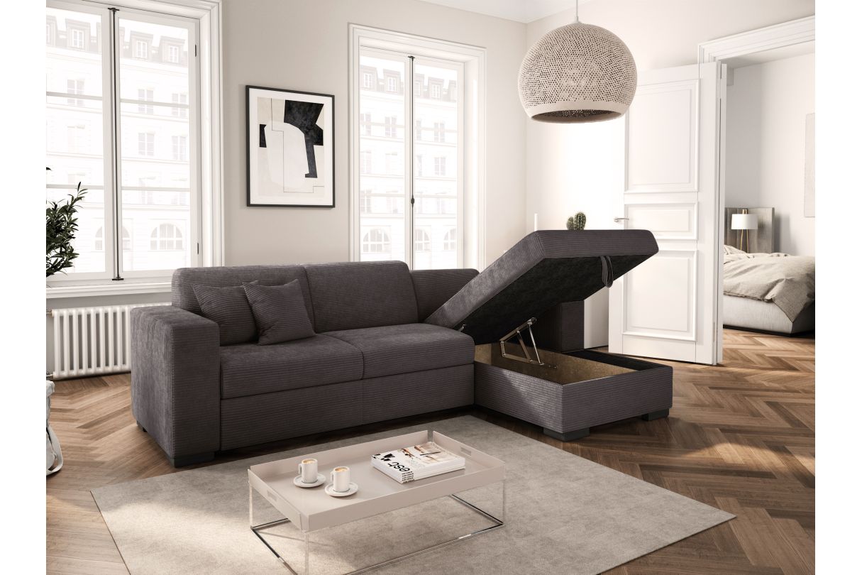 Canapé d'angle FUJI XL convertible avec coffre en velours côtelé - Angle droit - Gris foncé