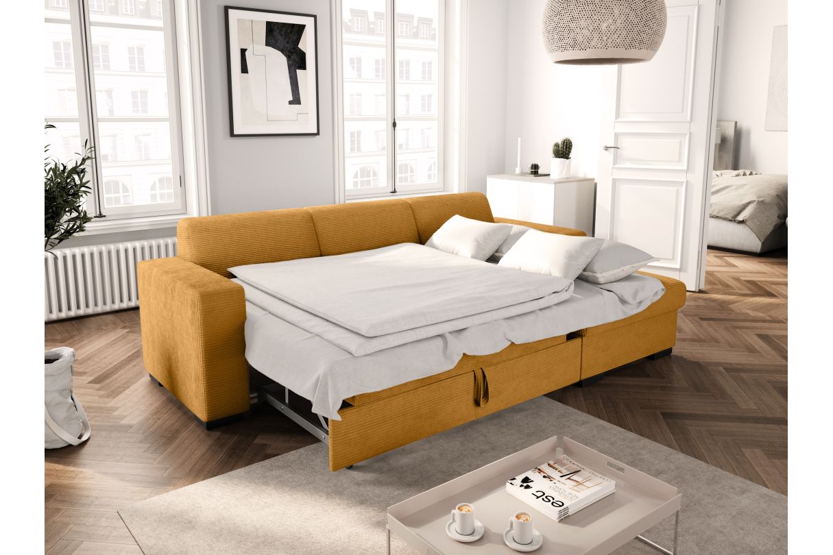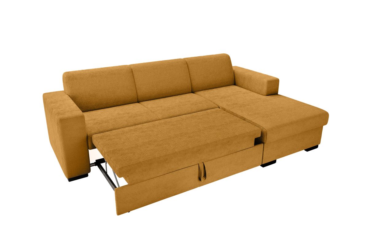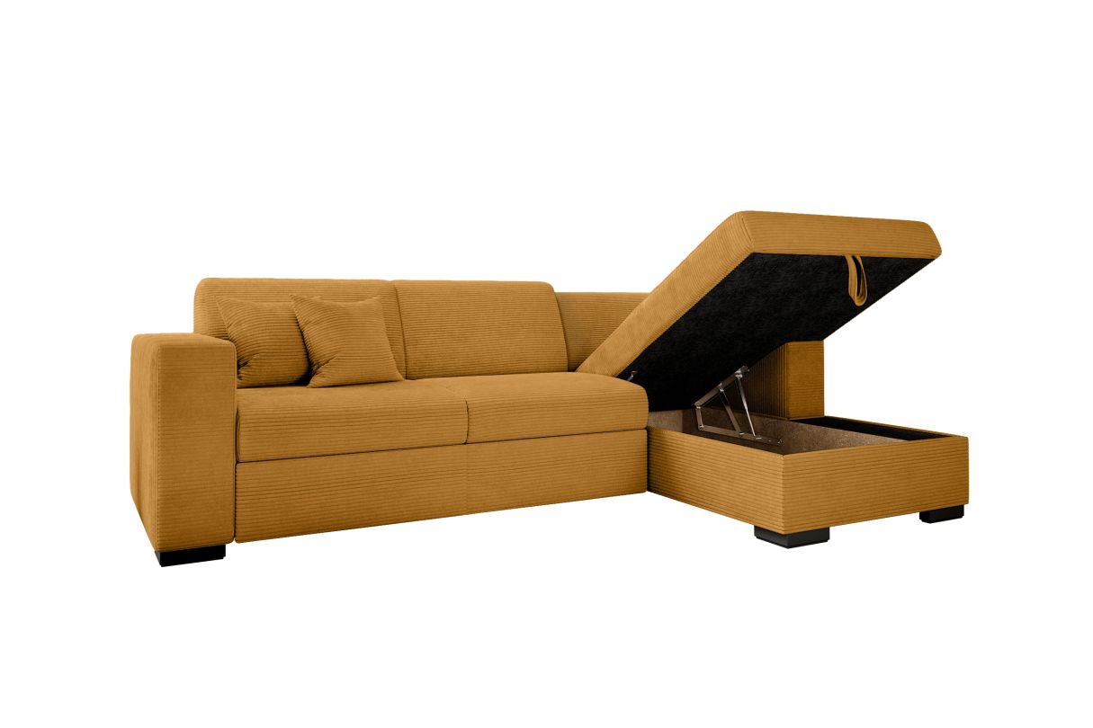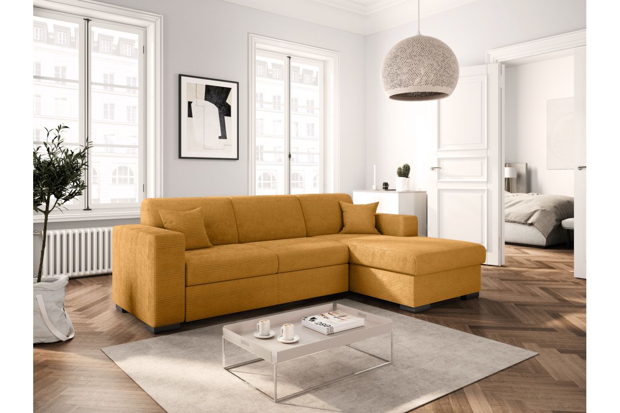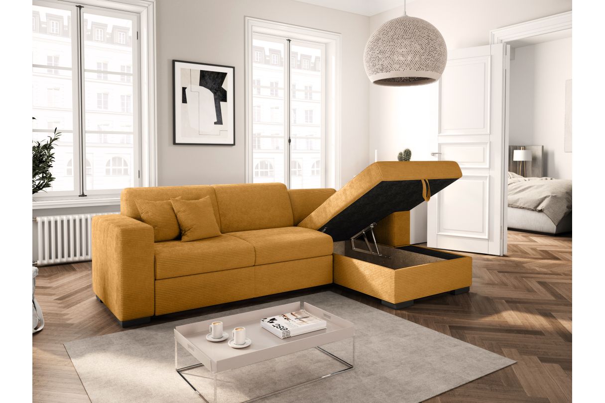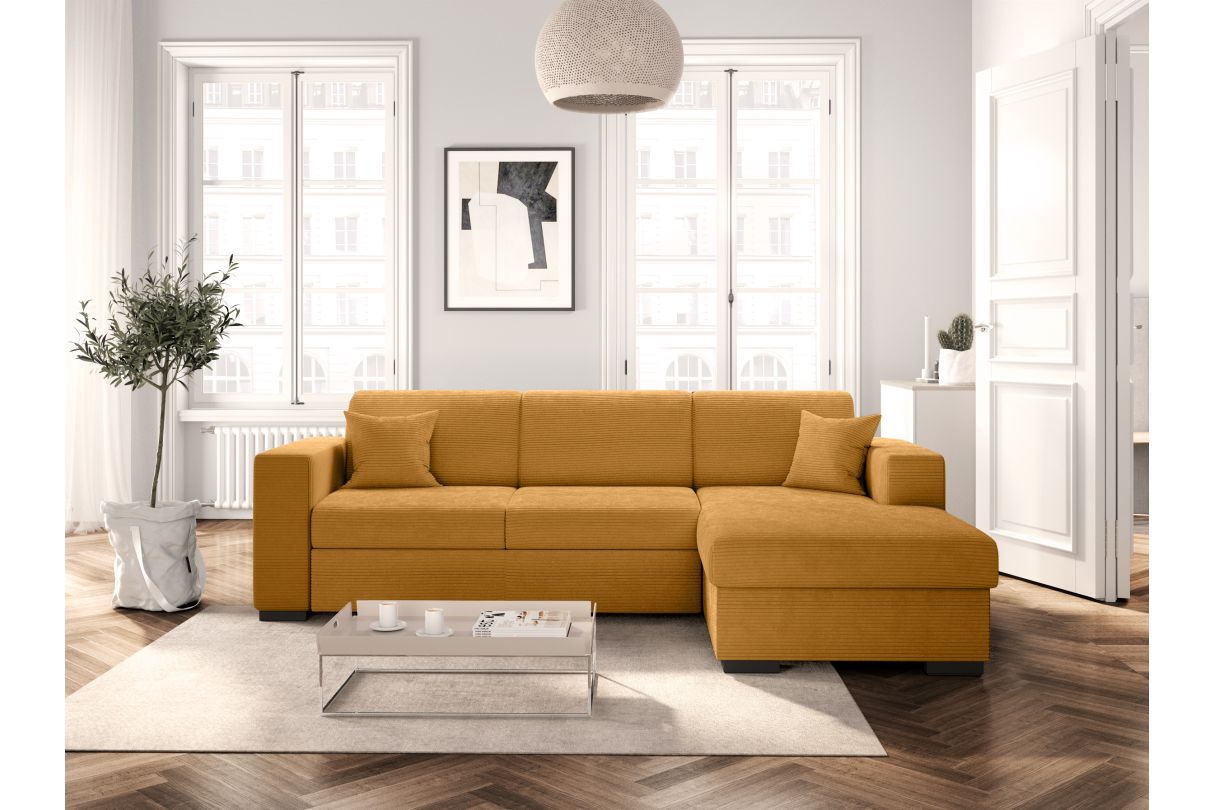 Canapé d'angle FUJI XL convertible avec coffre en velours côtelé - Angle droit - Jaune