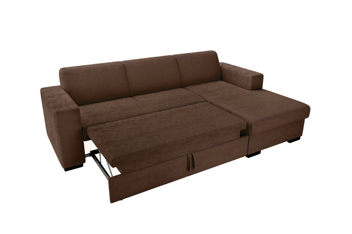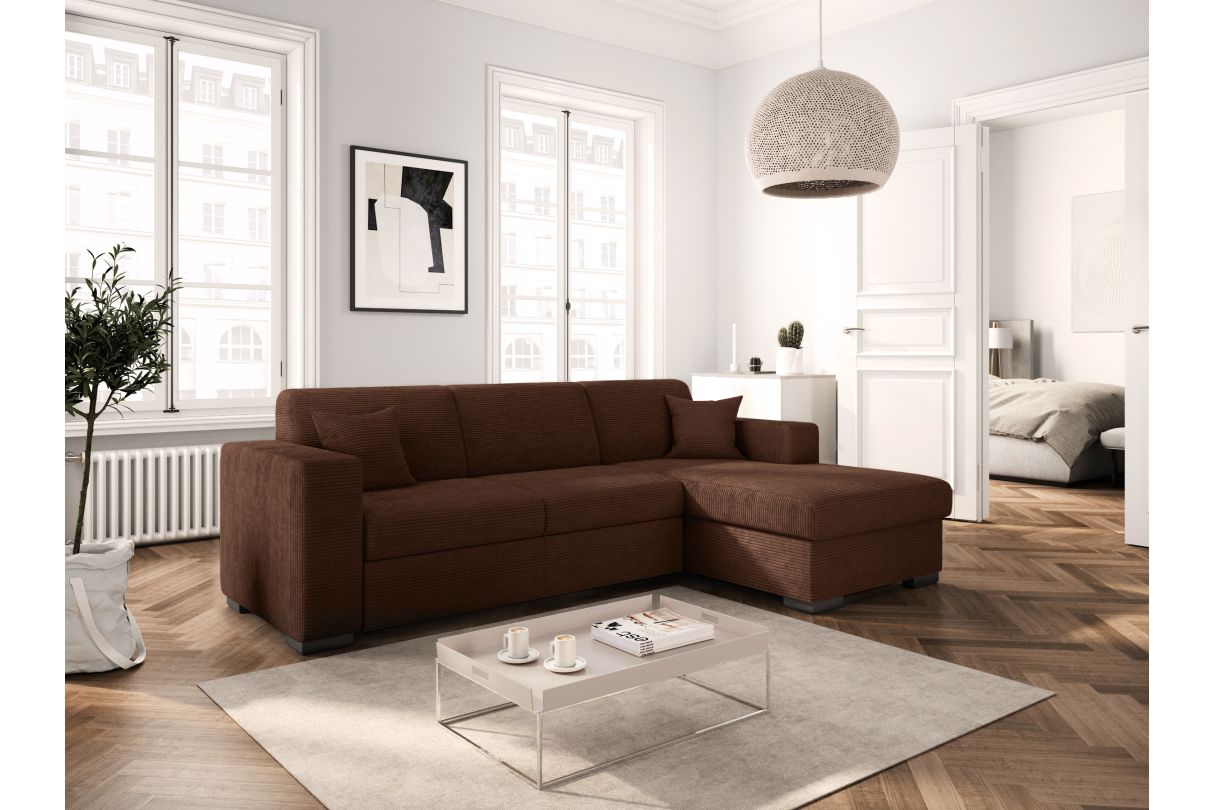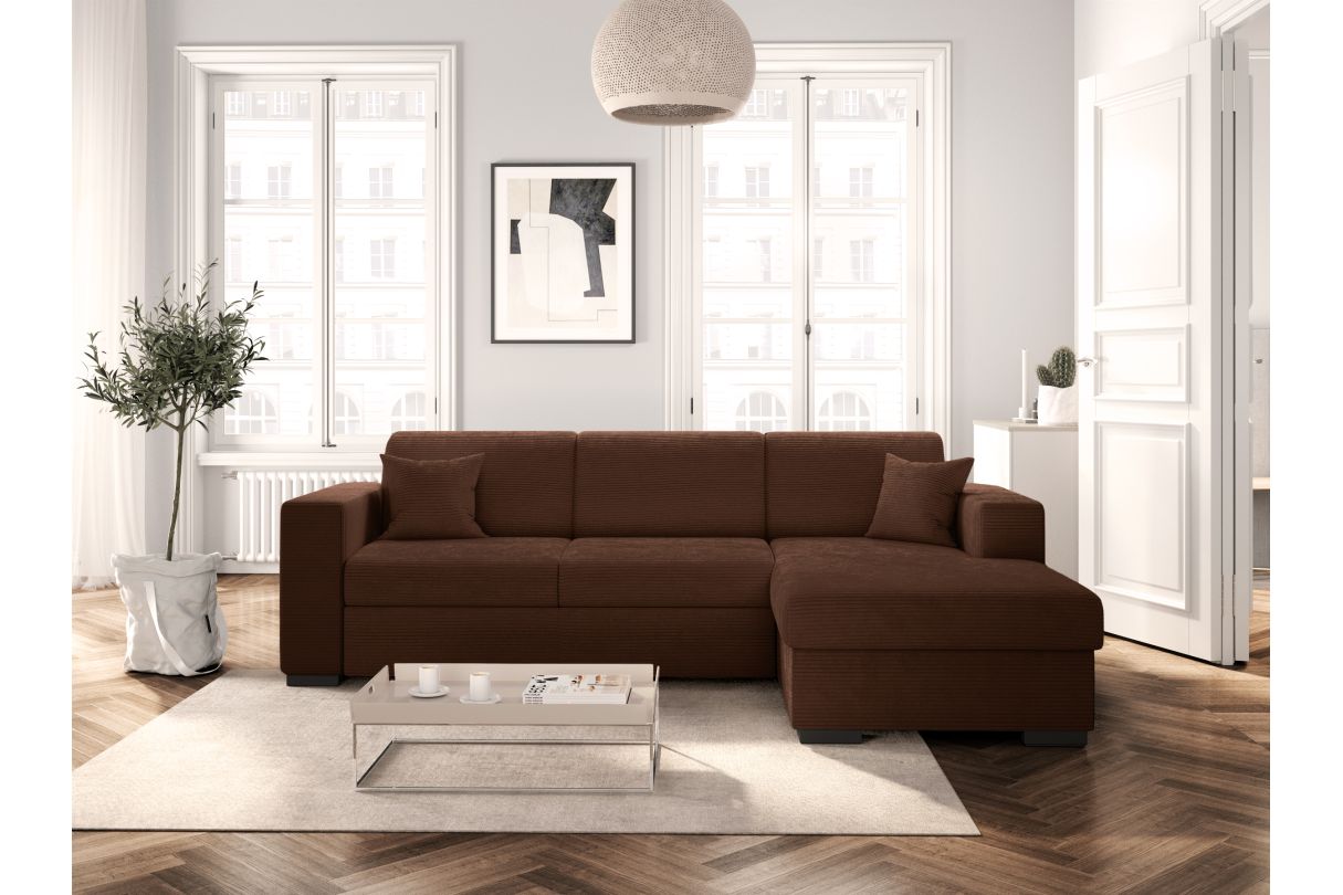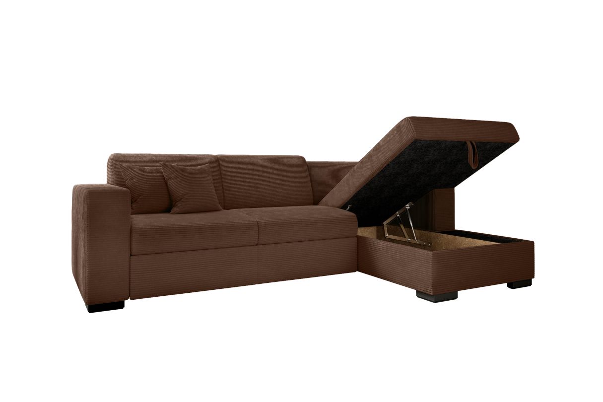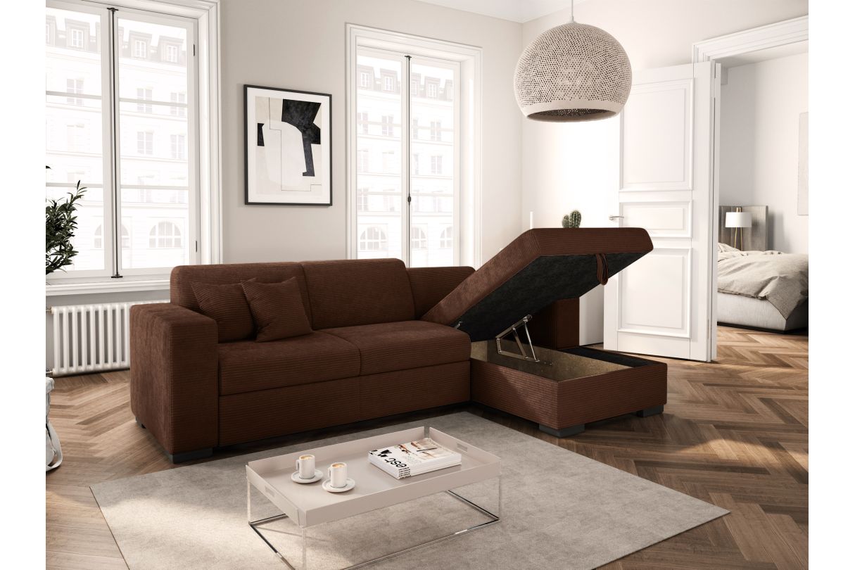 Canapé d'angle FUJI XL convertible avec coffre en velours côtelé - Angle droit - Marron