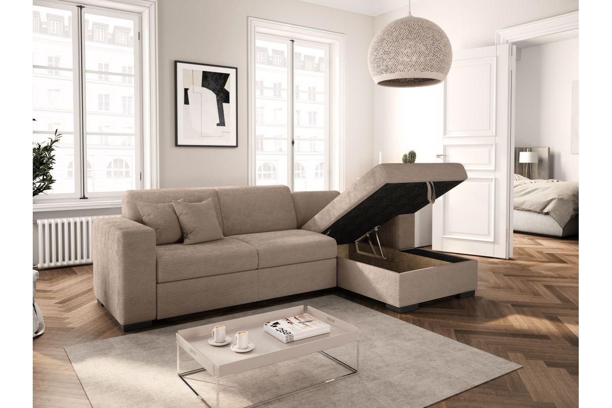 | Libellé | Canapé d'angle FUJI XL convertible avec coffre en velours côtelé - Angle droit - Taupe |
