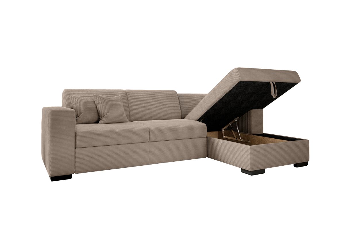 Canapé d'angle FUJI XL convertible avec coffre en velours côtelé - Angle droit - Taupe