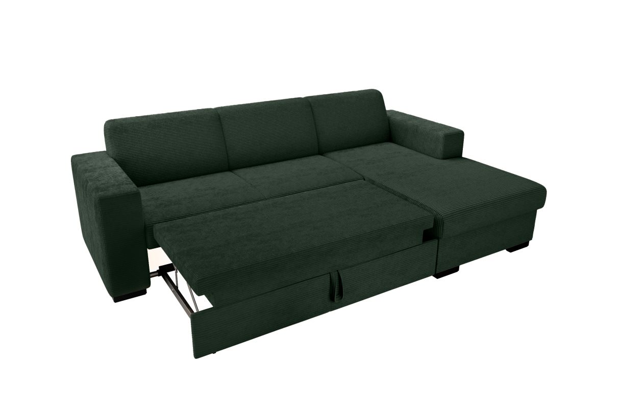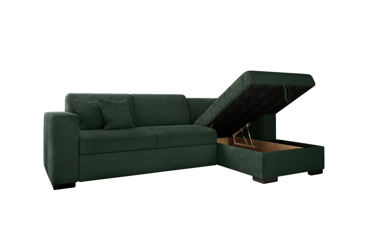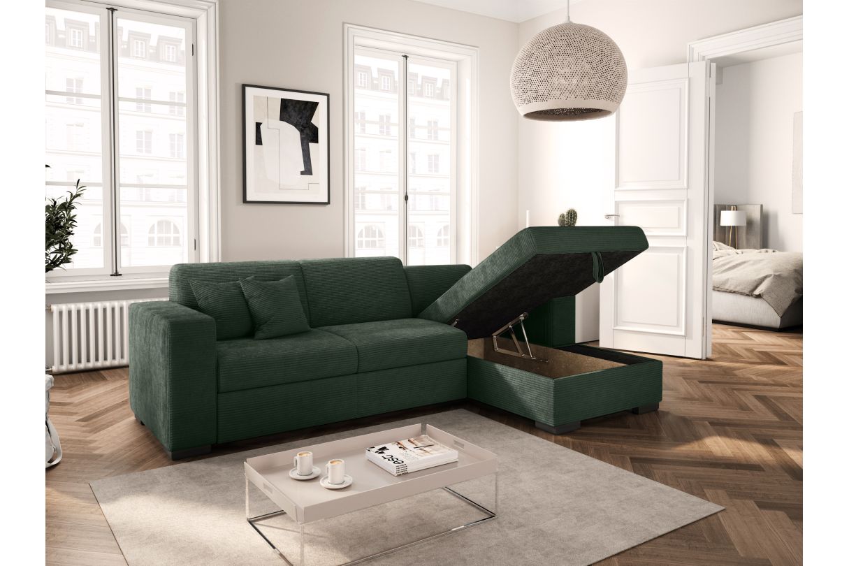 Canapé d'angle FUJI XL convertible avec coffre en velours côtelé - Angle droit - Vert foncé