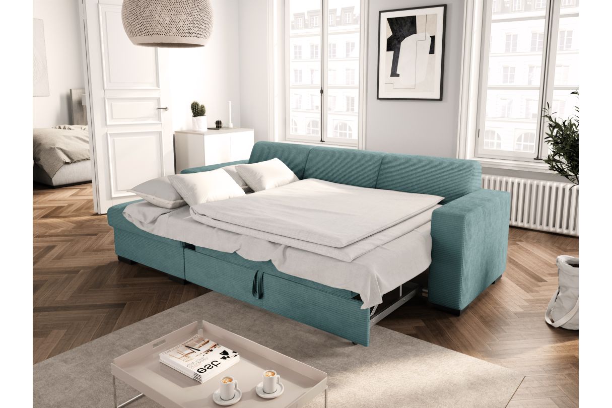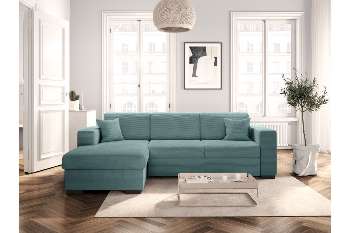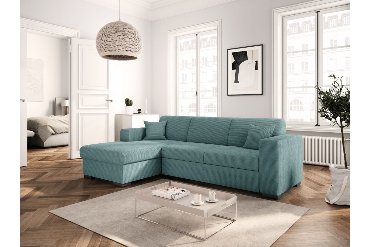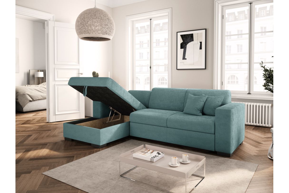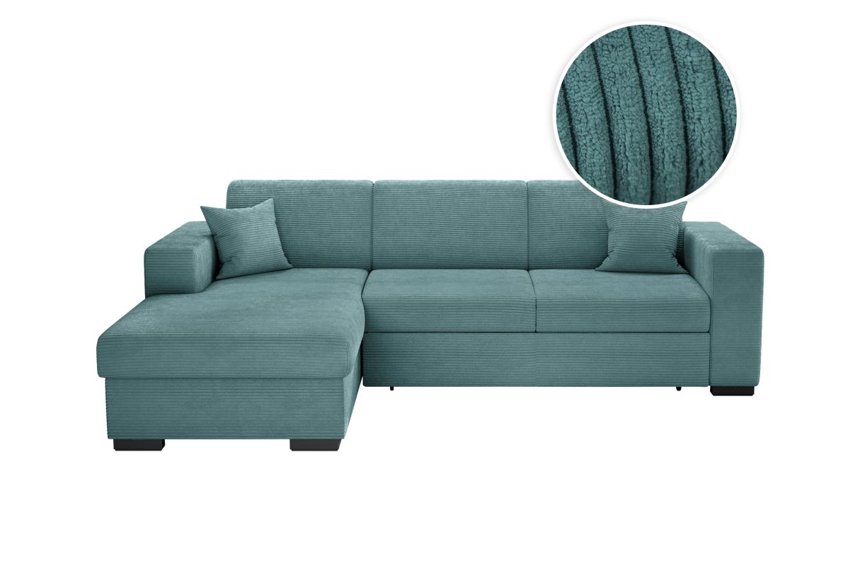 | Libellé | Canapé d'angle FUJI XL convertible avec coffre en velours côtelé - Angle gauche - Bleu clair |