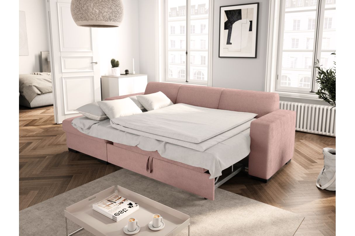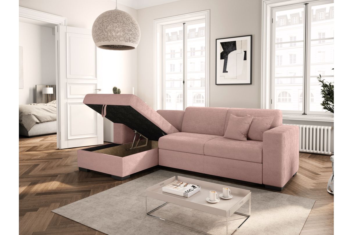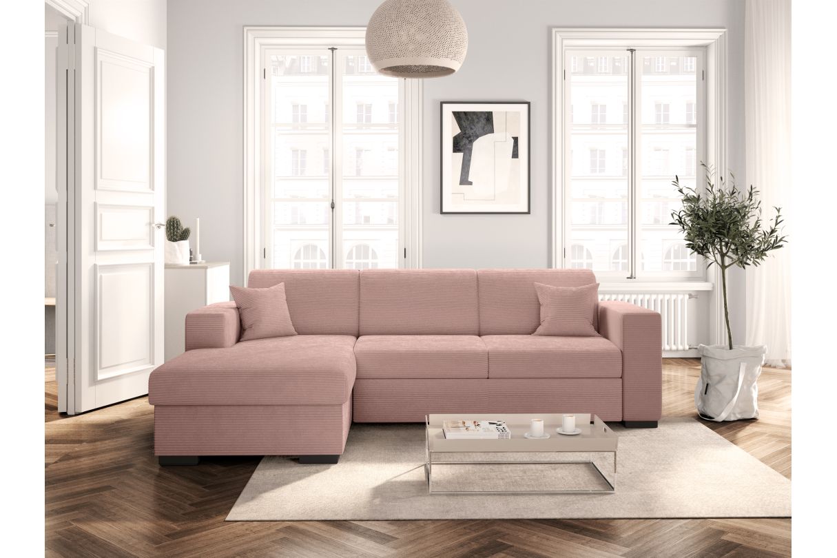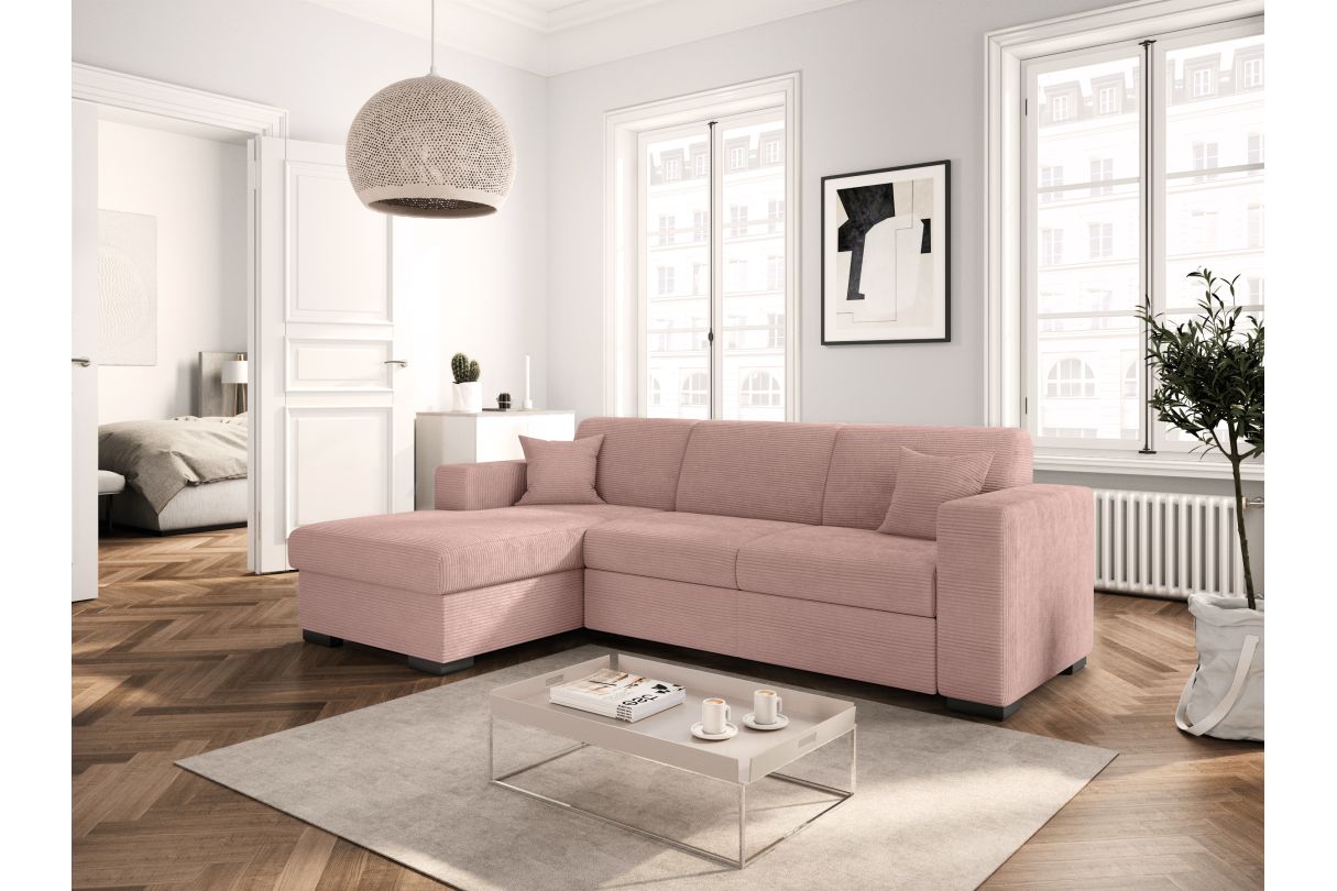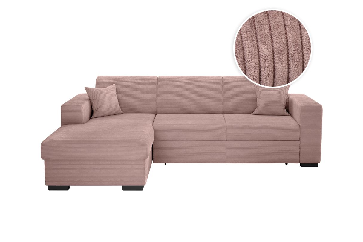 | Libellé | Canapé d'angle FUJI XL convertible avec coffre en velours côtelé - Angle gauche - Vieux rose |