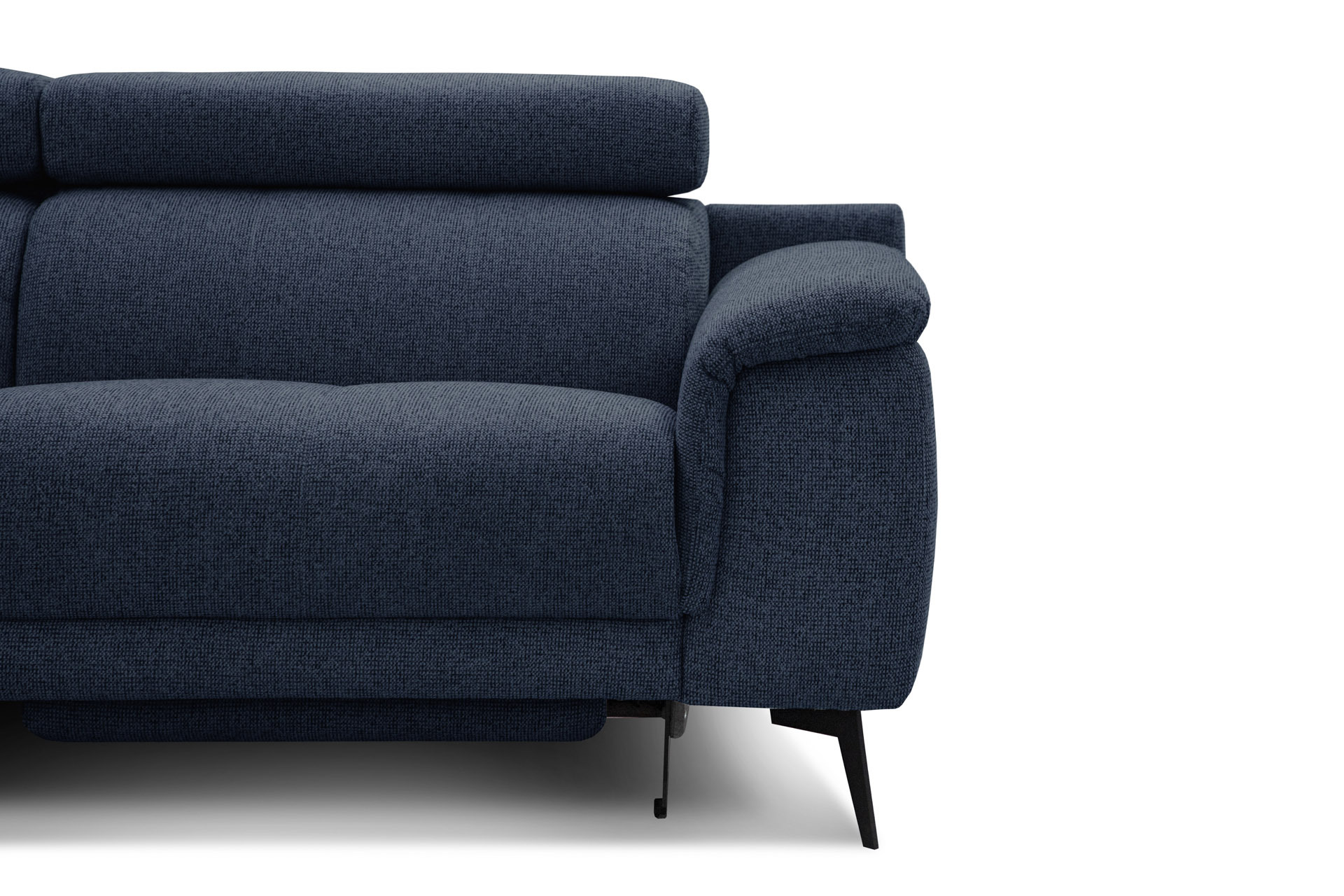 Canapé d'angle gauche, 5 places avec un relax électrique, Tissu Bleu foncé - Fiero