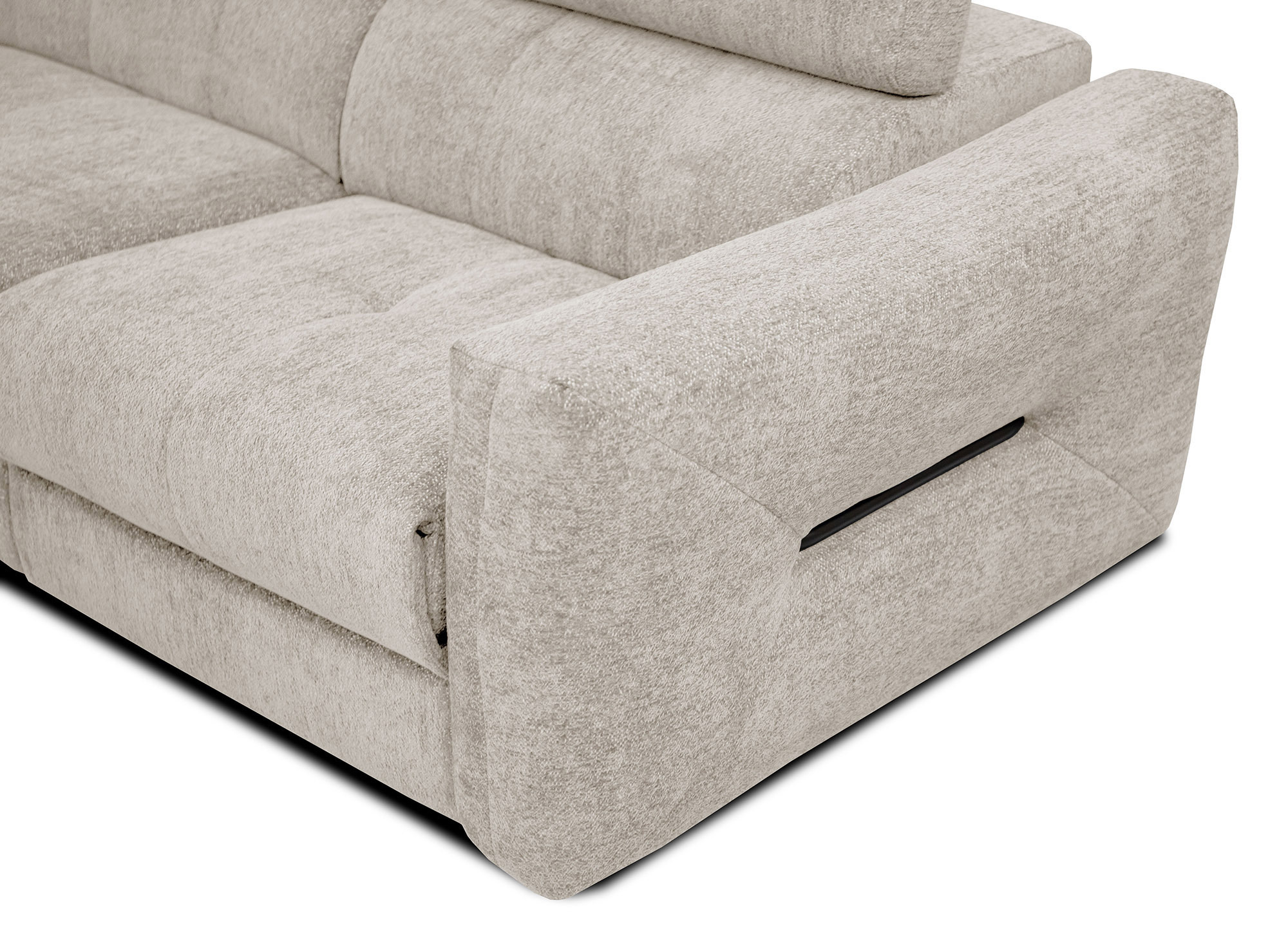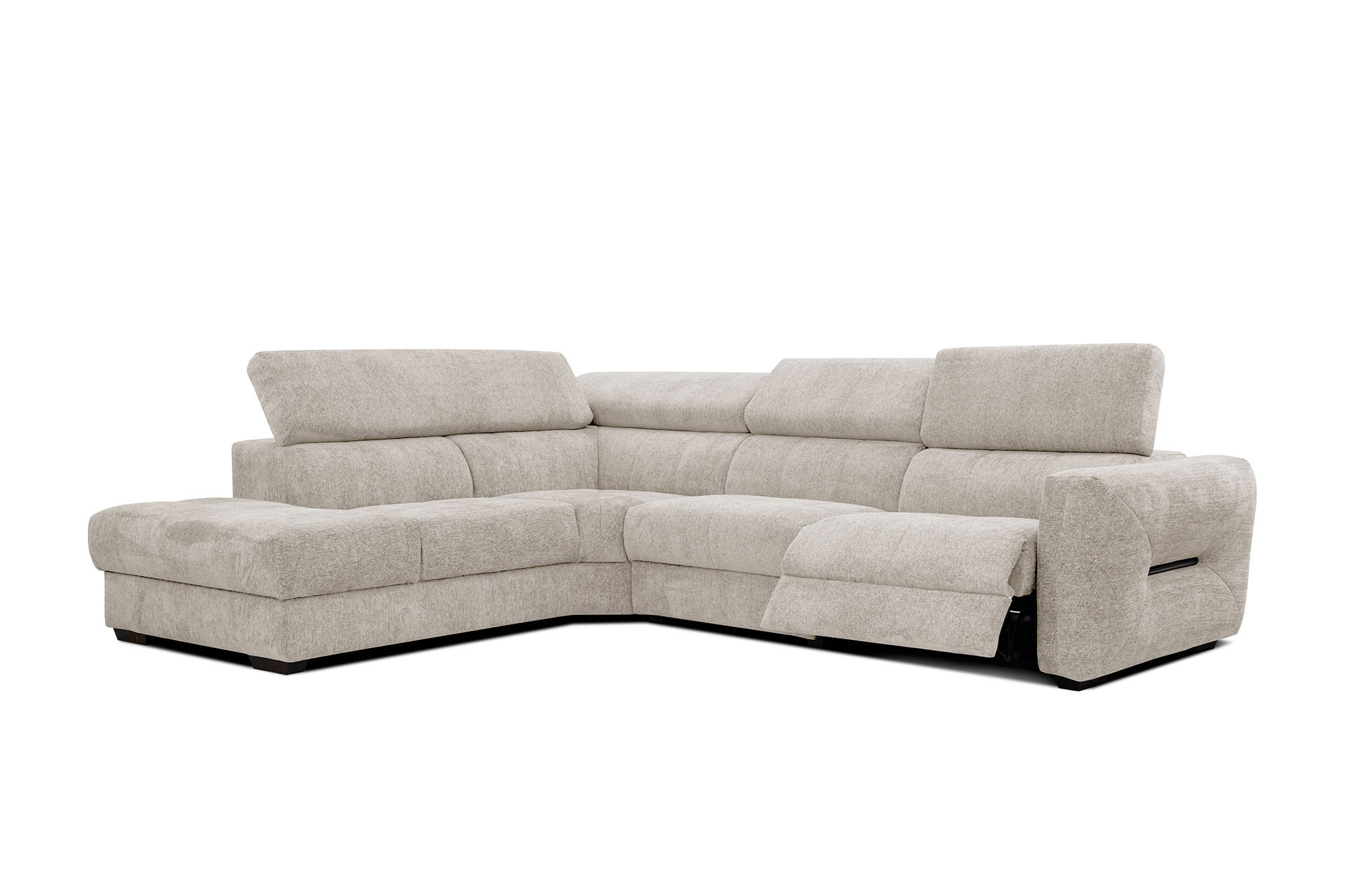 Canapé d'angle gauche Calvera 5 places avec un relax électrique tissu beige