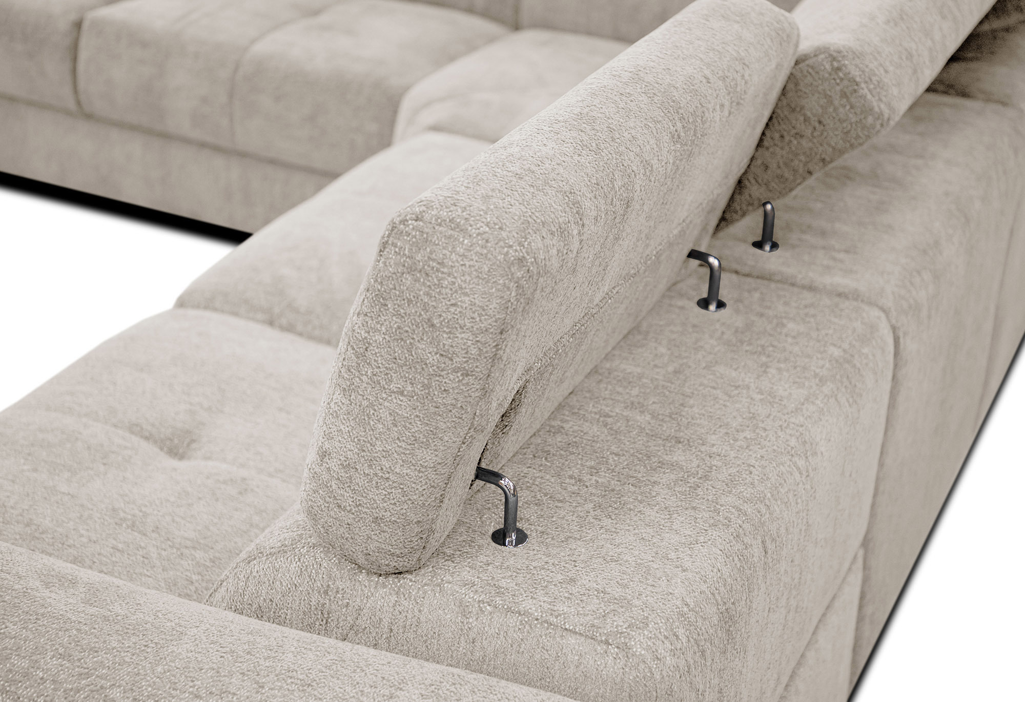 Le canapé d'angle Calvera est un grand canapé d'angle 5 places qui offre confort et praticité. Le matelassage décoratif caractéristique de l'accoudoir souligne la massivité du meuble, mais également son moelleux et sa douceur. A noter également les appuis-tête mobiles qui peuvent être réglés à n'importe quel angle pour ajuster parfaitement la position d'assise à vos besoins. Calvera n'est pas seulement un design moderne, c'est aussi une combinaison de fonctionnalité et de confort. Le canapé proposé a une fonction de relaxation réglable électriquement. Le module de commande de l'appareil est situé dans l'accoudoir pour un accès facile. La durabilité du meuble est garantie par les matériaux utilisés, comme les ressorts dans l'assise ou le tissu de haute qualité, très agréable au toucher. La commodité et le confort d'utilisation sont assurés par une mousse de polyuréthane souple à haute densité. Le travail manuel de nos employés est un gage de la qualité et du soin apportés à chaque produit. Le canapé d'angle Calvera se compose de trois éléments qui peuvent être facilement assemblés.