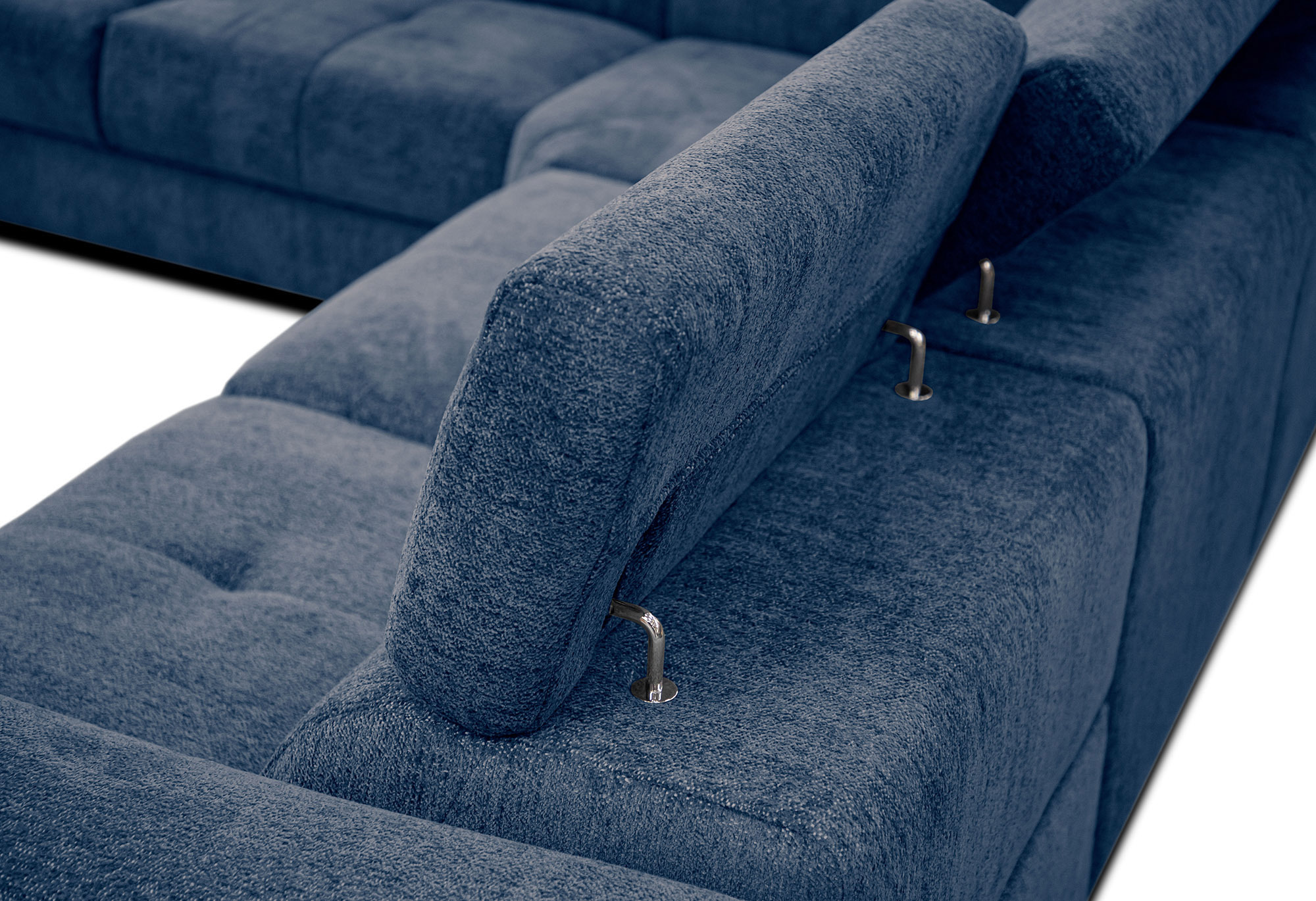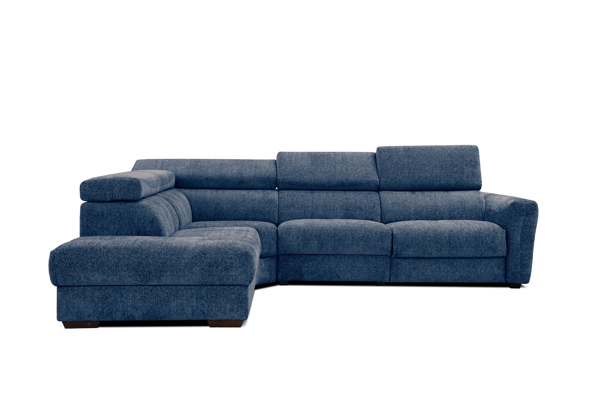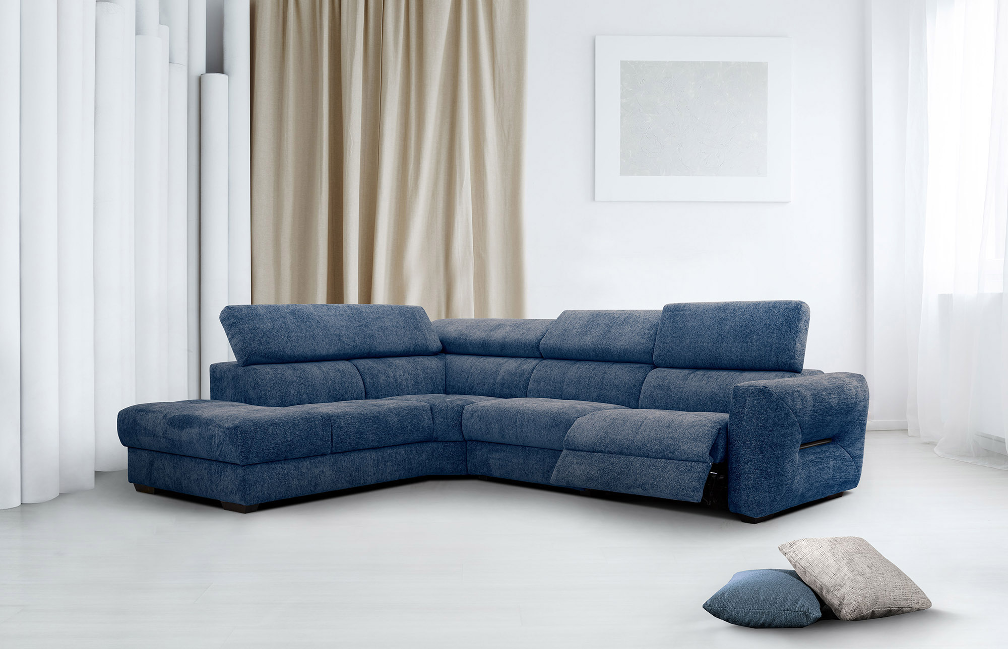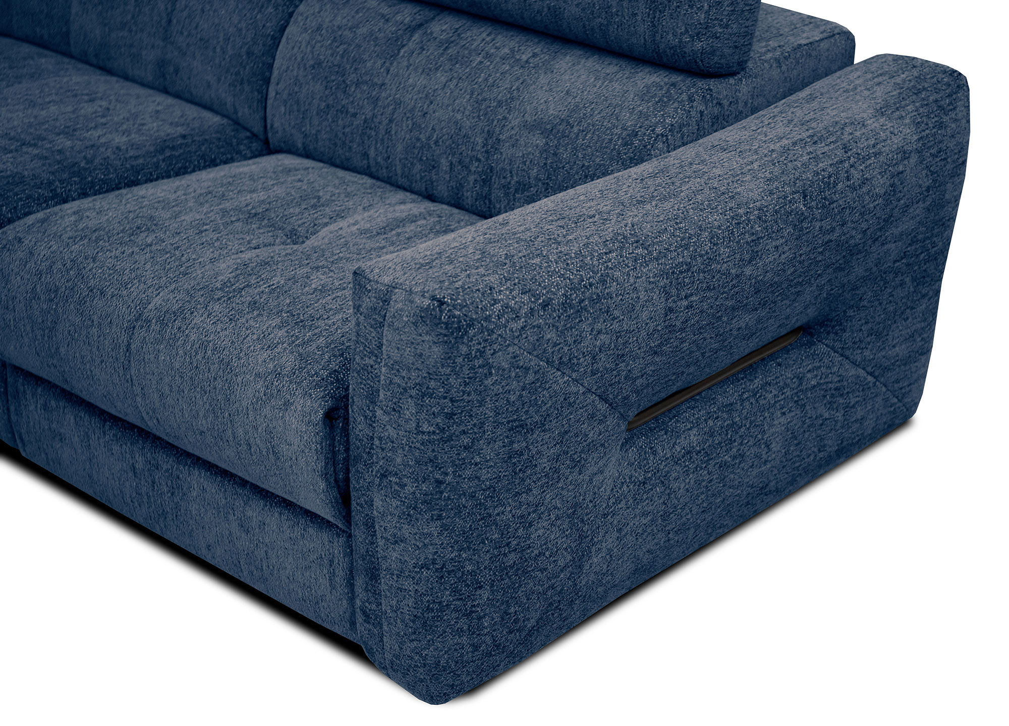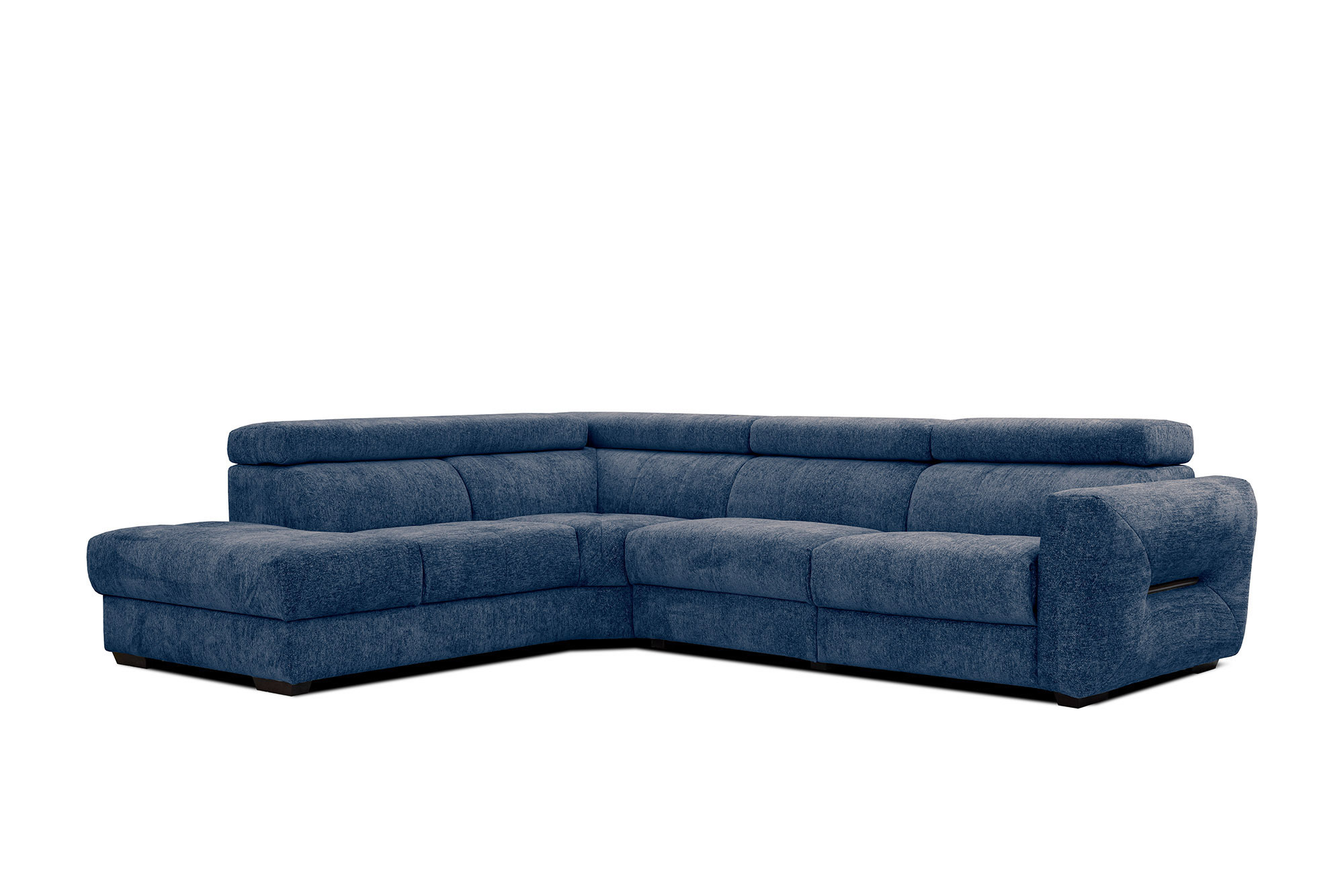 Canapé d'angle gauche Calvera 5 places avec un relax électrique tissu bleu foncé