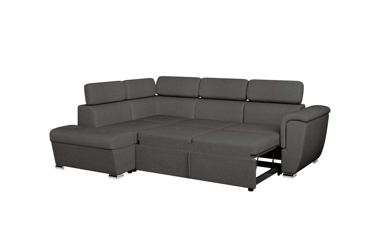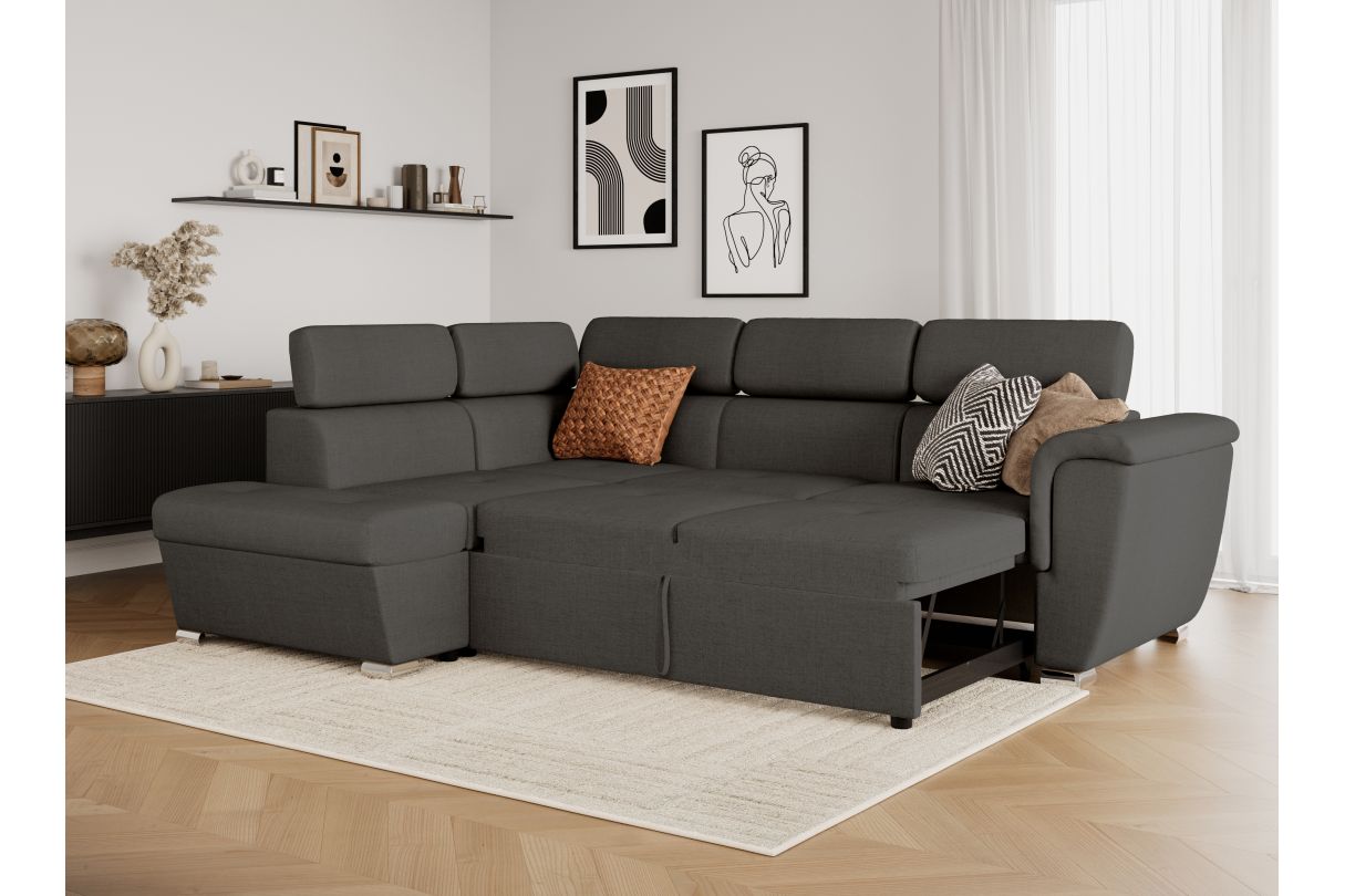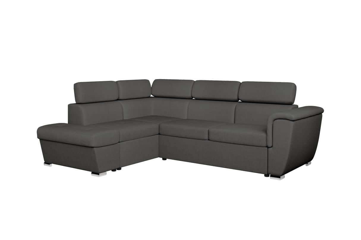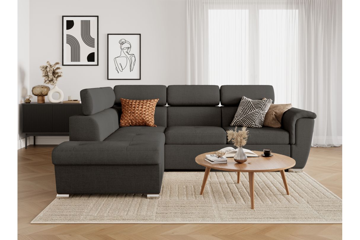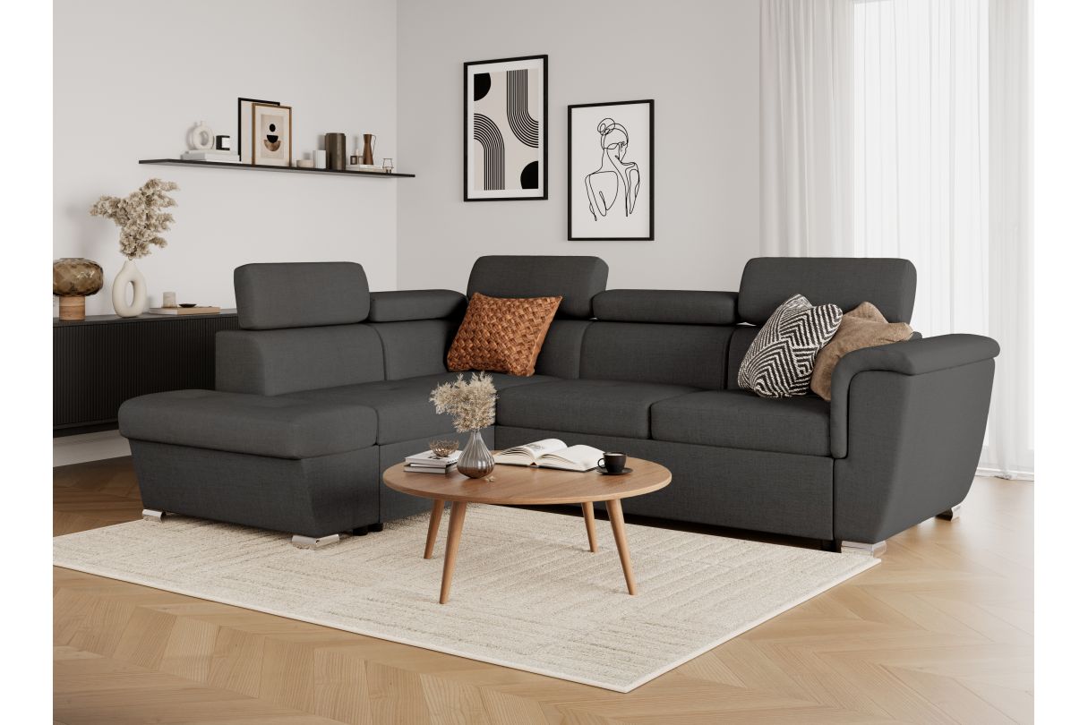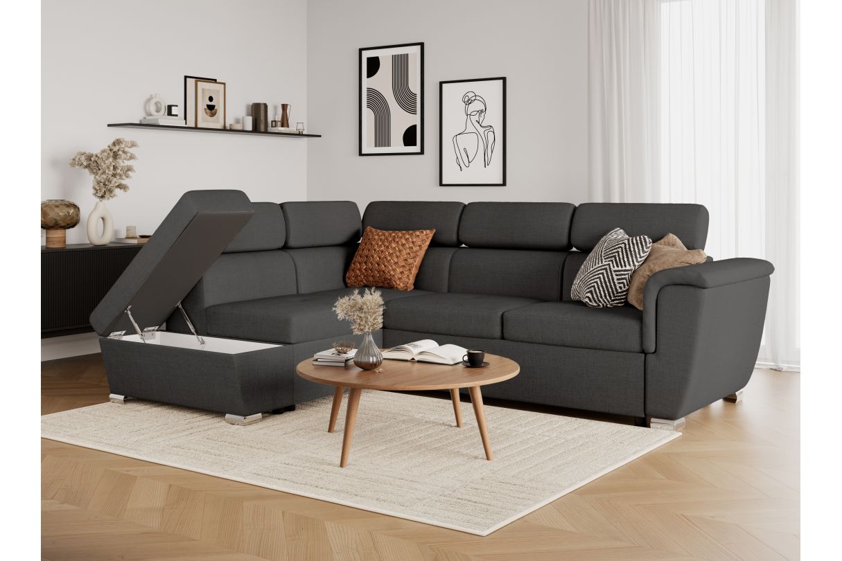Canapé d'angle gauche convertible 4 places PAOLA avec coffre en tissu - Gris foncé