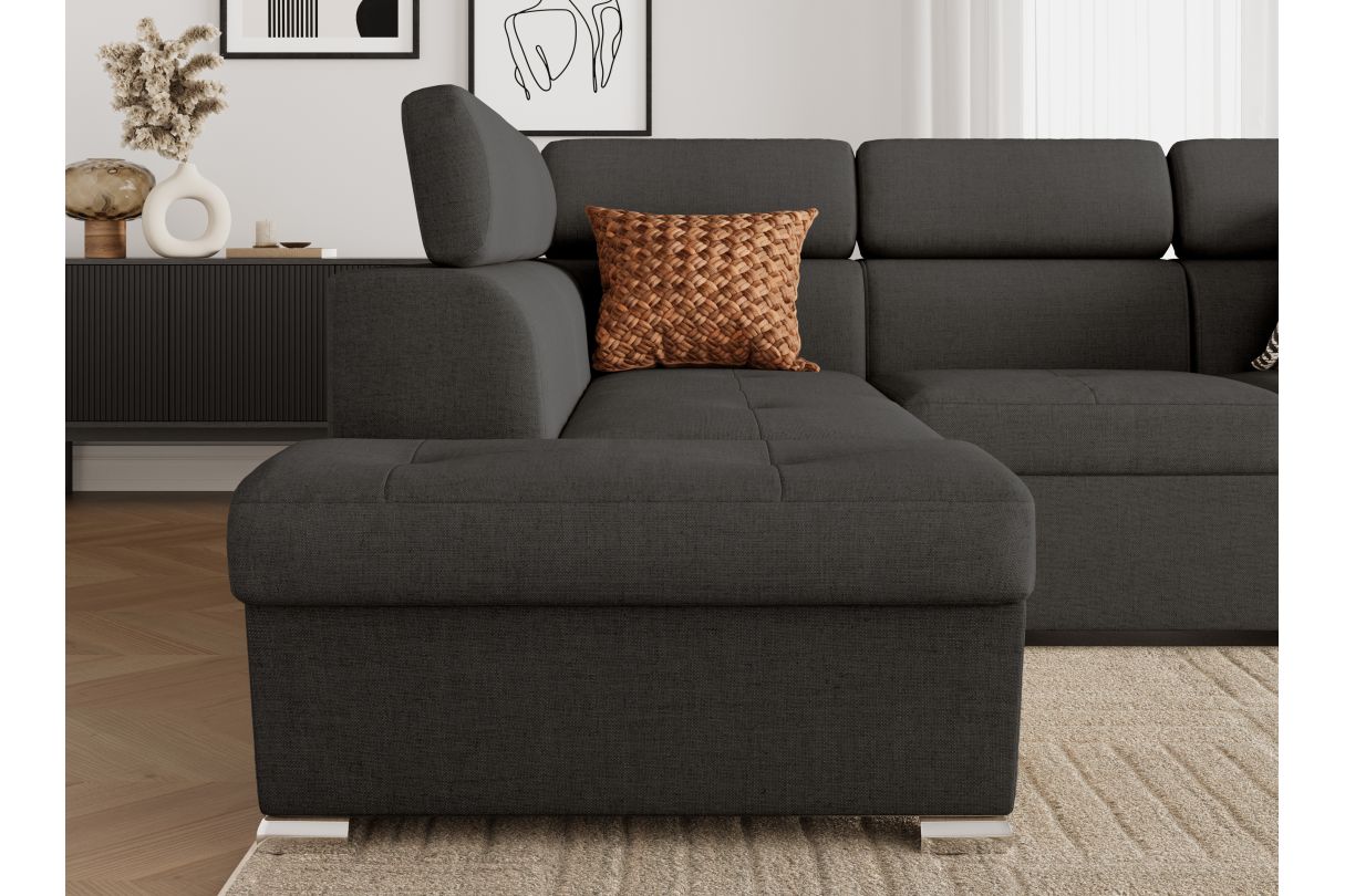Libellé Canapé d'angle gauche convertible 4 places PAOLA avec coffre en tissu - Gris foncé