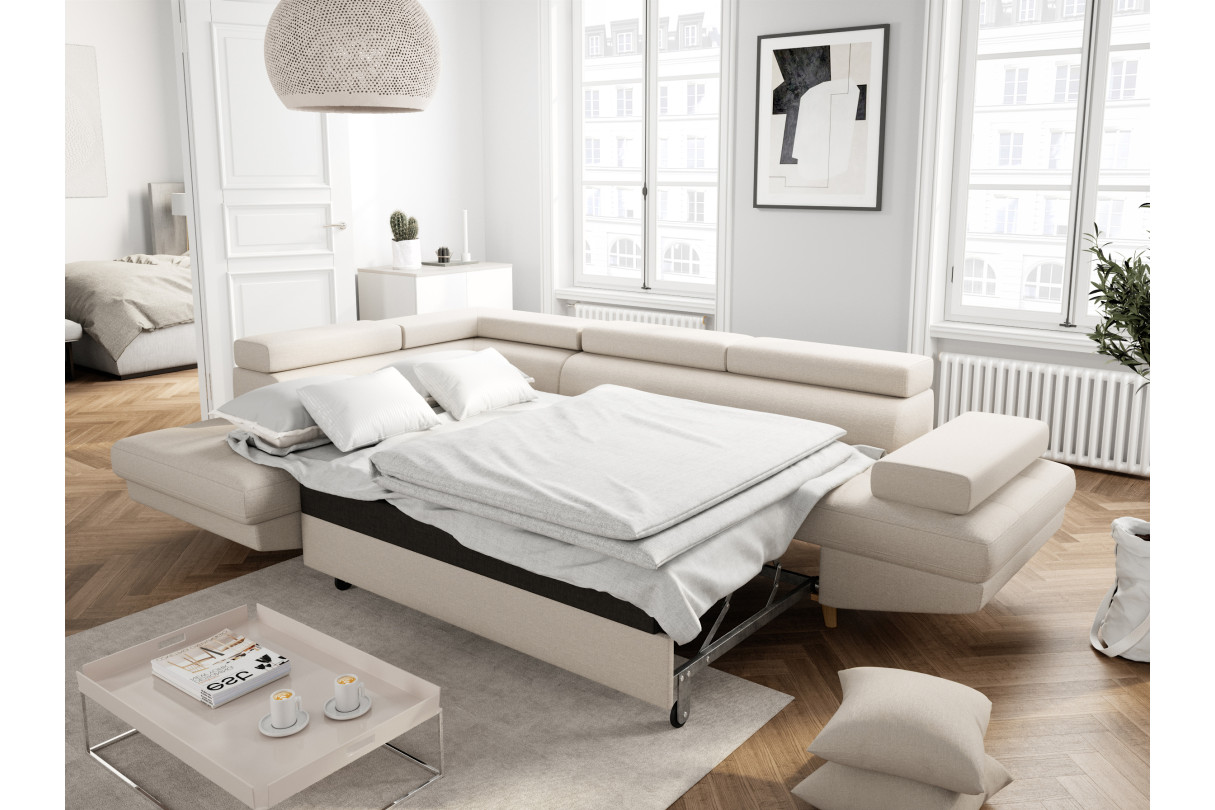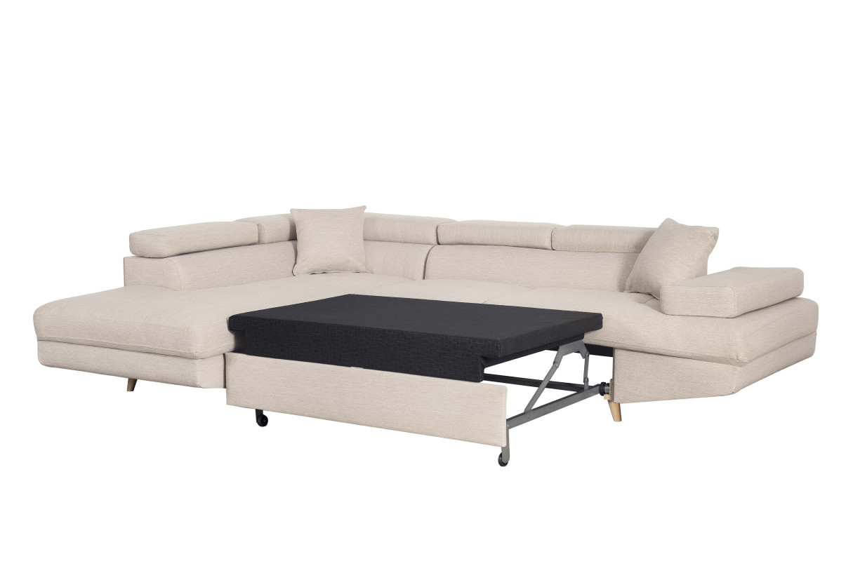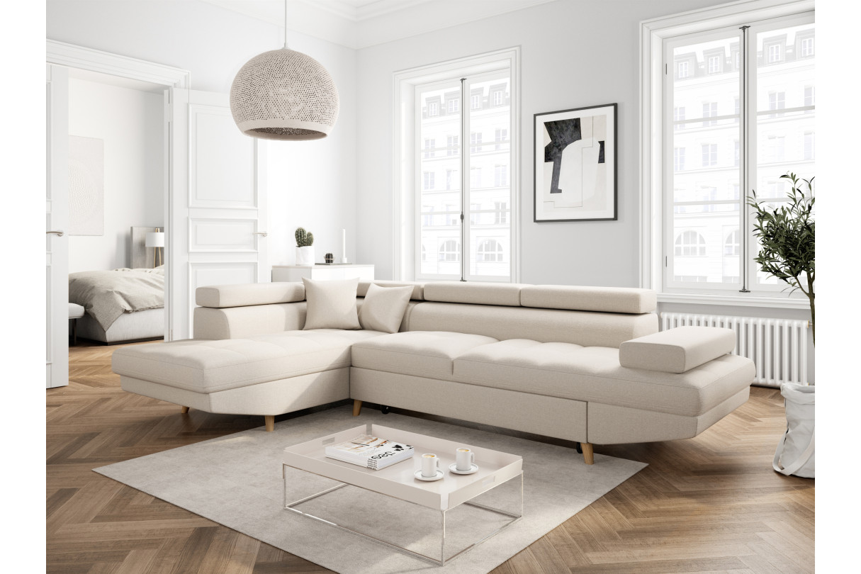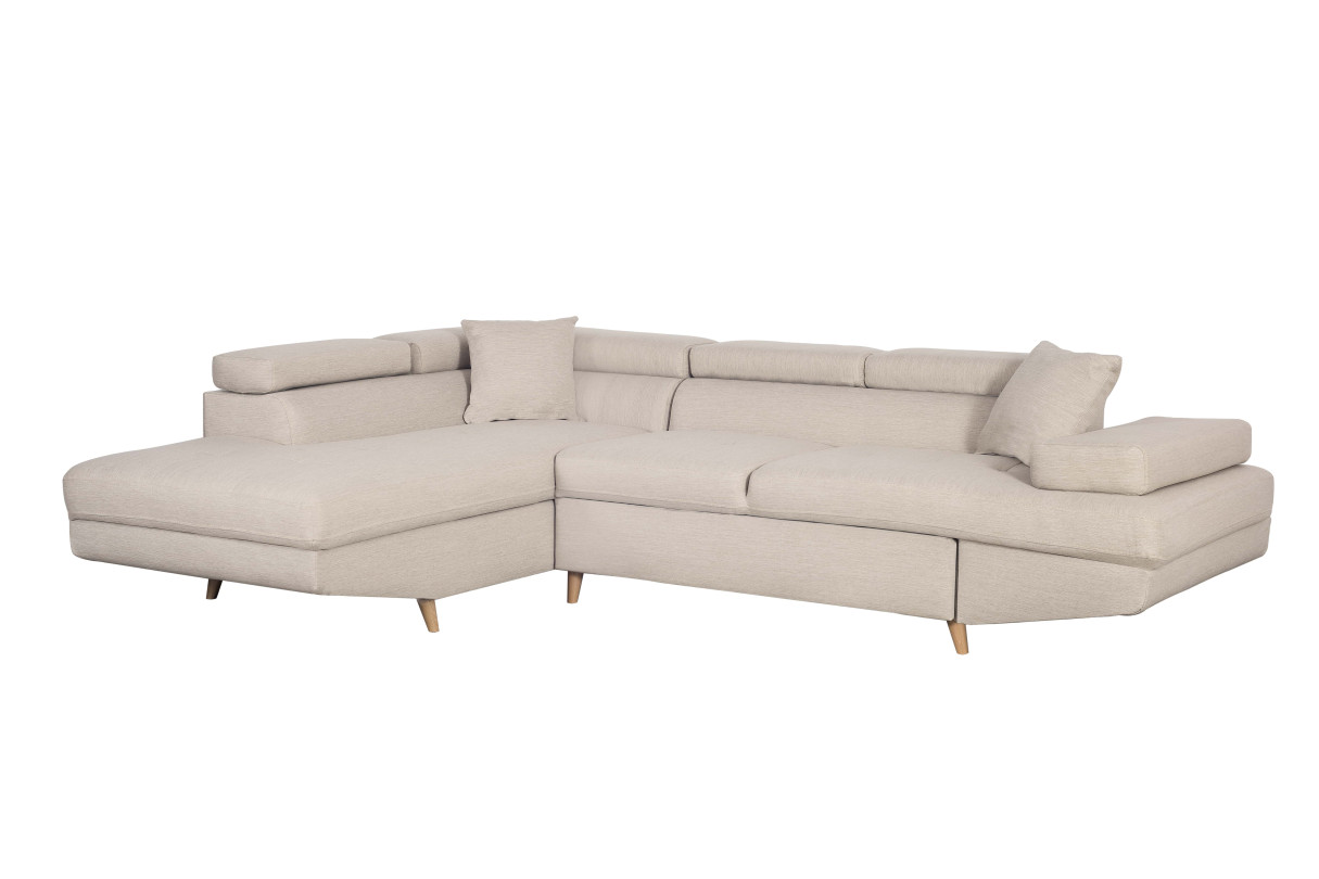 | Libellé | Canapé d'angle gauche convertible RIO Scandinave avec coffre en tissu - Beige, Pieds bois |