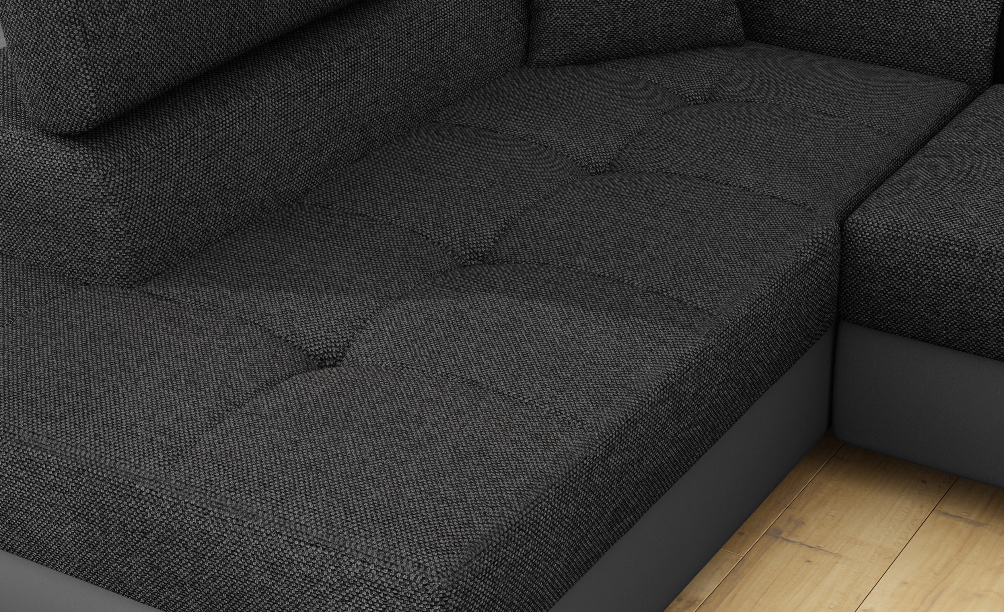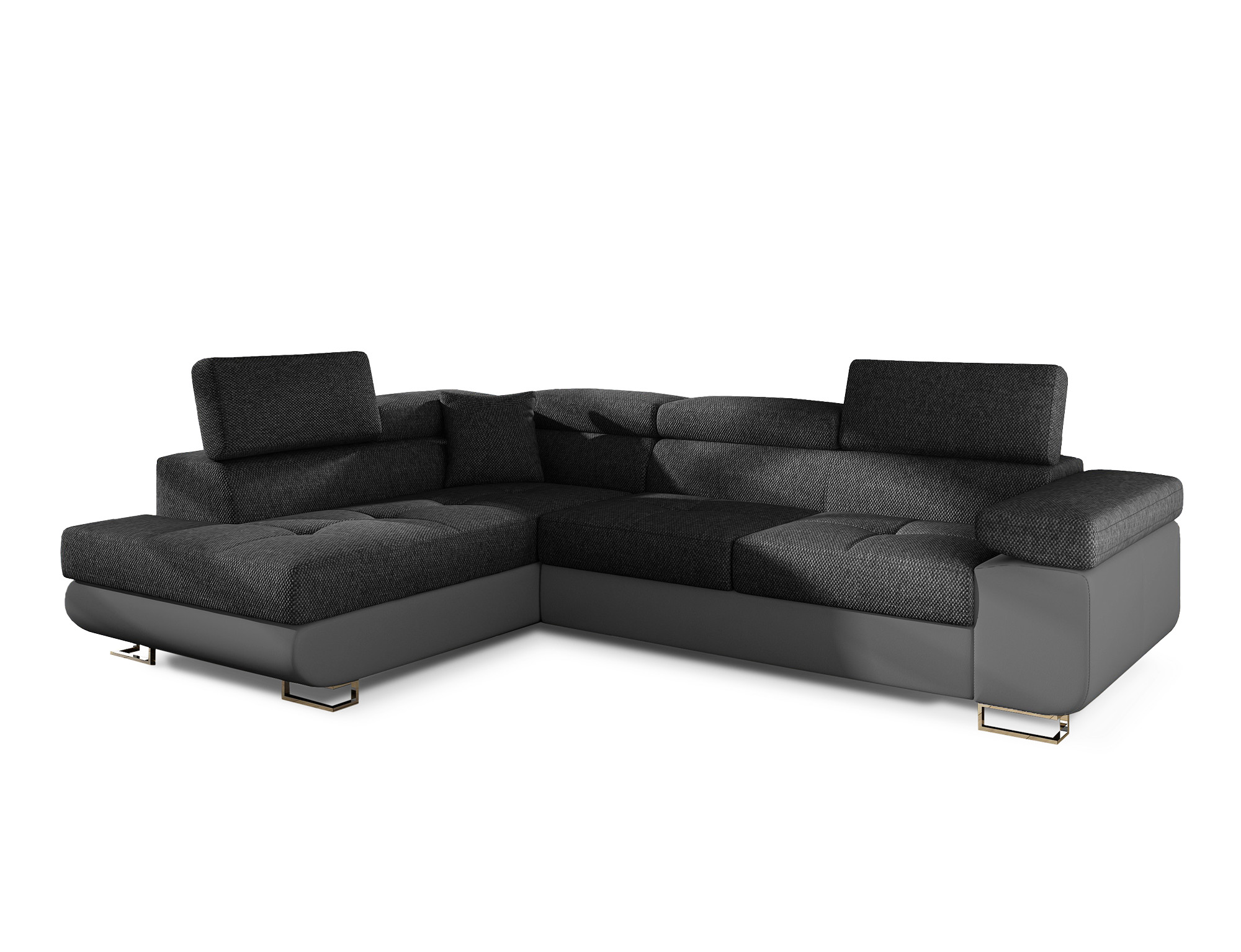 Canapé d'angle gauche convertible tissu gris foncé chiné et simili gris Marka 275cm