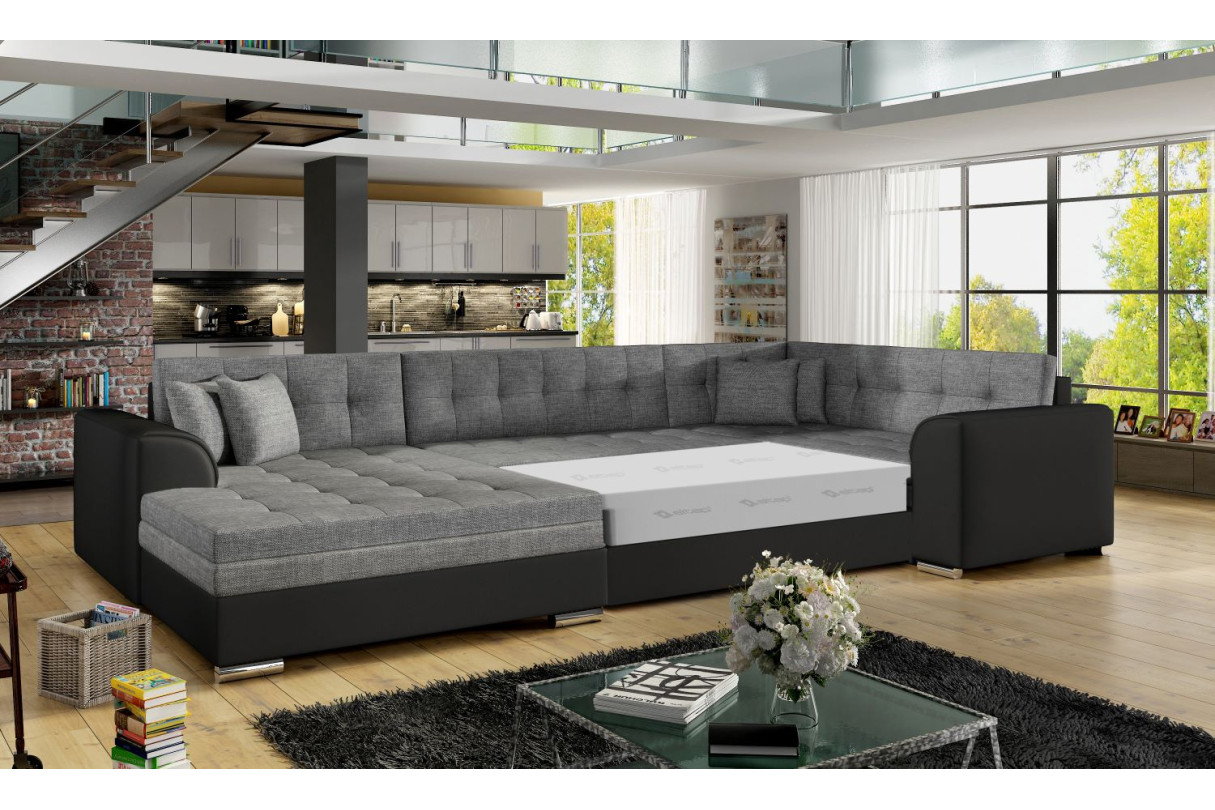 Grand format convivial : 338 x 189 x 78 cm ? sa forme en U offre une assise généreuse pour partager des moments à plusieurs.