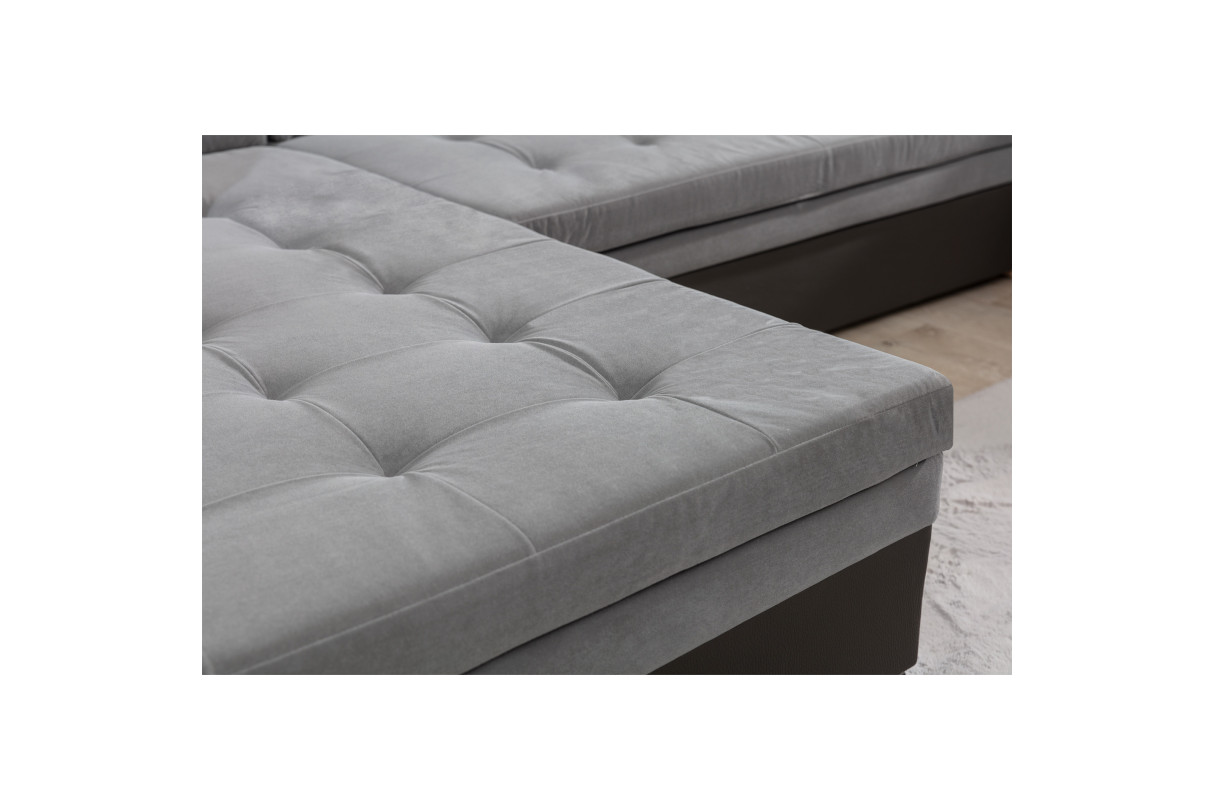 | Libellé | Canapé d'angle gauche panoramique 5 places DALIA U convertible en tissu - Gris clair/Gris foncé |