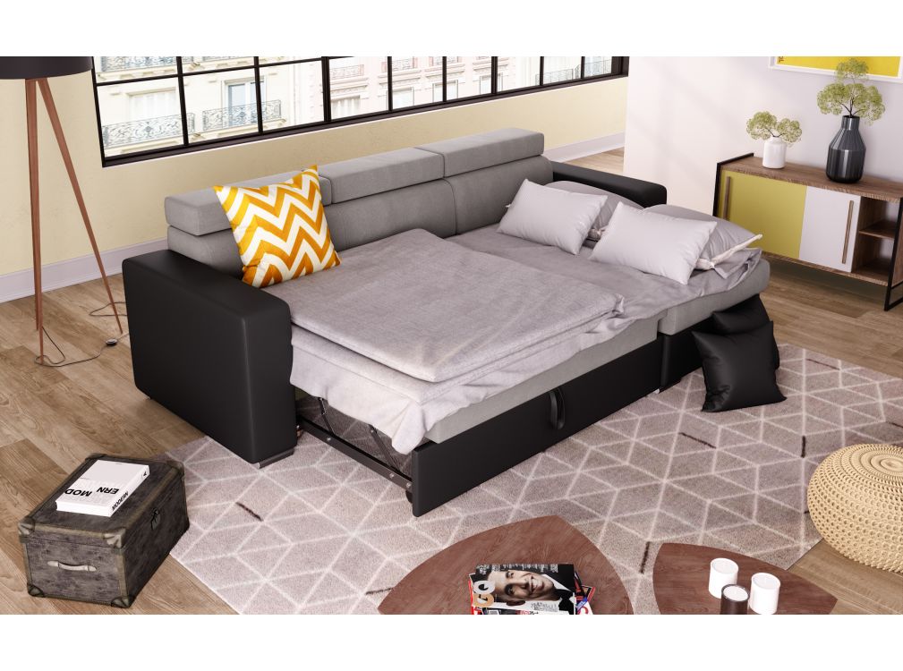 Canapé d'angle LESLIE Convertible et Réversible en Simili et Microfibre - Gris / Noir