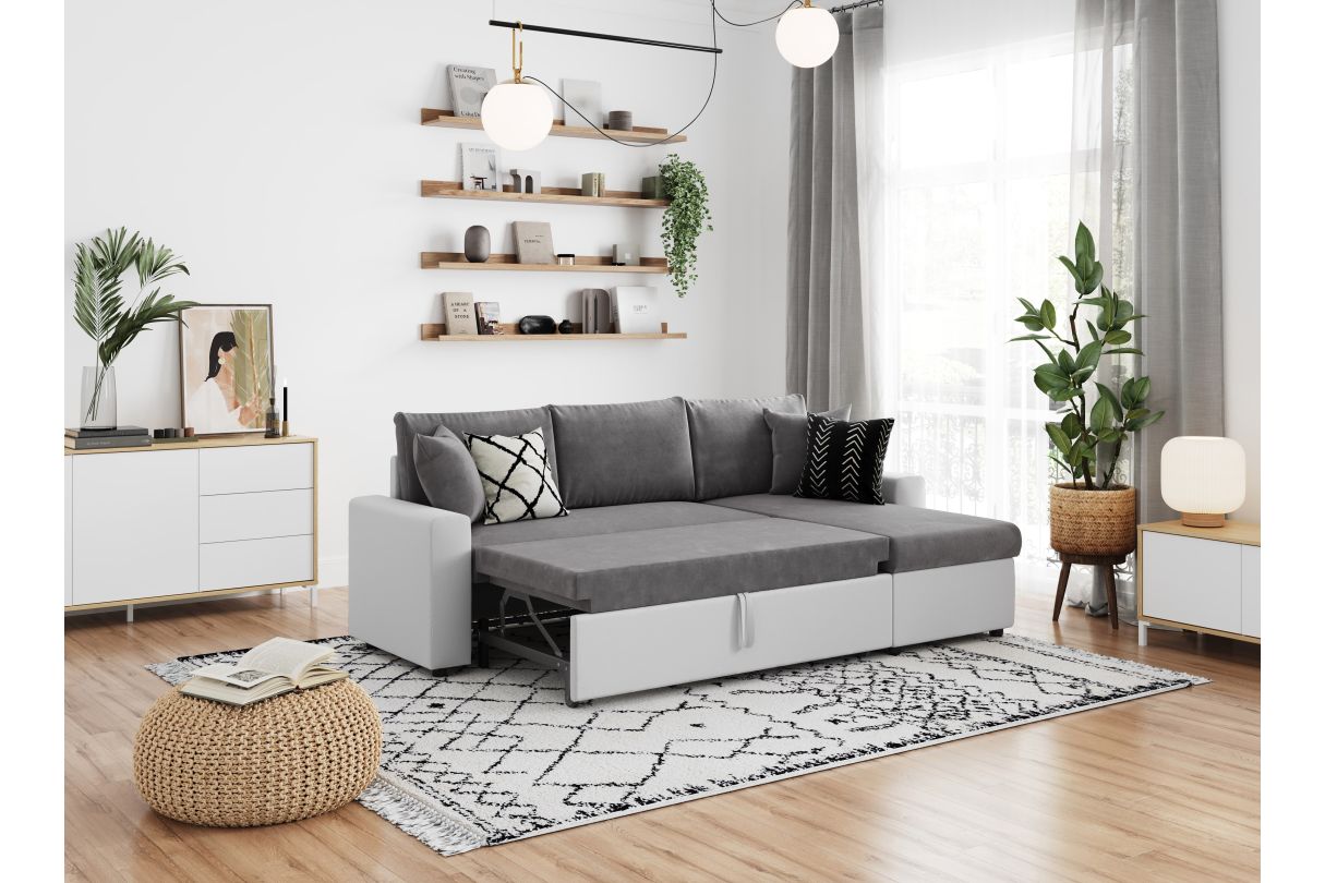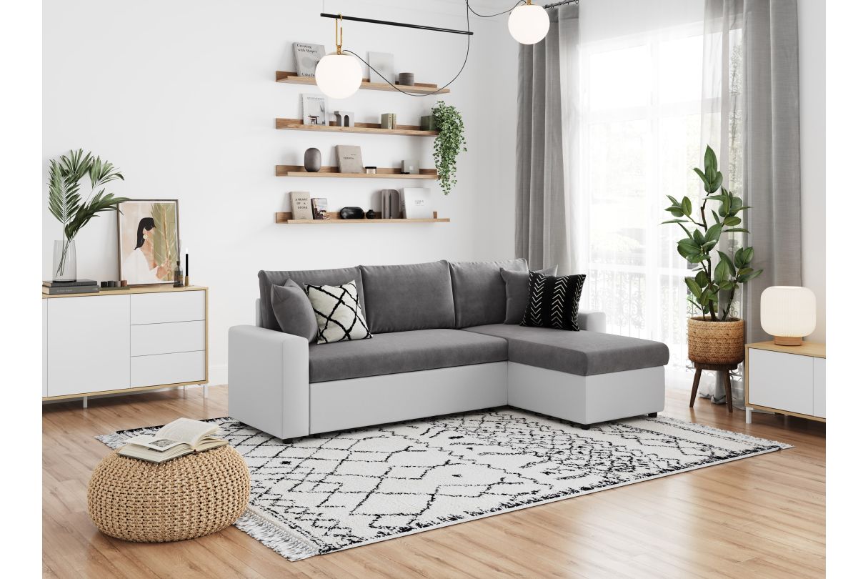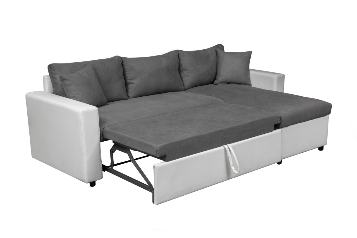 | Libellé | Canapé d'angle MARIA Réversible et convertible avec Coffre en simili et microfibre - Blanc et gris |