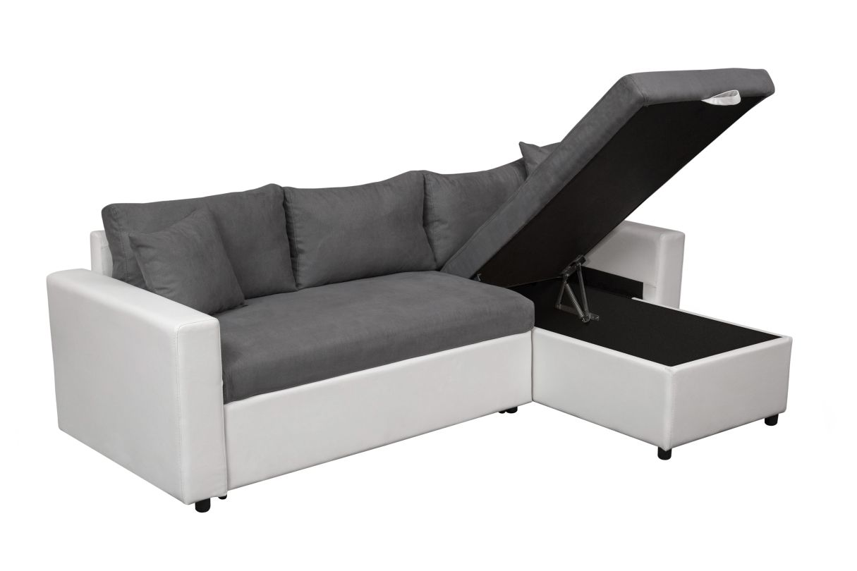 Canapé d'angle MARIA Réversible et convertible avec Coffre en simili et microfibre - Blanc et gris