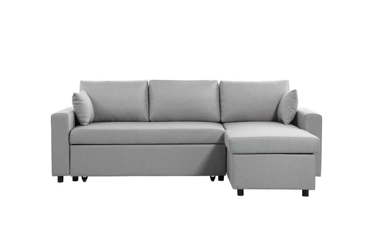 Canapé d'angle MARIA Réversible et convertible avec Coffre en tissu - Gris clair